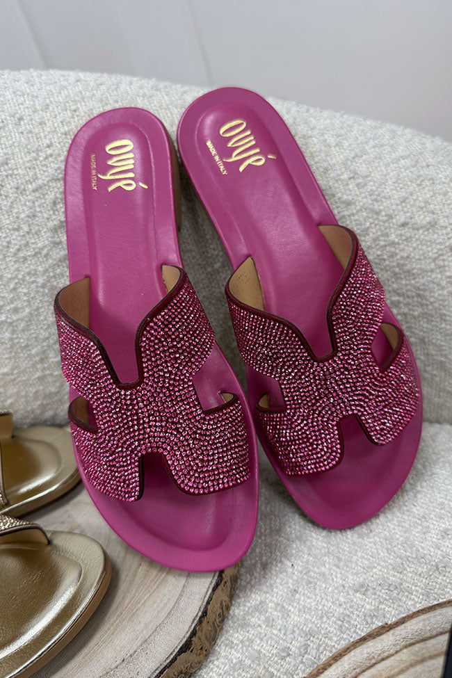 Ciabatta Oran fucsia con strass in pelle - Ovyè
