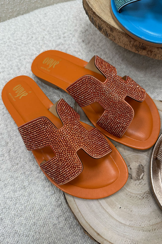 Ciabatta Oran arancio con strass in pelle - Ovyè