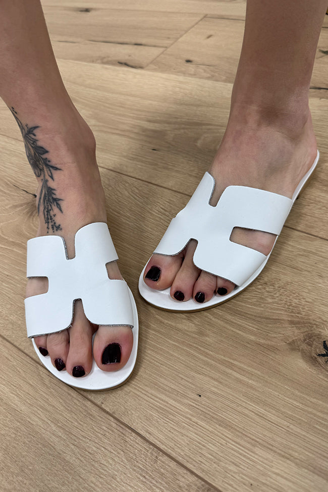 Ciabatta Oran bianca con strass in pelle - Ovyè