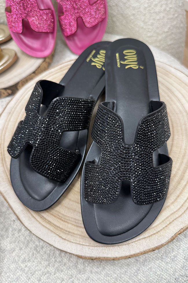 Ciabatta Oran nera con strass in pelle - Ovyè