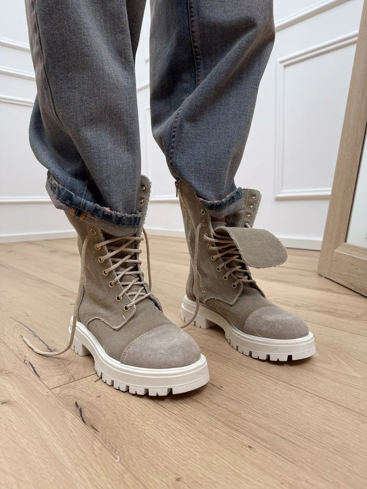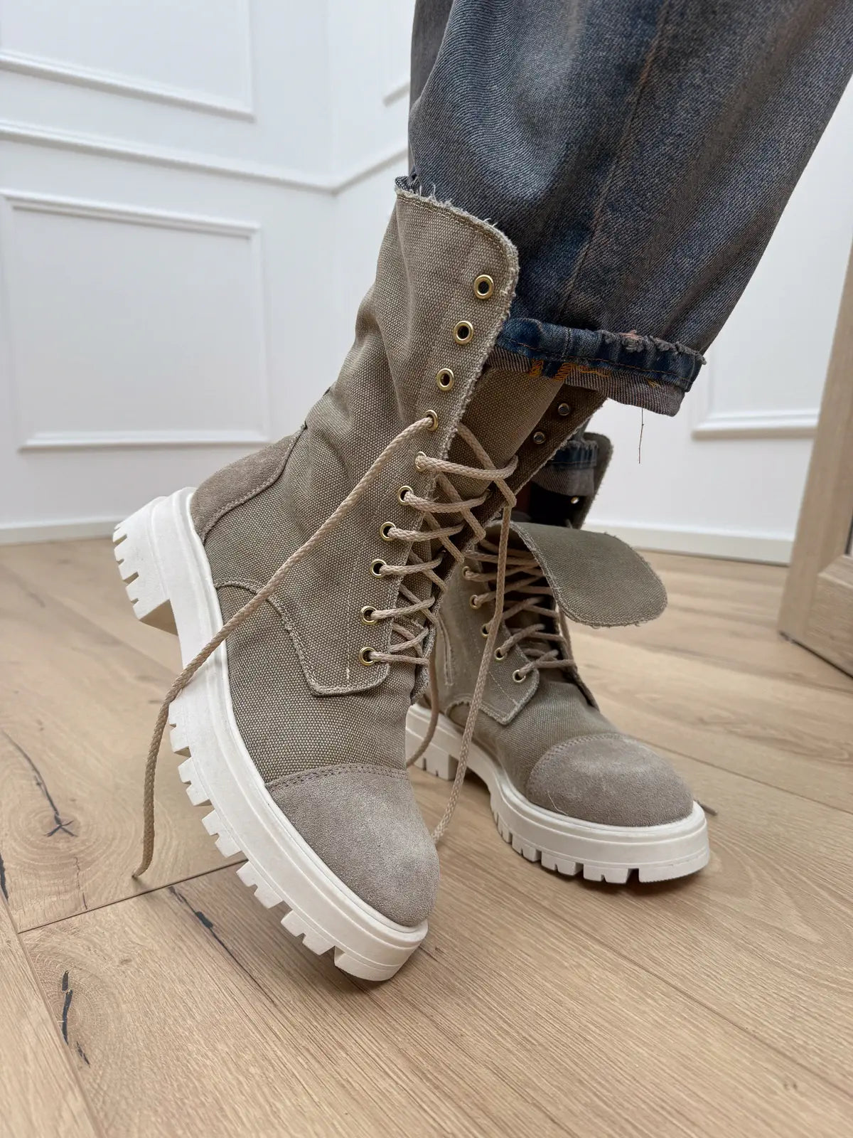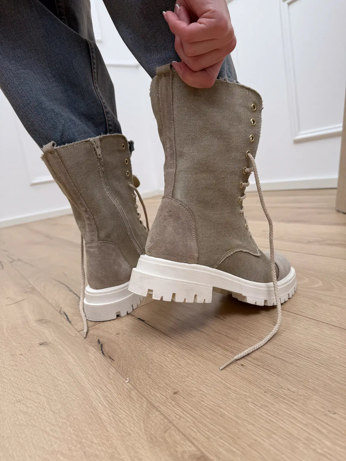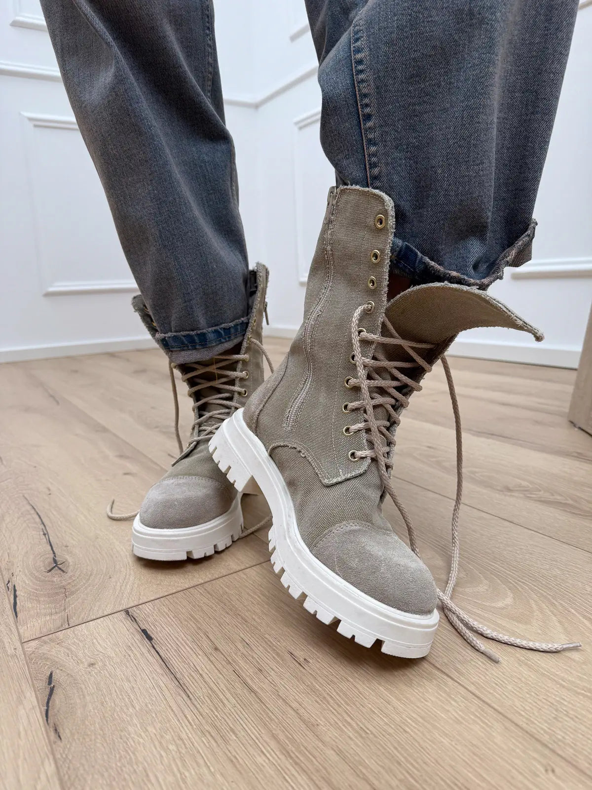 Anfibio stringato sabbia in canvas - Divine Follie
