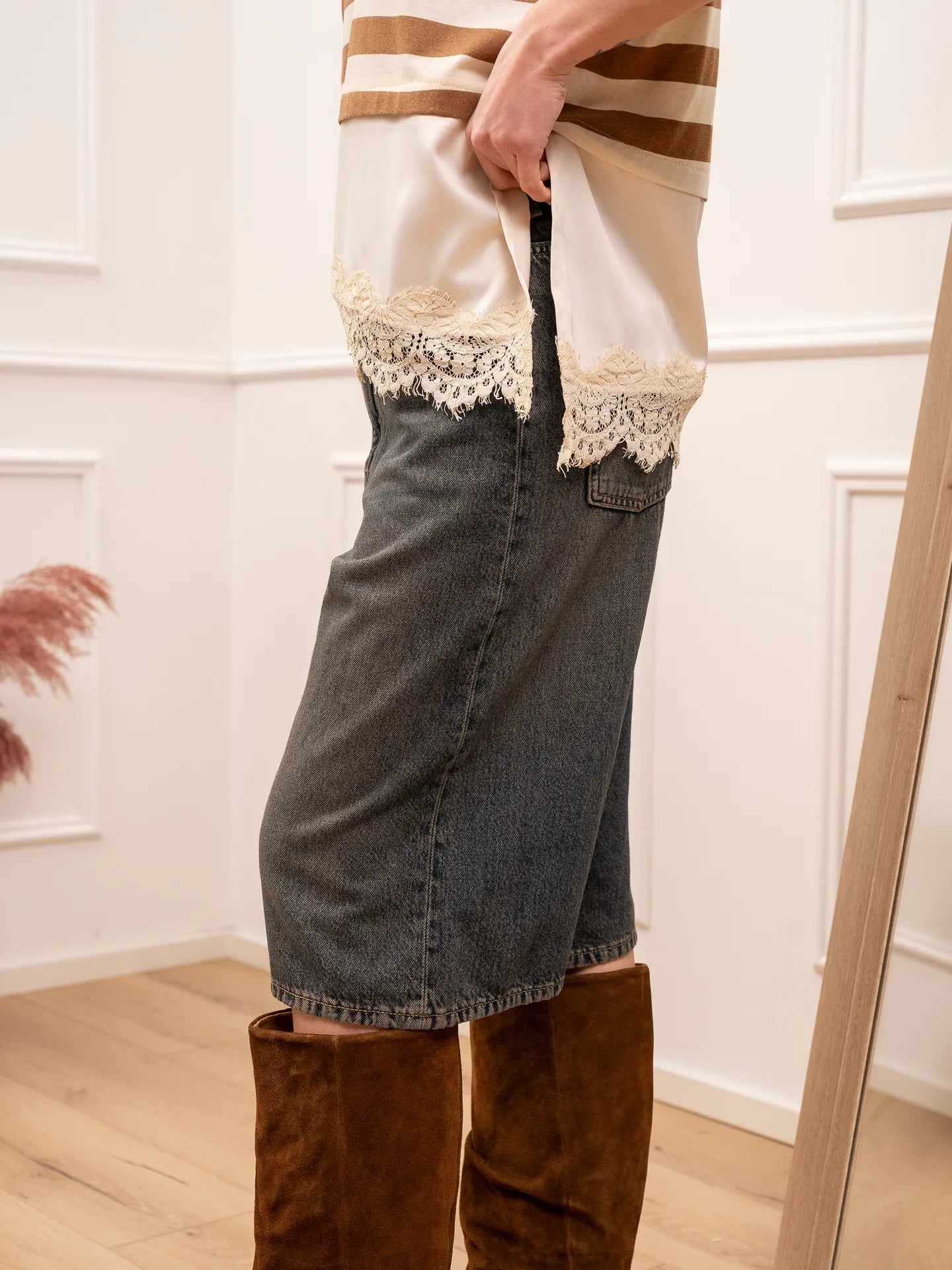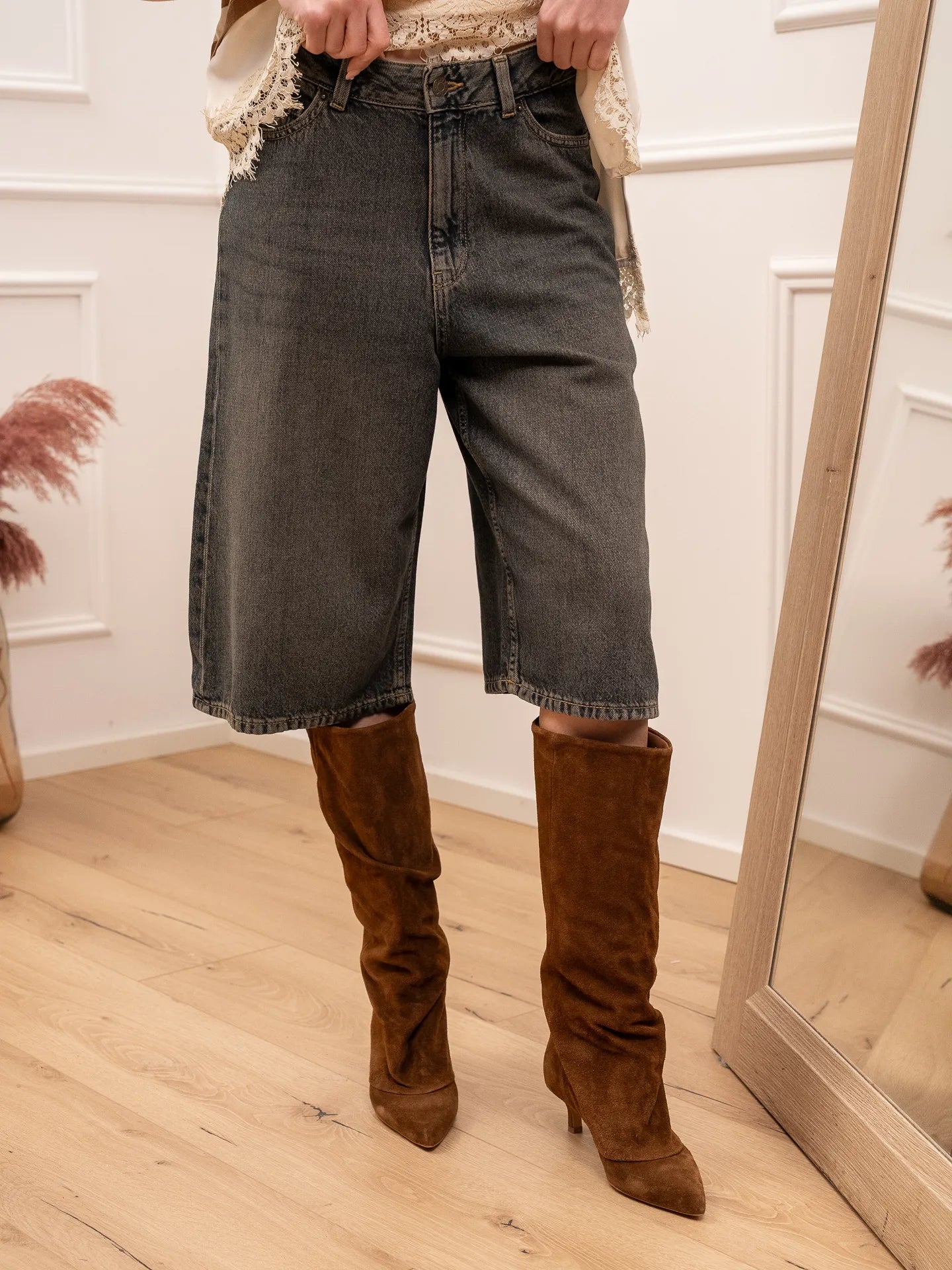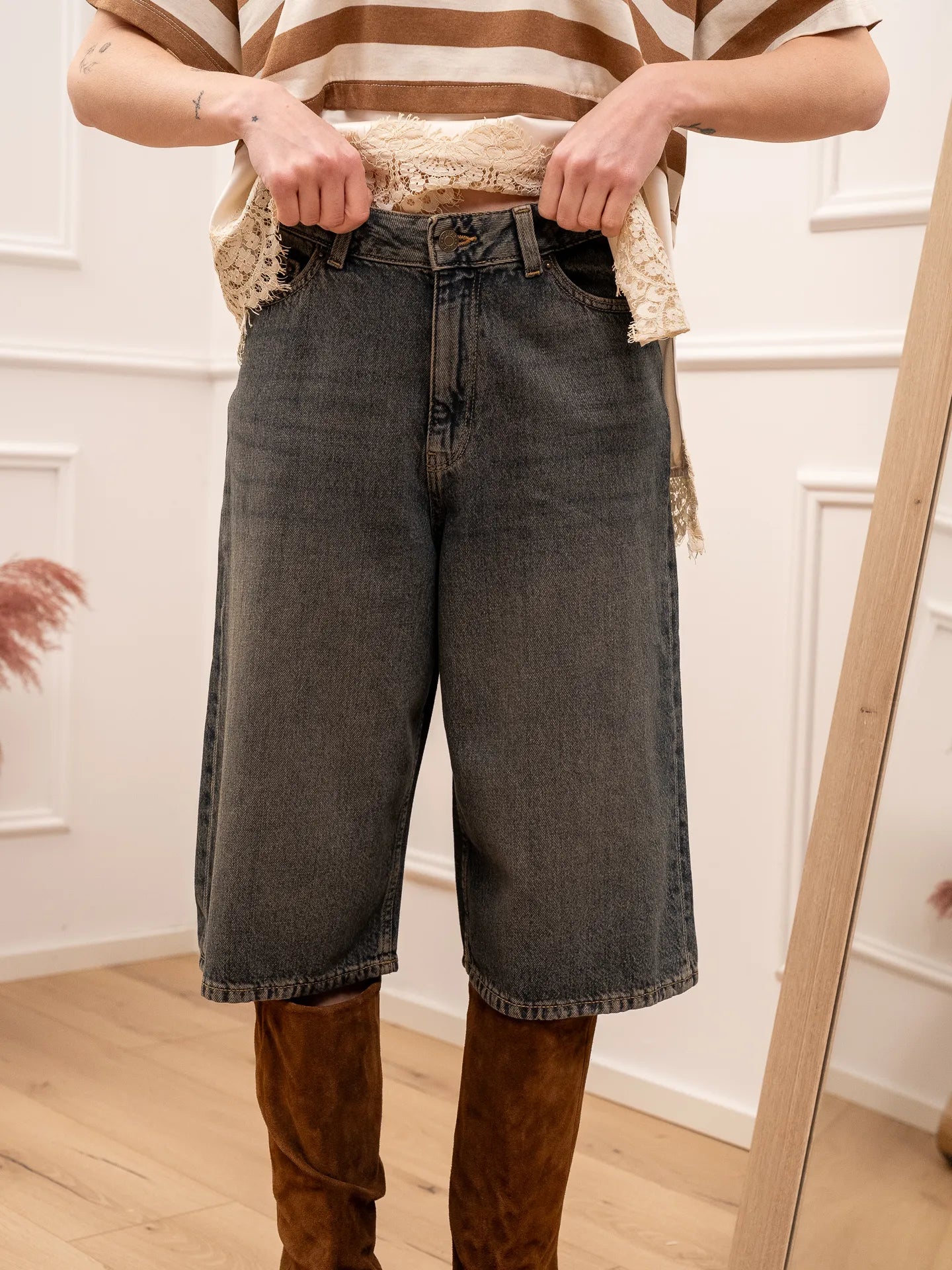 Bermuda Kyoto in denim JJXX. Modello baggy fit a vita media con cavallo leggemente sceso. Chiusura bottone e zip.