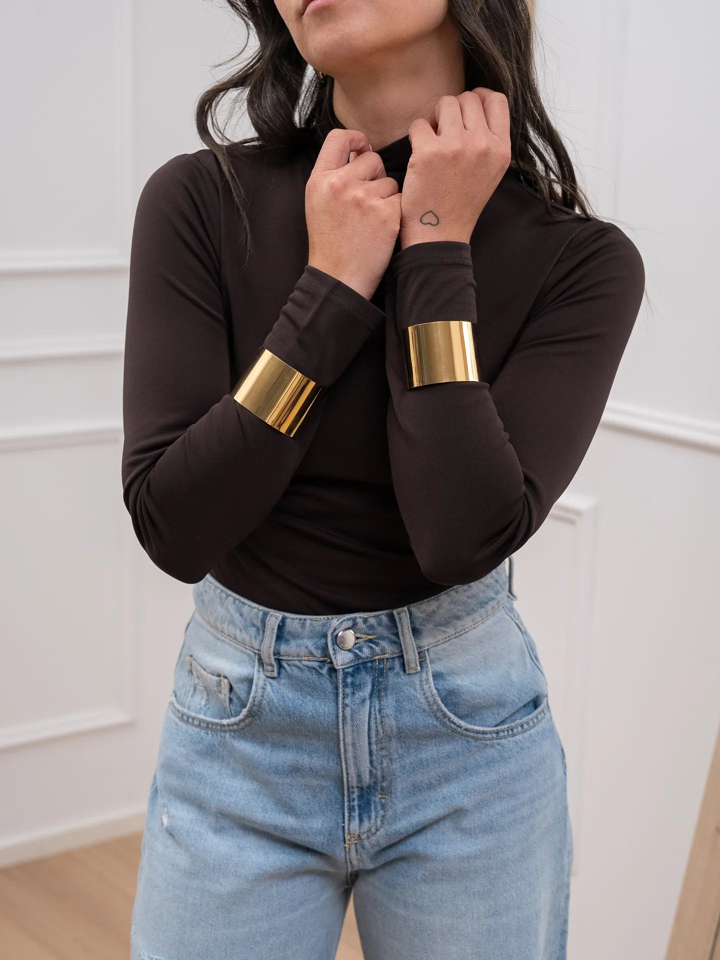 Body color moro Glamorous. Modello a collo alto e manica lunga. Fit aderente, chiusura sul fondo con bottoni a pressione.