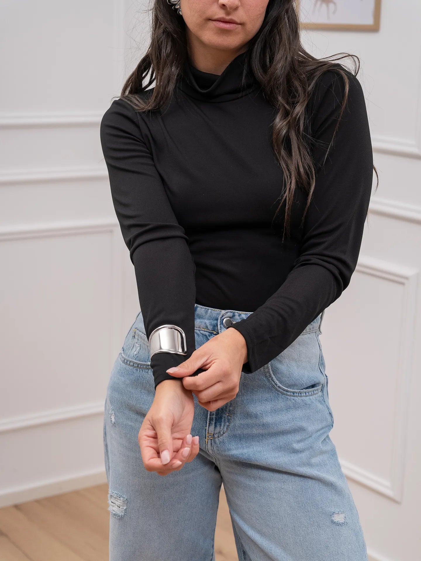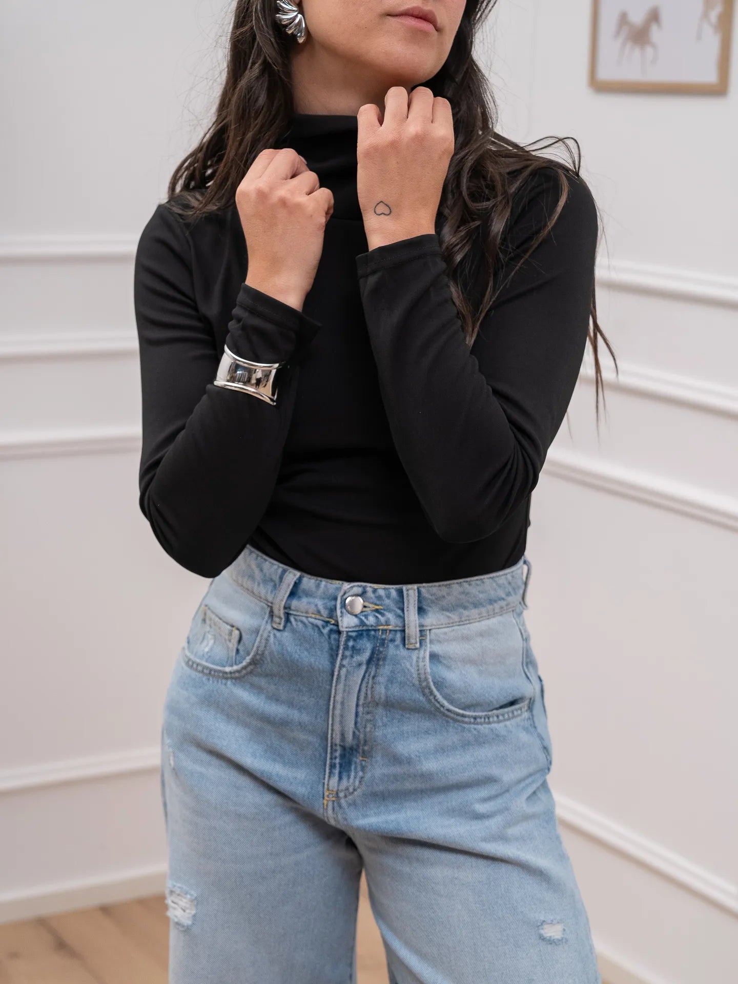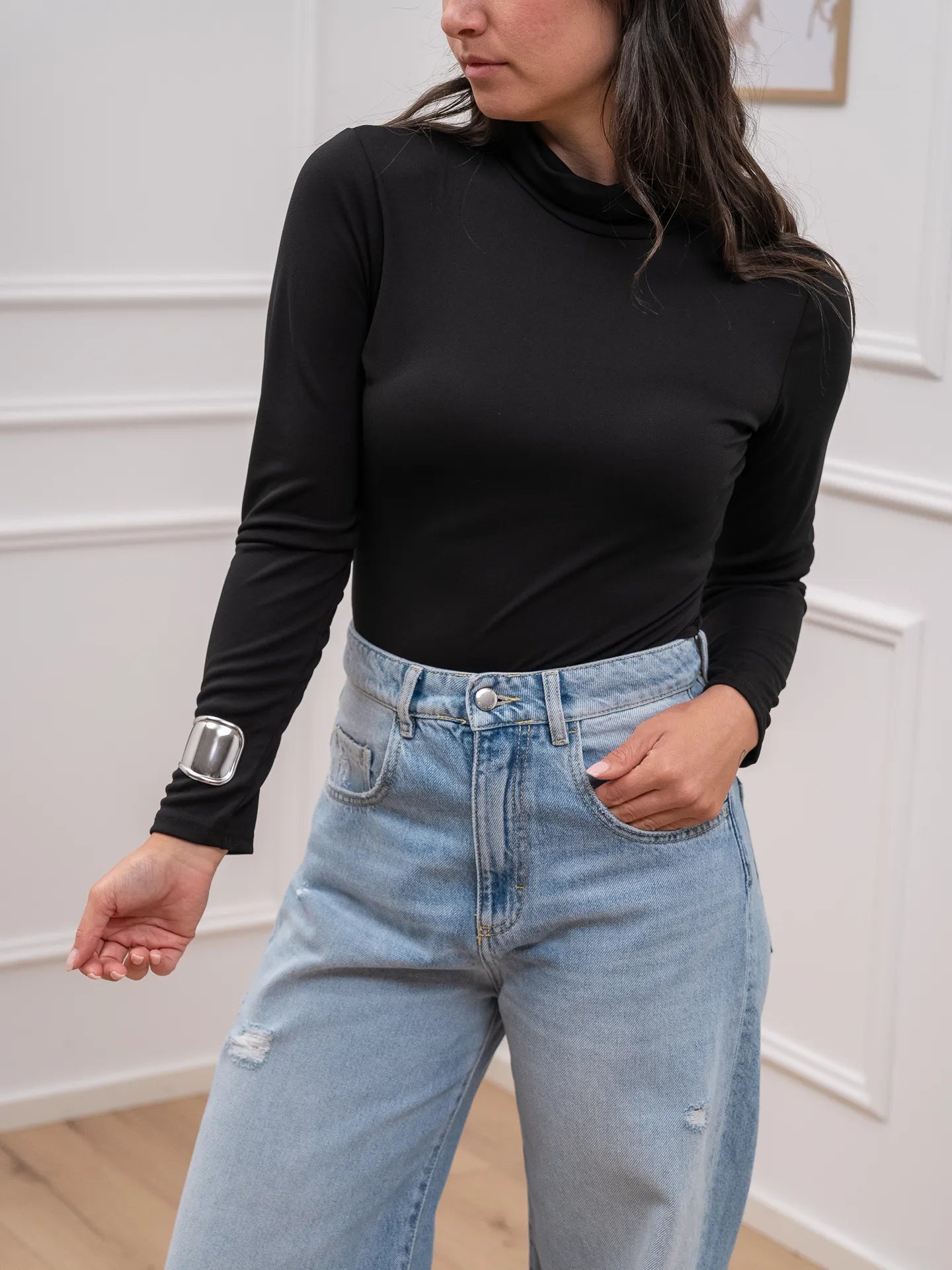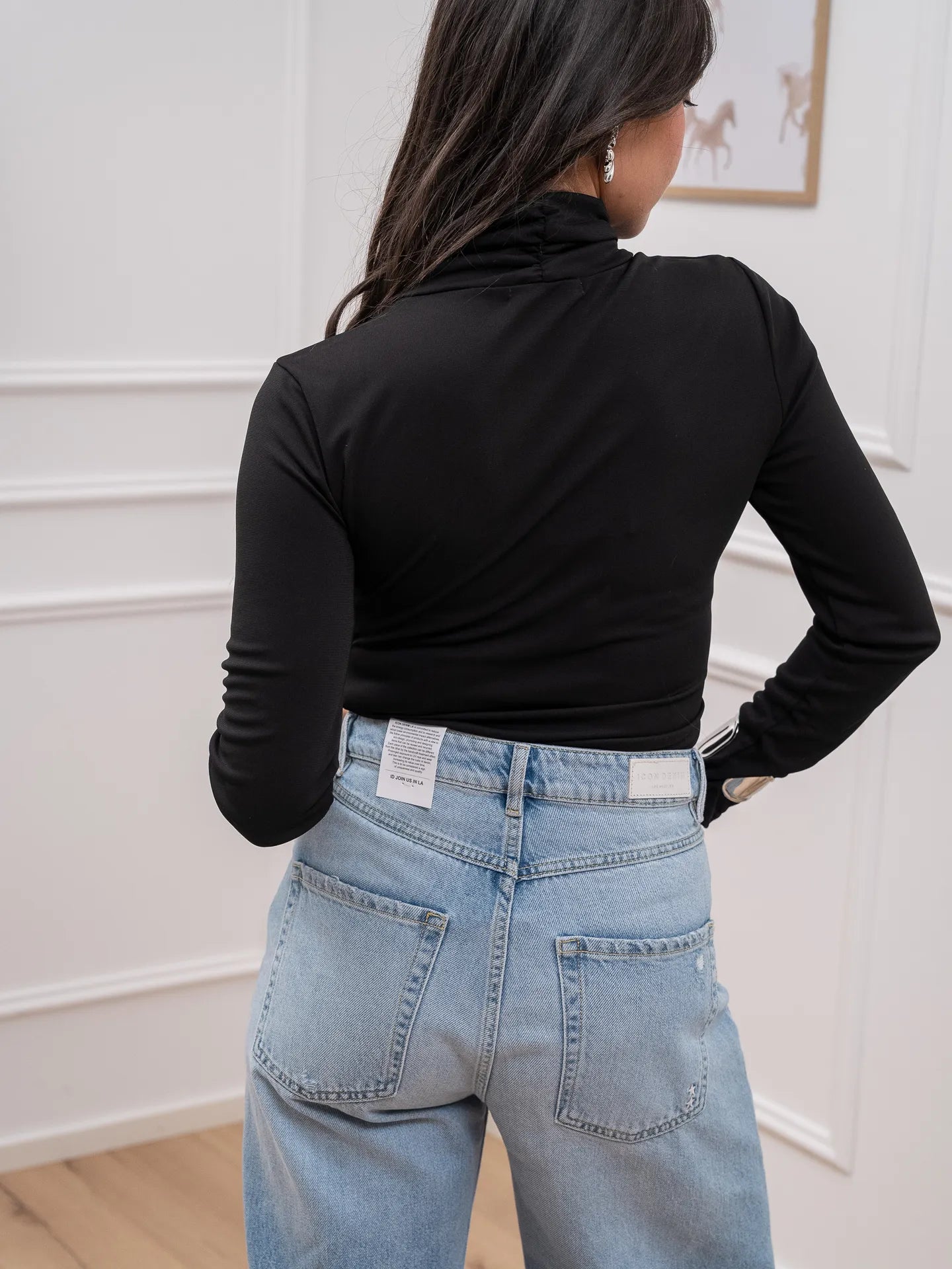 Body color nero Glamorous. Modello a collo alto e manica lunga. Fit aderente, chiusura sul fondo con bottoni a pressione.