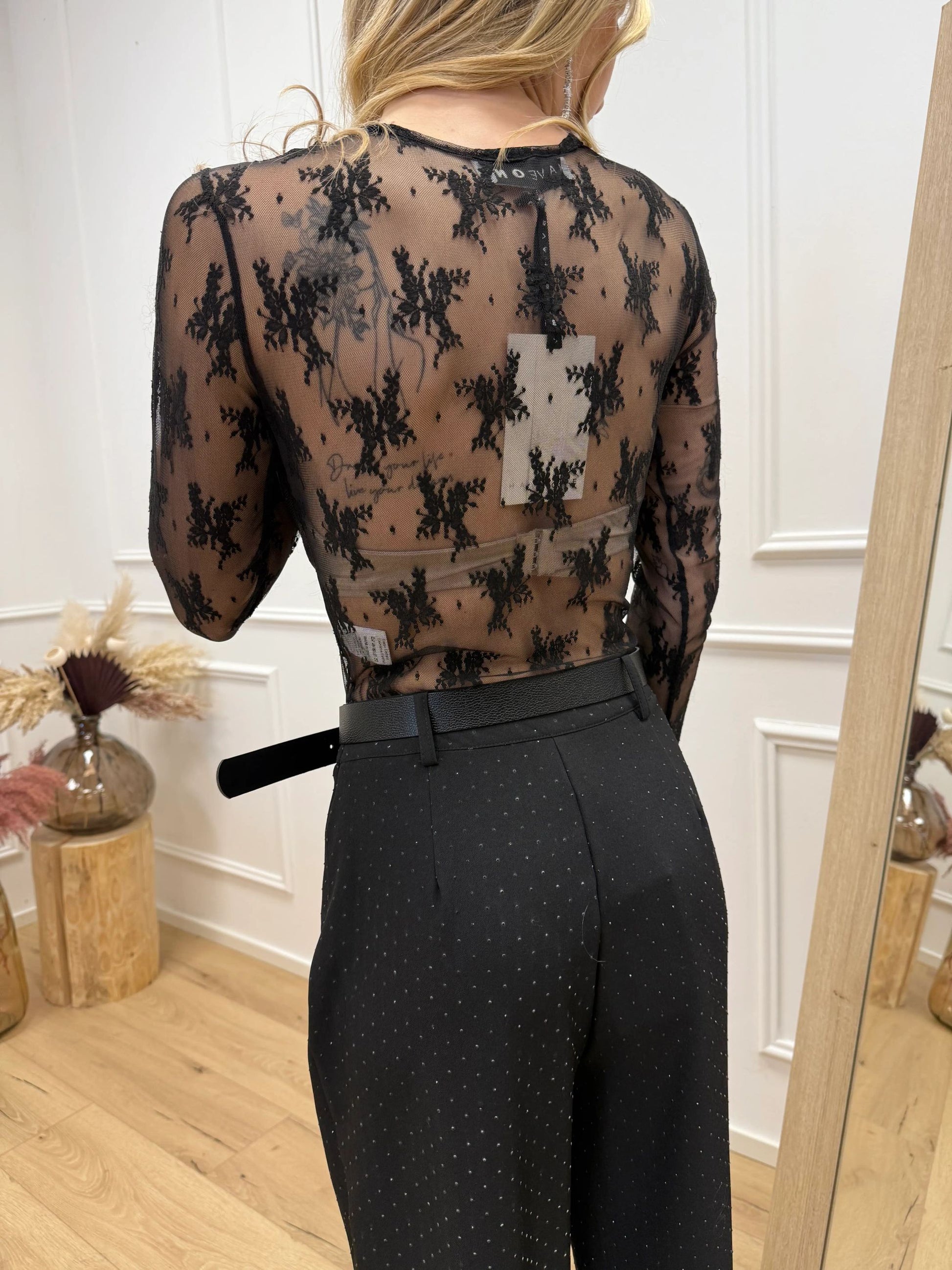 Body in pizzo nero girocollo - HaveOne
