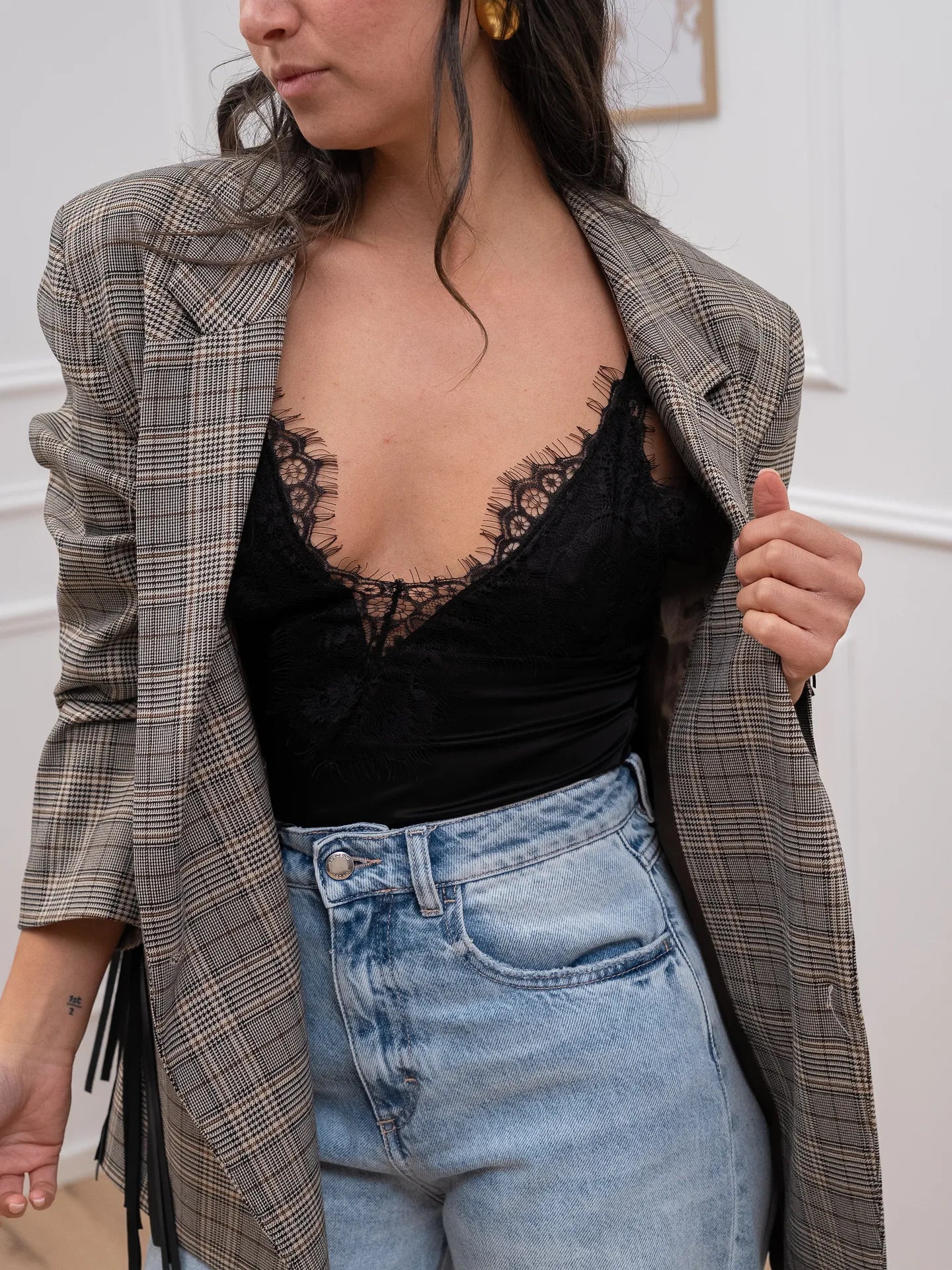 Body in raso nero con pizzo - Dixie