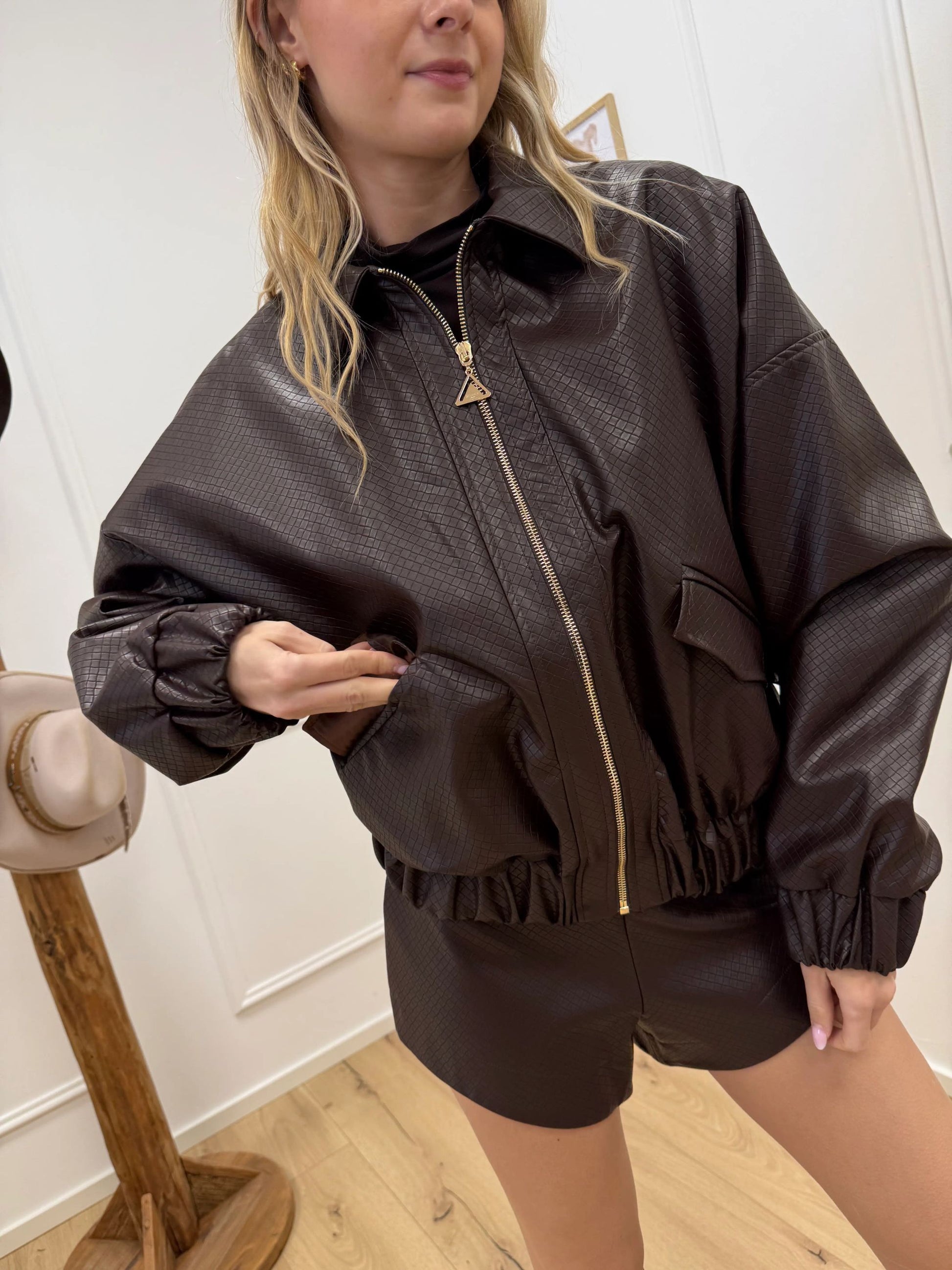 Bomber ecopelle lavorata moro - Silence Limited