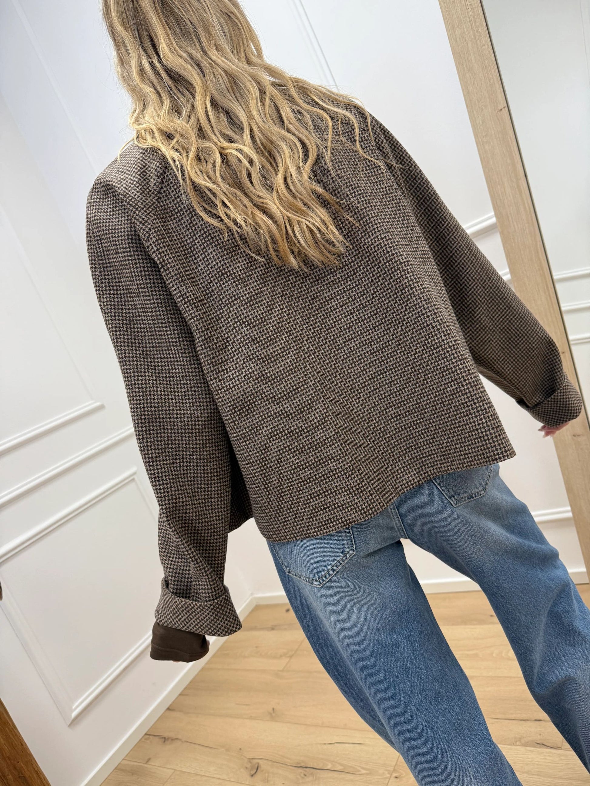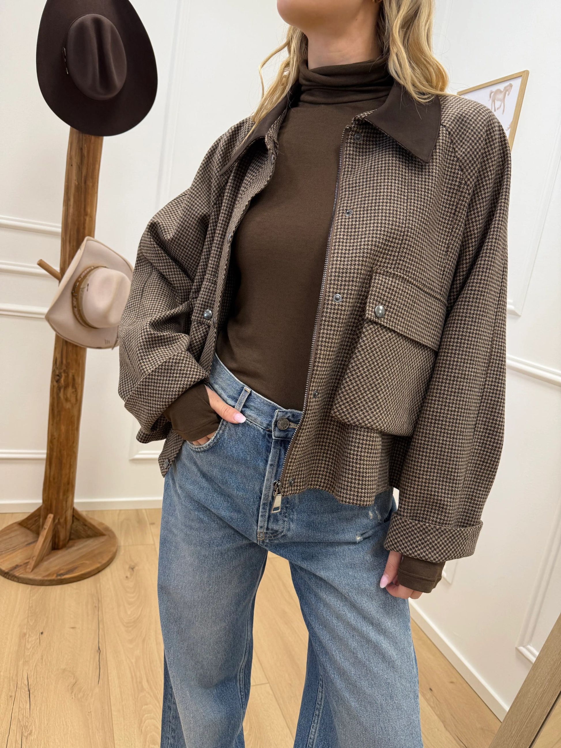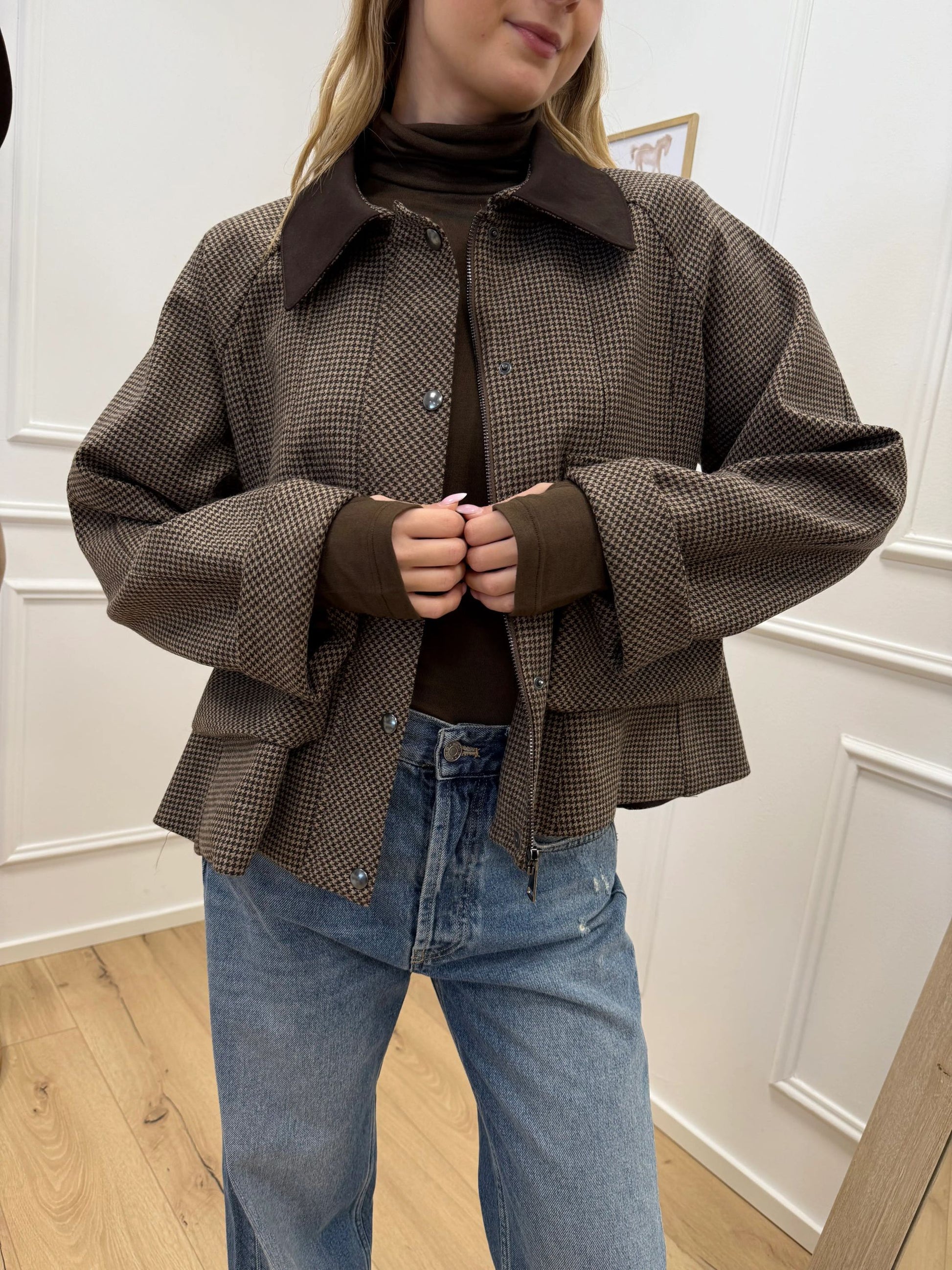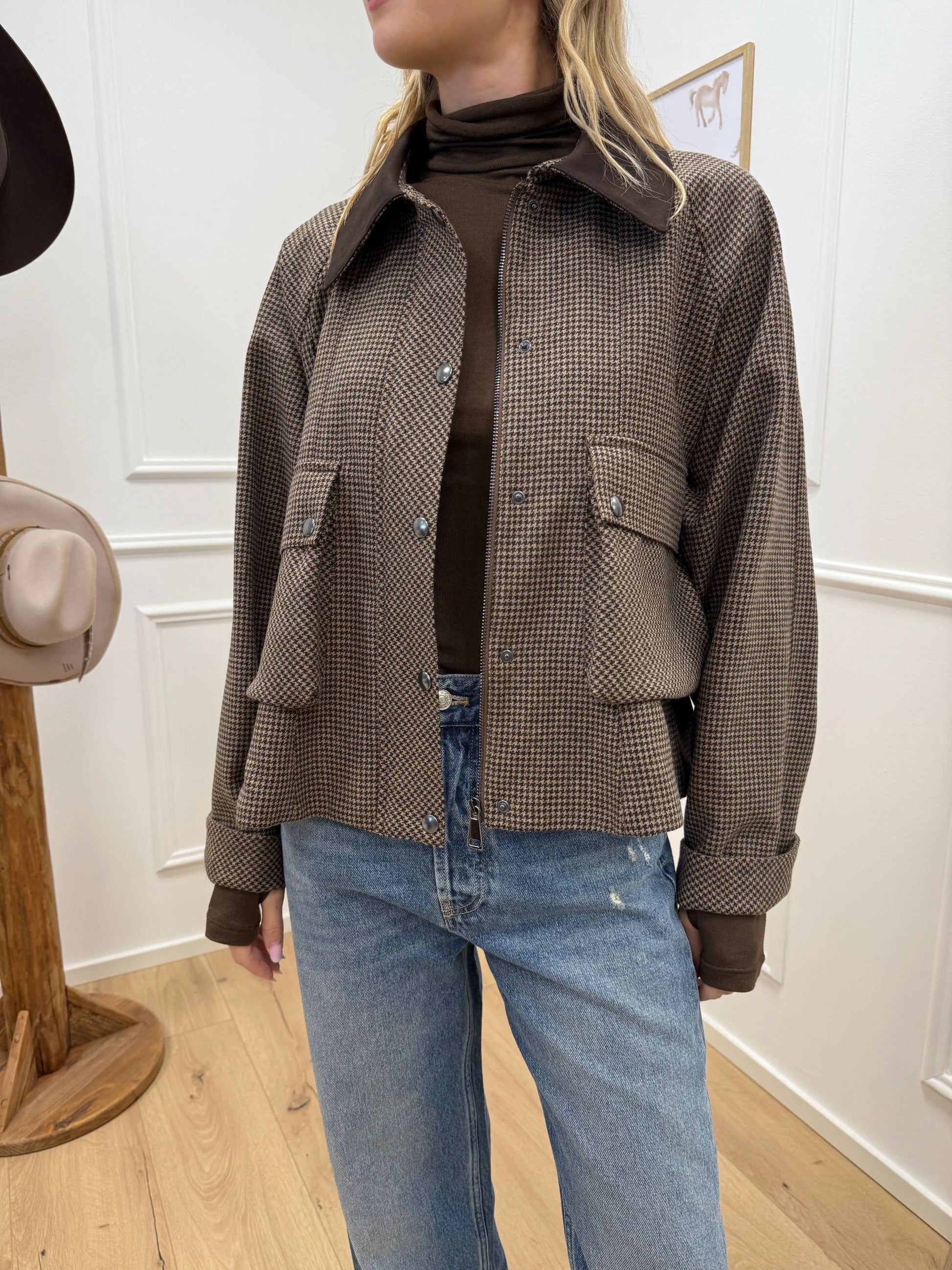Bomber pied de poule beige, moro in lana - Dixie