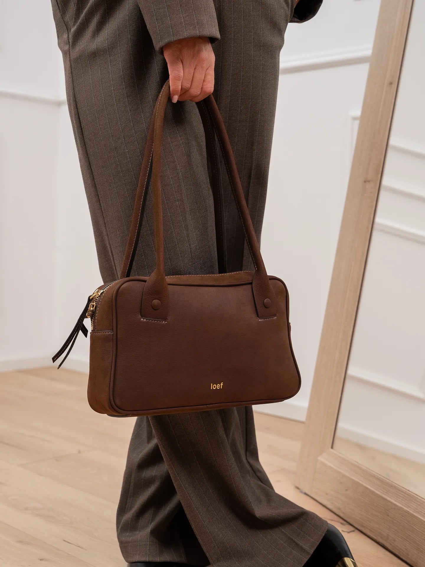 Borsa Bigotta in pelle nabuk sigaro - Ioef