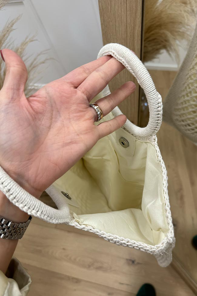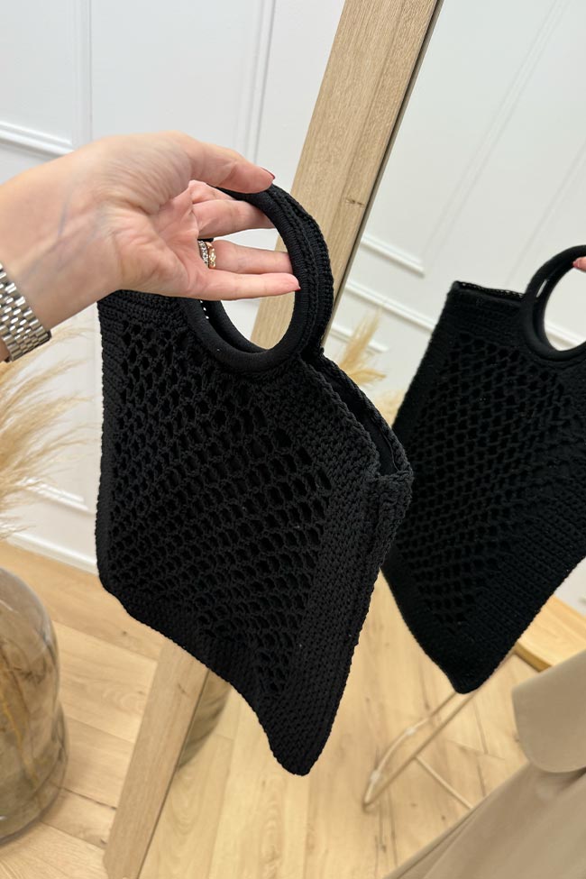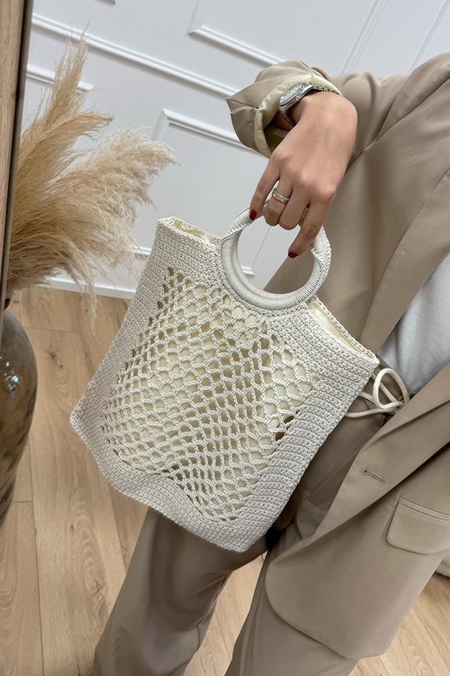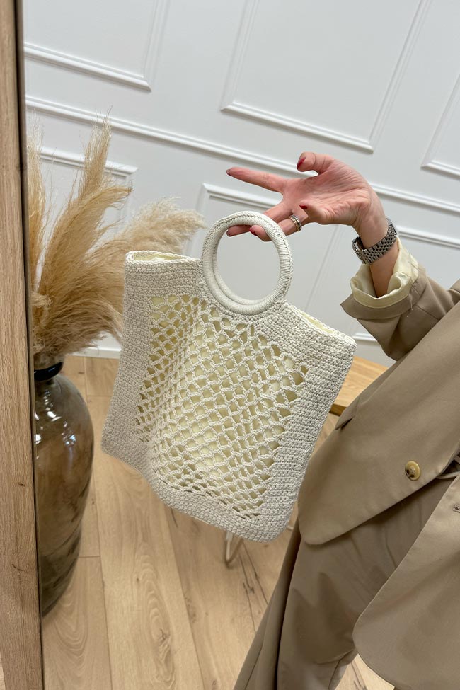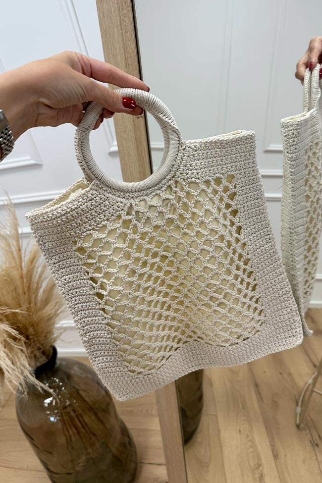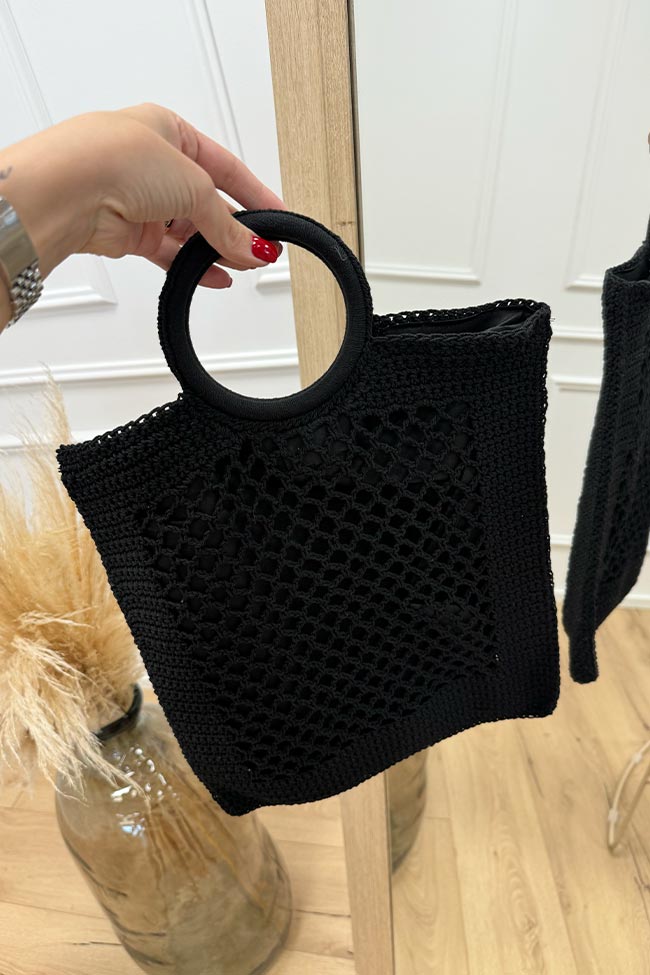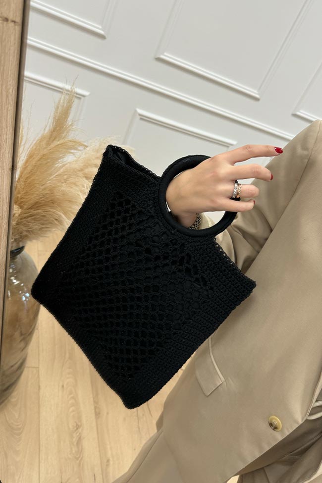 Borsa crochet grande Modello con manici rotondi. Chiusura con bottone a pressione.