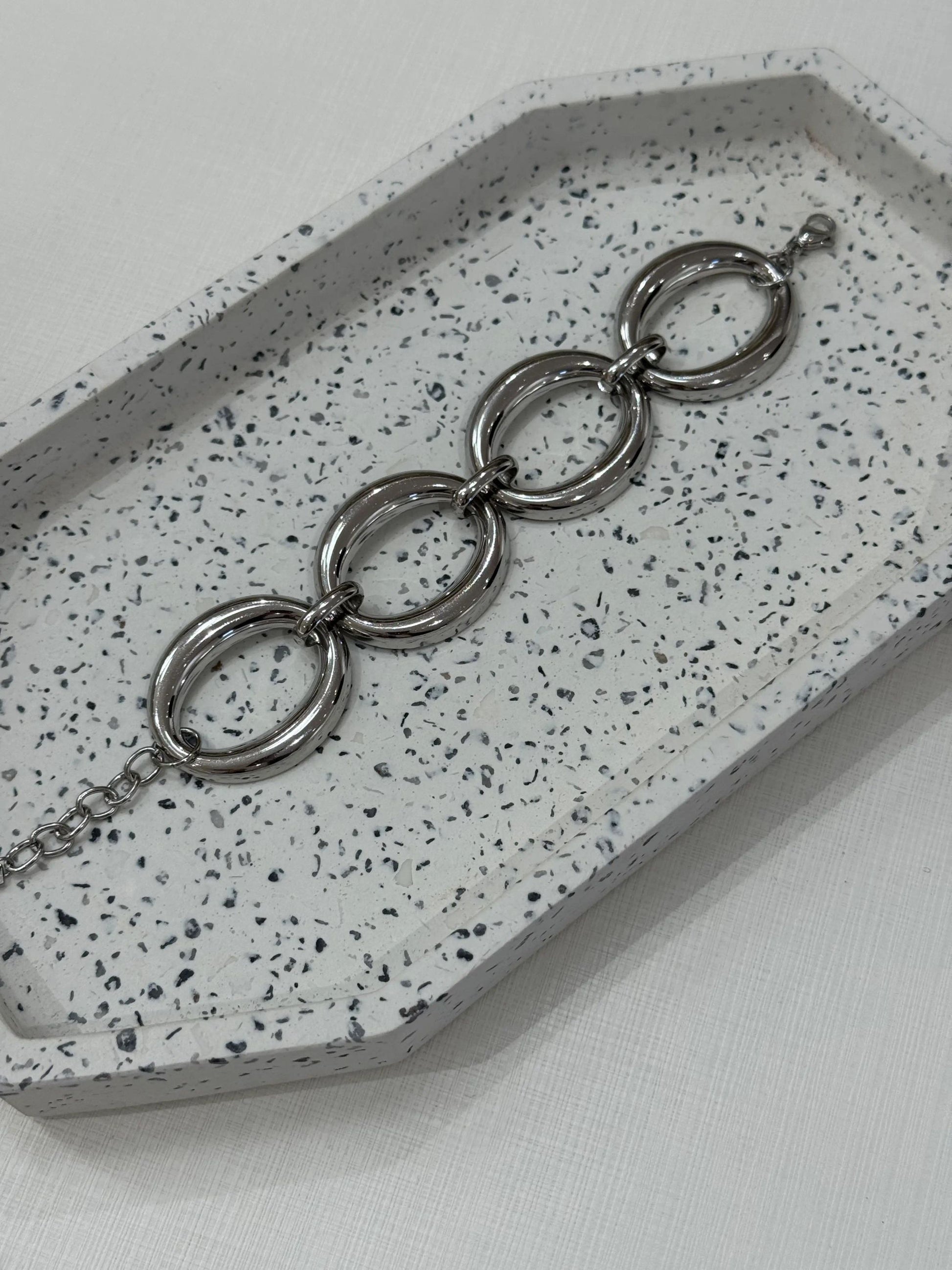 Bracciale cerchi argento. In acciaio inossidabile. Misura regolabile.