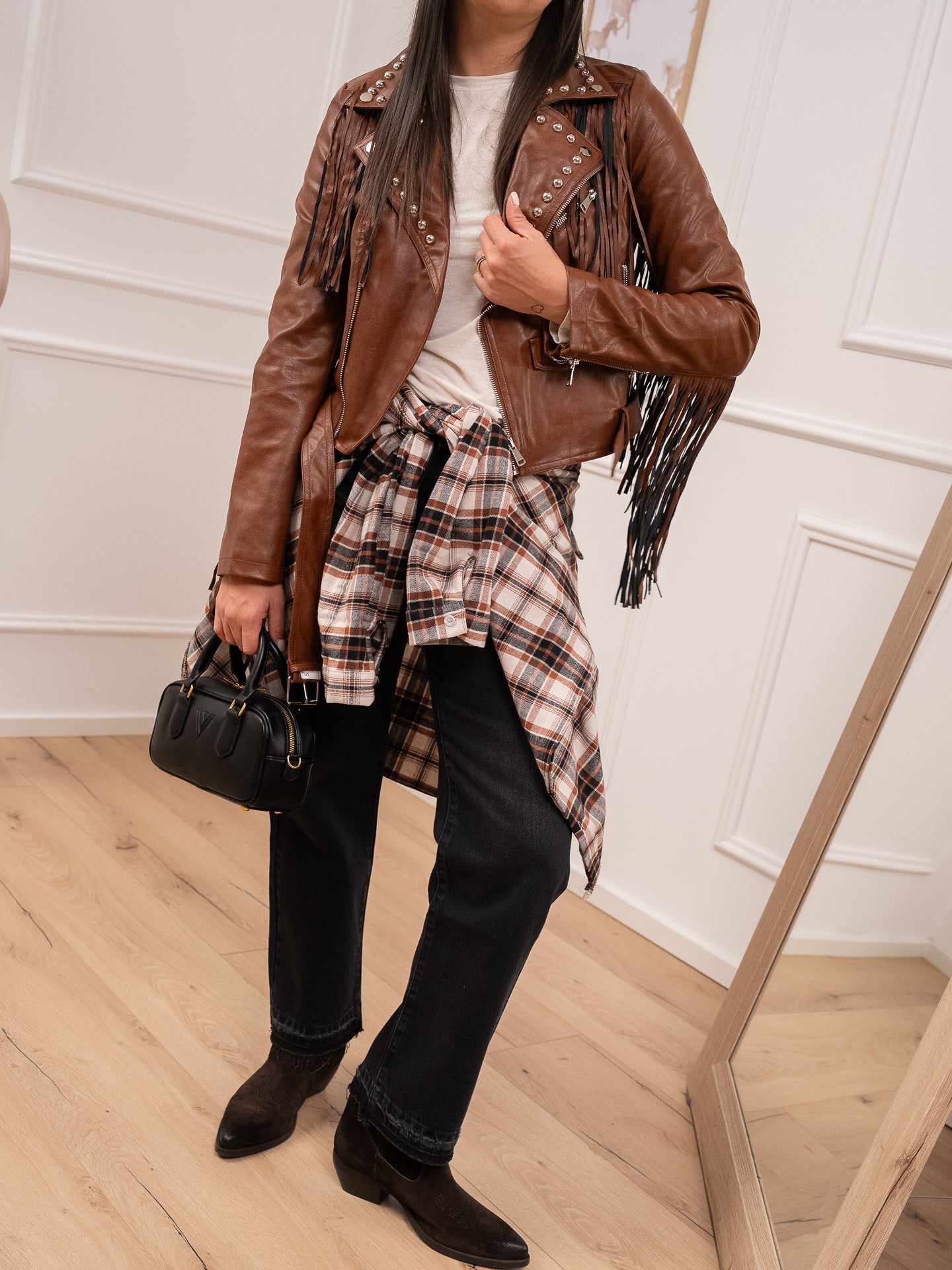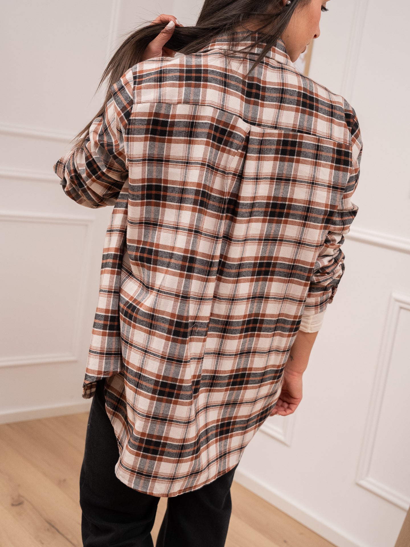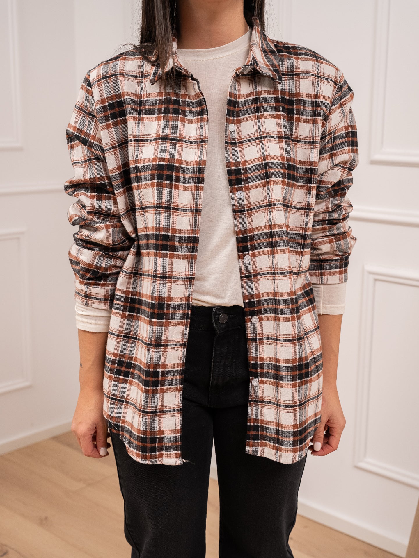 Camicia basic check tabacco, panna e nero in flanella - HaveOne