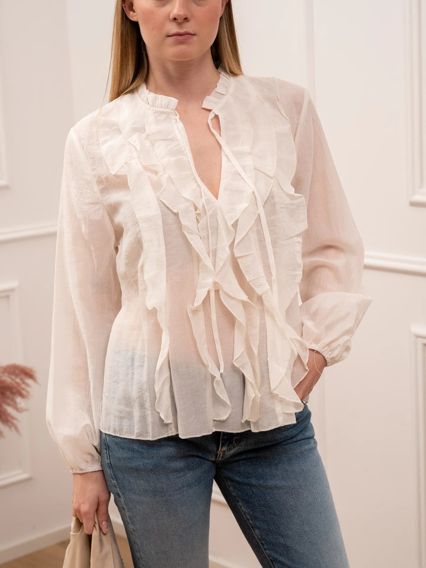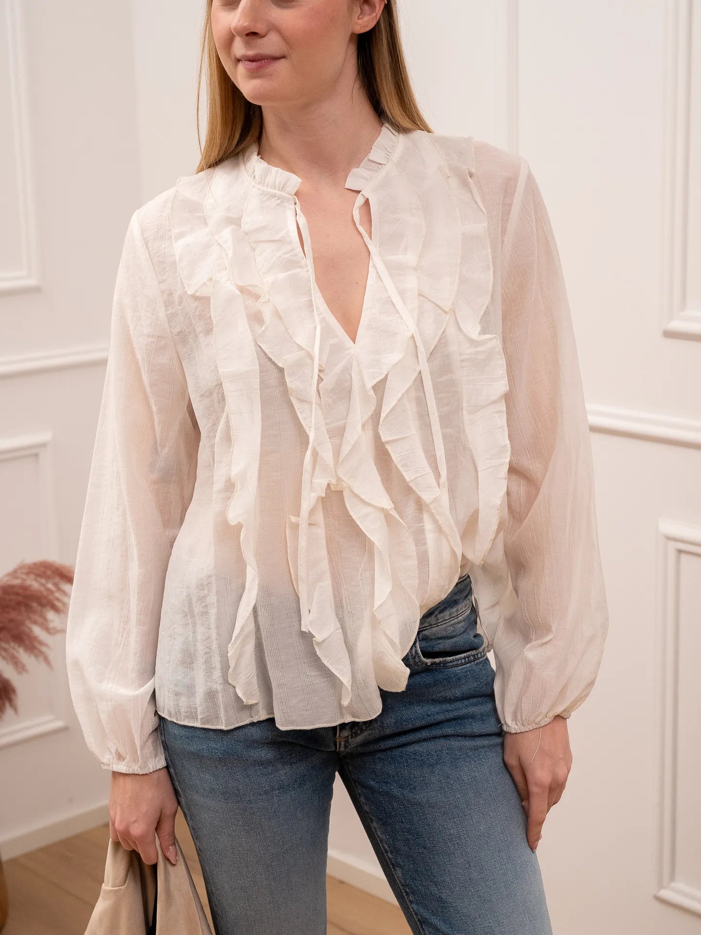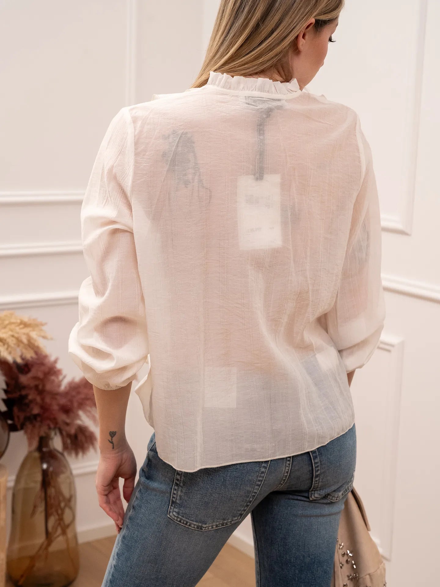 Camicia bianca effetto stropicciato con rouches - HaveOne
