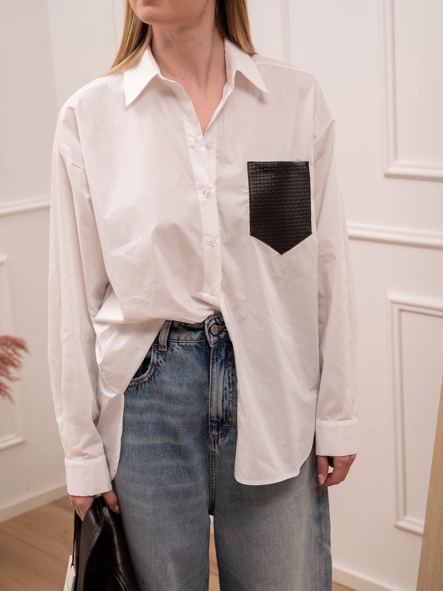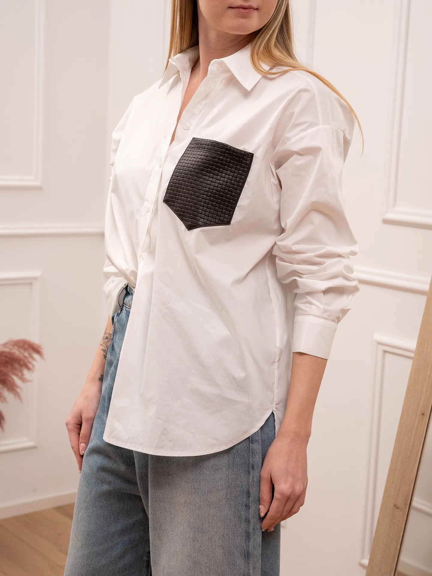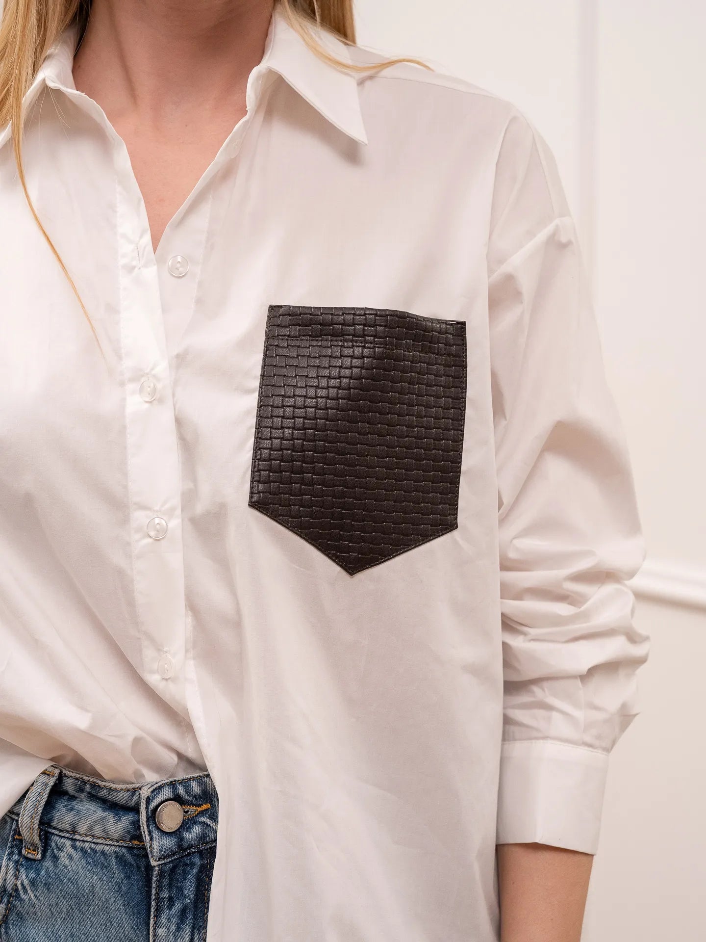 Camicia bianca tasca ecopelle moro - Tensione In