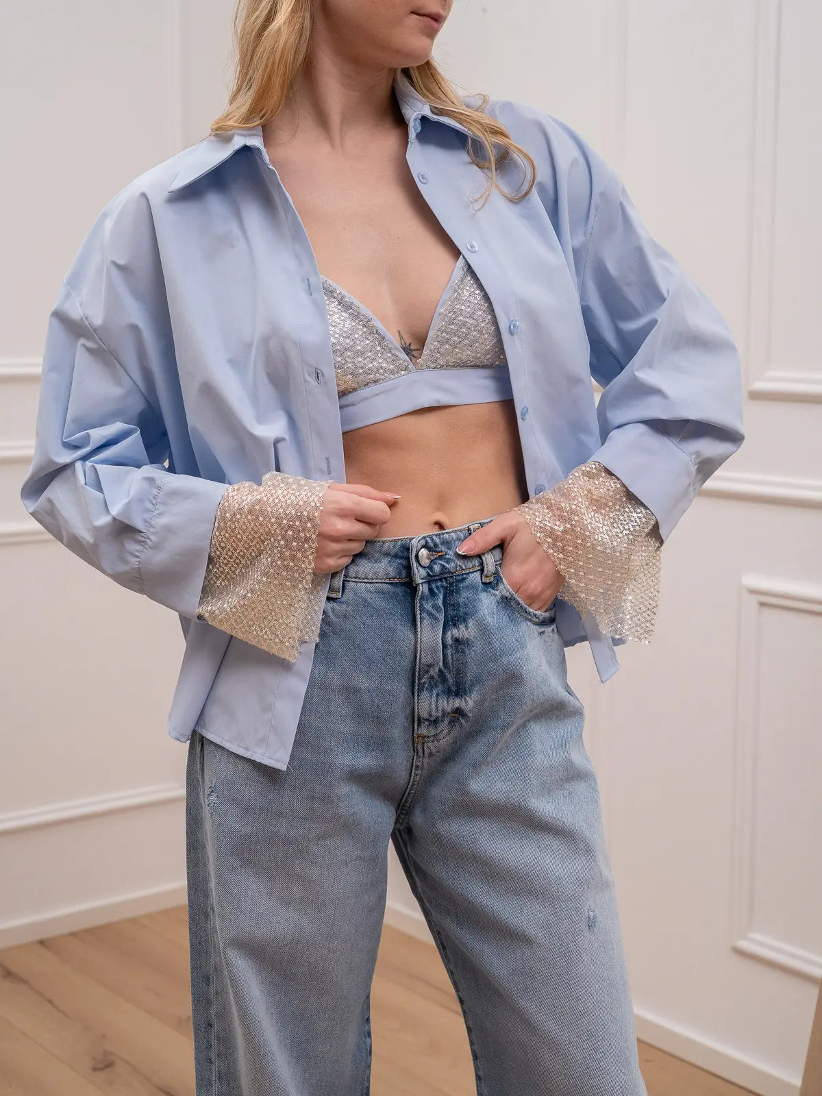 Camicia celeste con bralette e dettagli nude - HaveOne