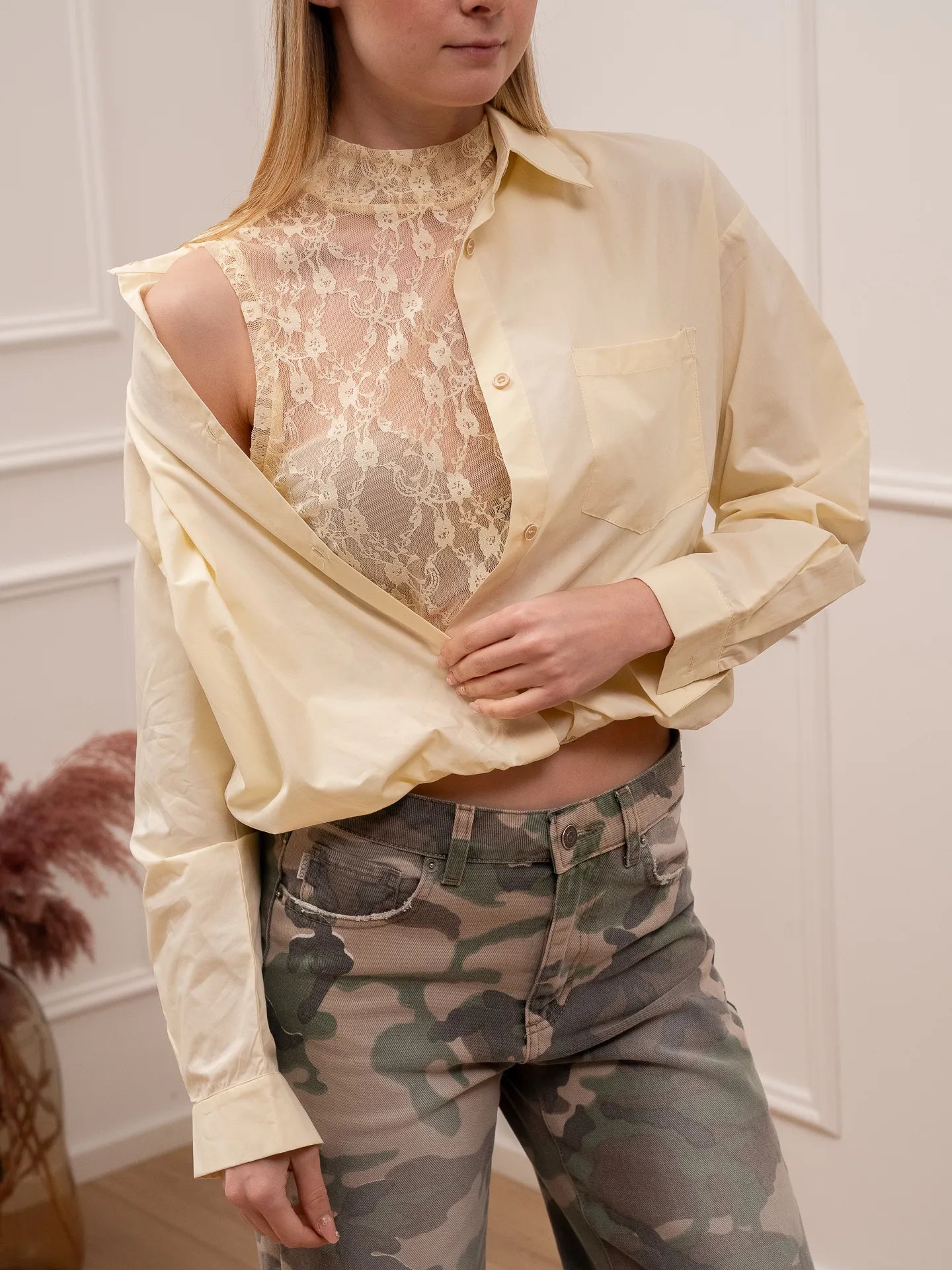 Camicia con top in pizzo giallo - HaveOne