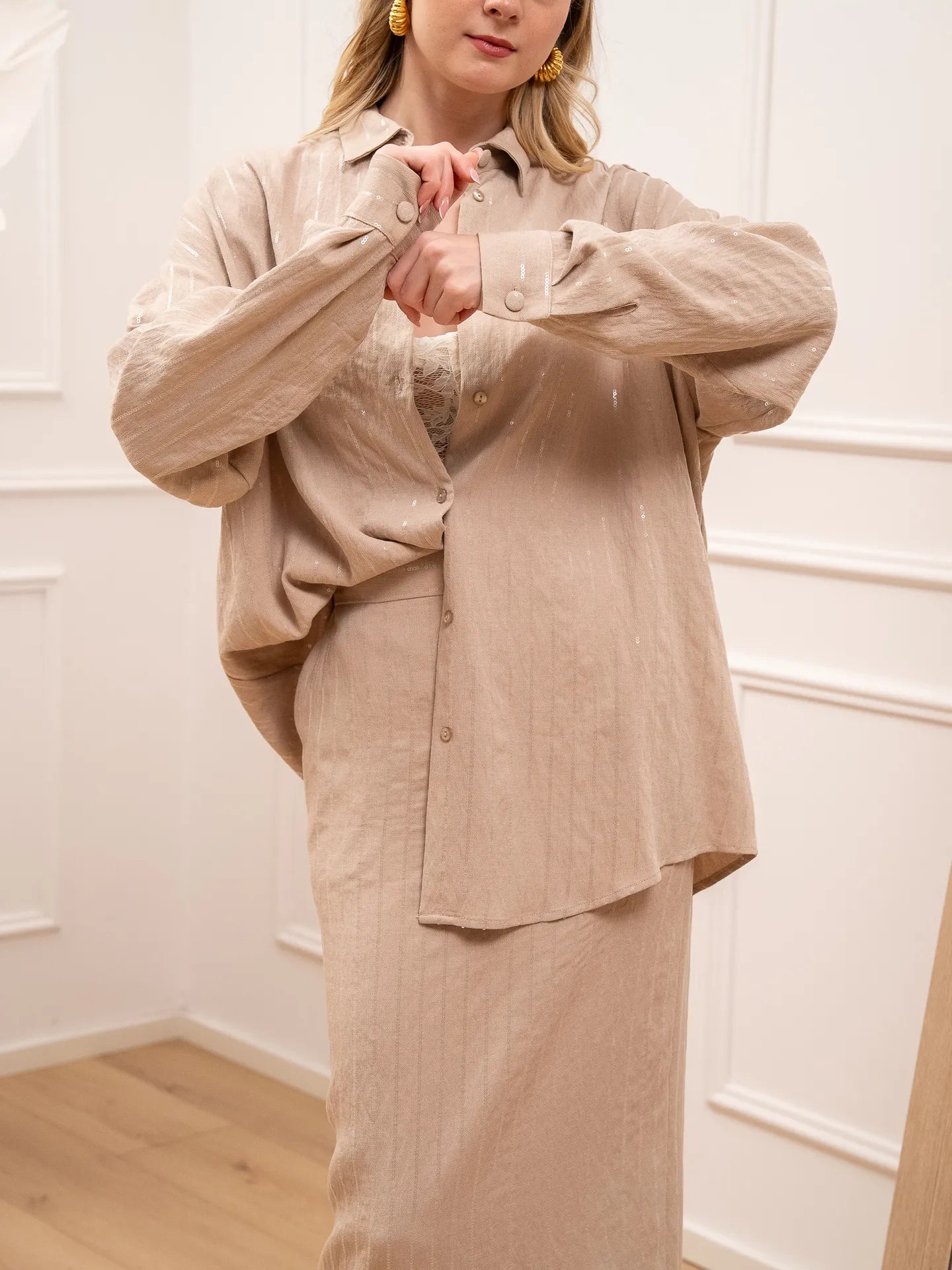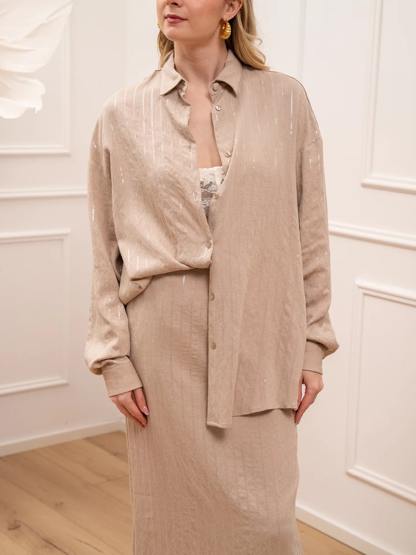 Camicia Glam sabbia gessati con paillettes - Silence Limited