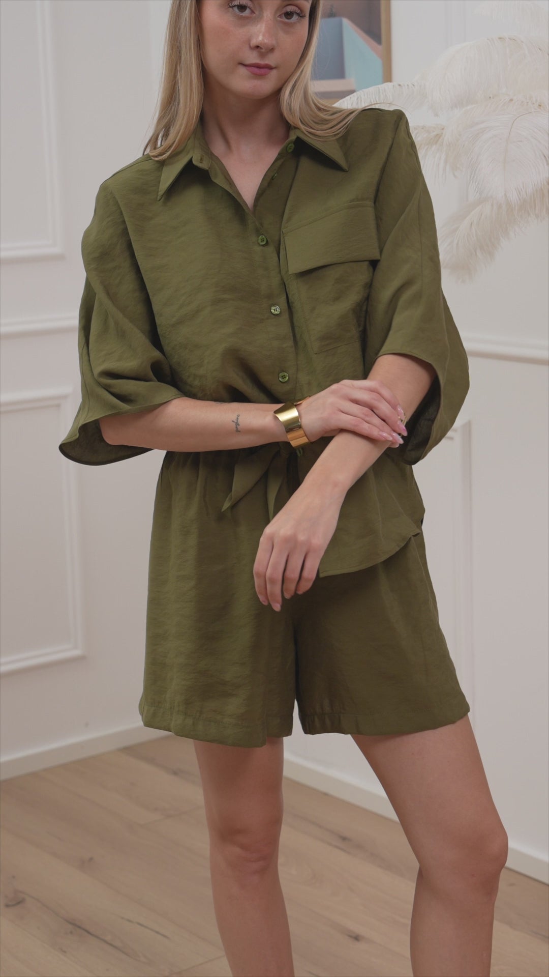 Camicia in viscosa color militare HaveOne. Modello fit oversize con colletto e chiusura frontale con bottoni. Tasca con patta lato cuore.