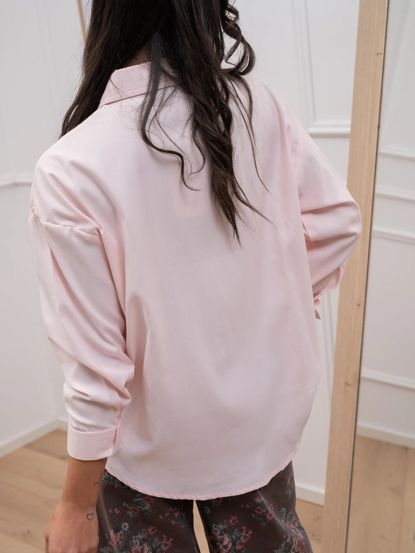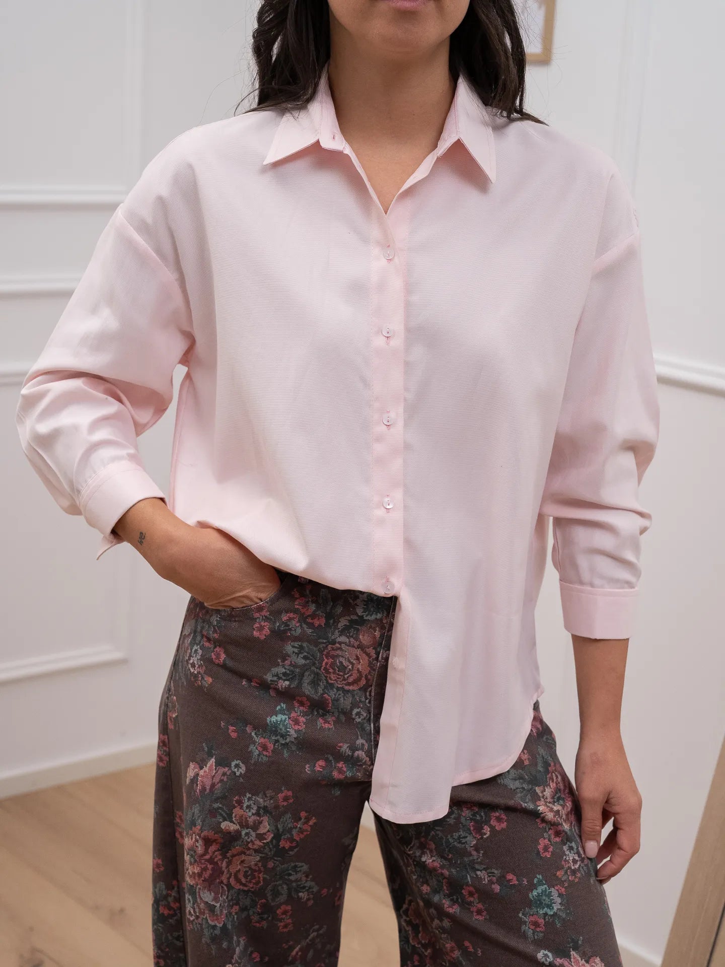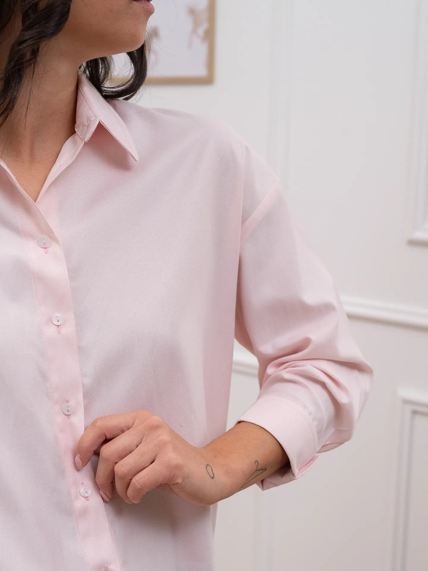 Camicia rosa oxford Dixie. Modello fit oversize con colletto e chiusura frontale con bottoni. Manica lunga con polsino sul fondo.
