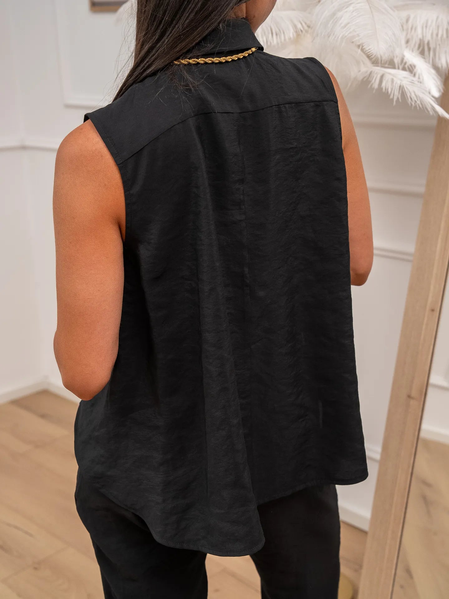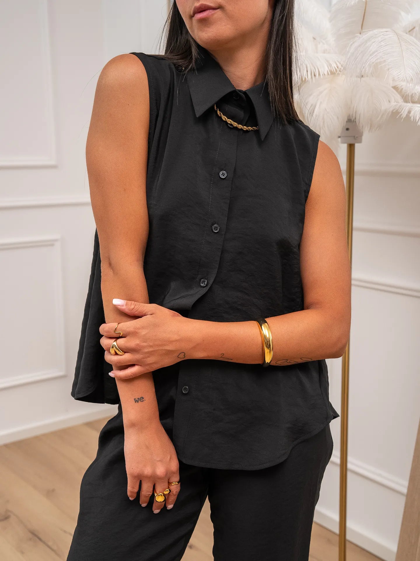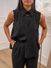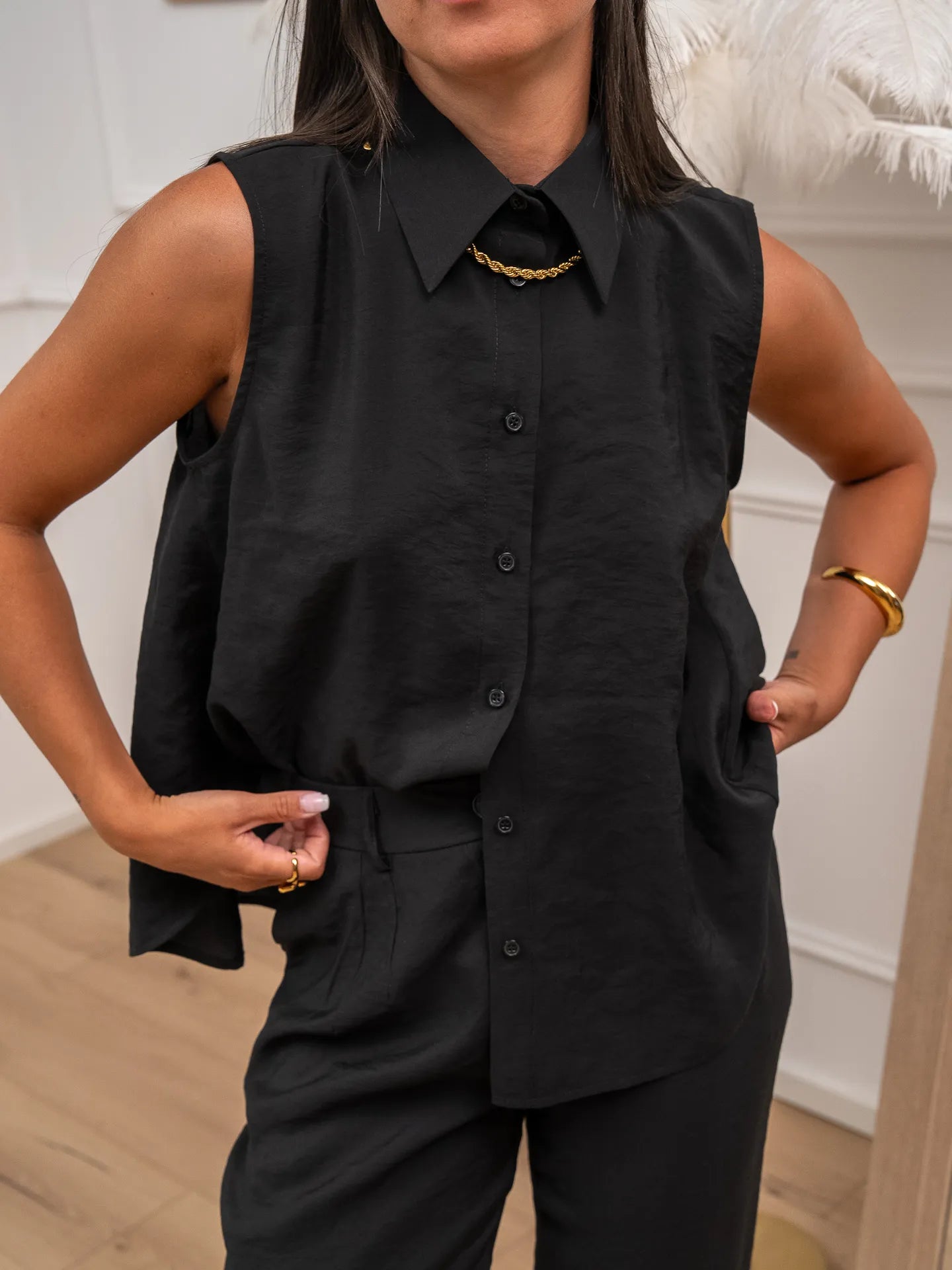 Camicia color nero in modal HaveOne. Modello smanicato con colletto e chiusura frontale con bottoncini. Fit oversize.