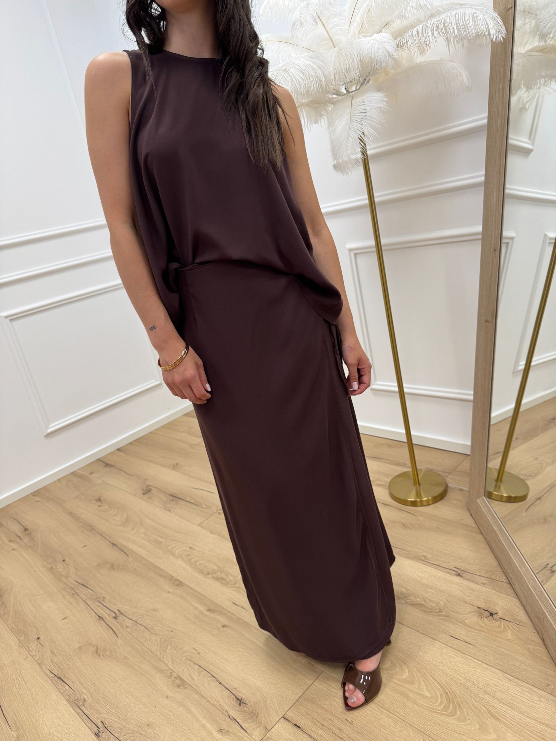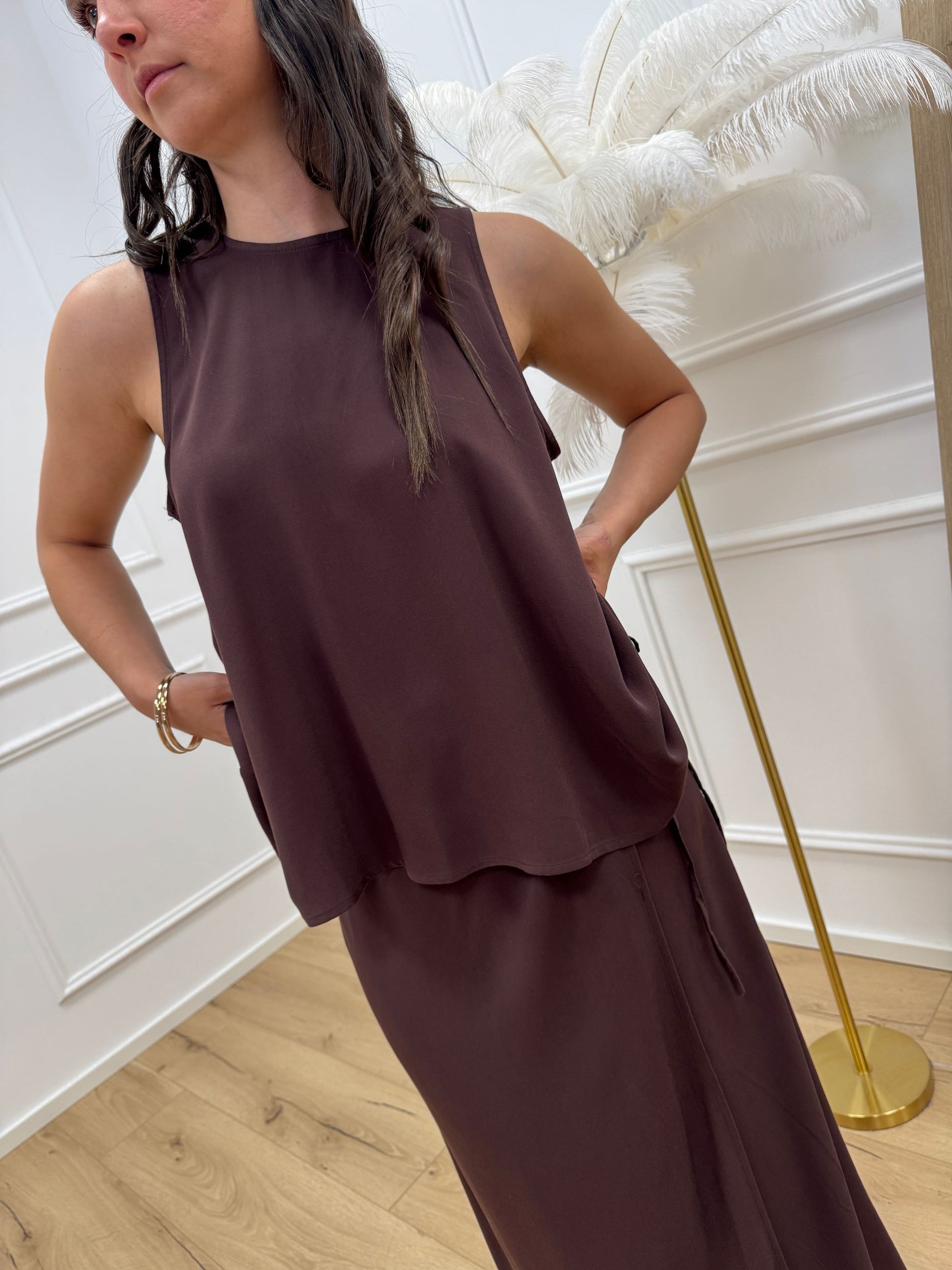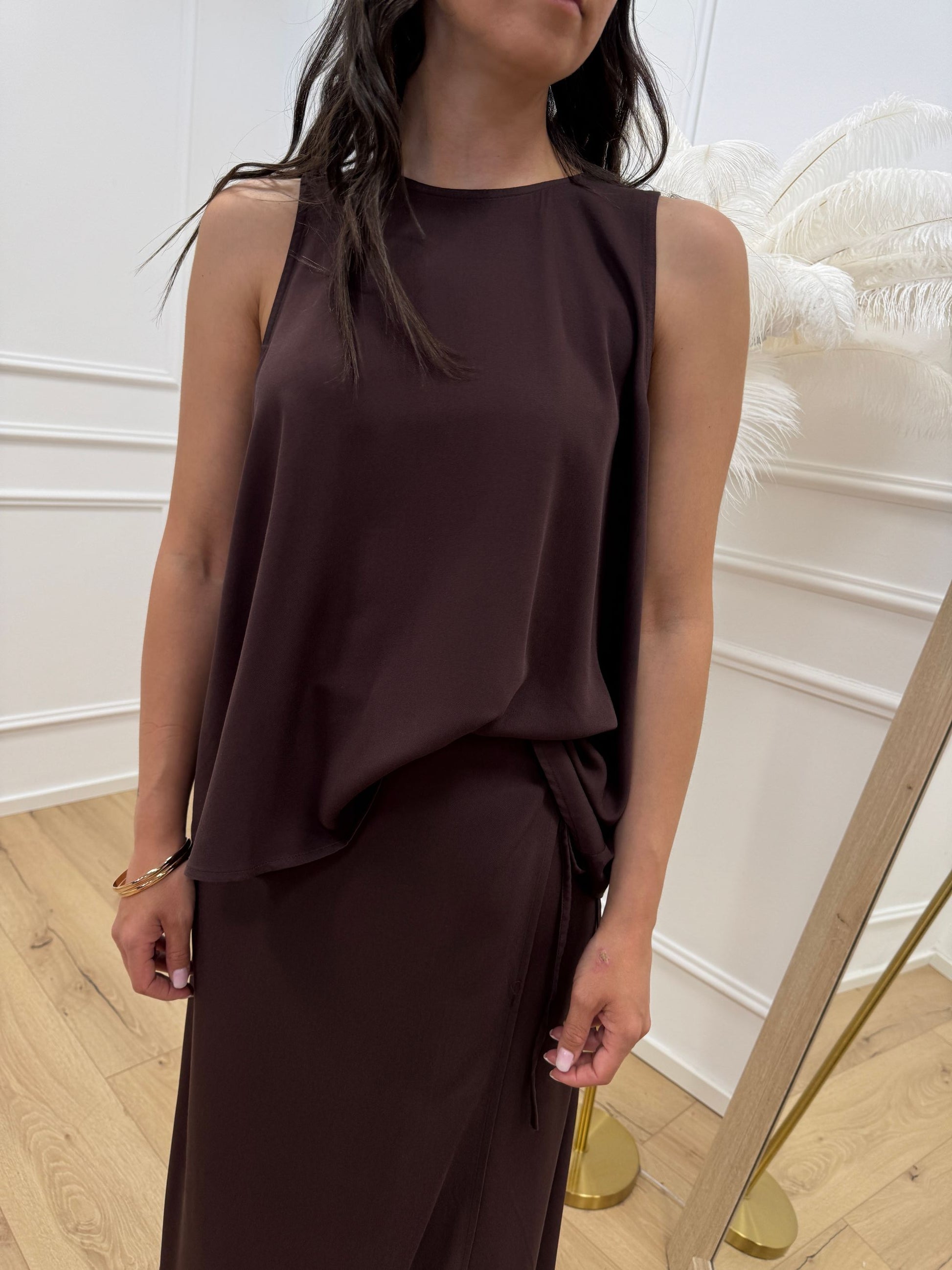 Canotta color cioccolato in viscosa HaveOne. Modello scollo canotta con fit morbido svasato sul fondo.