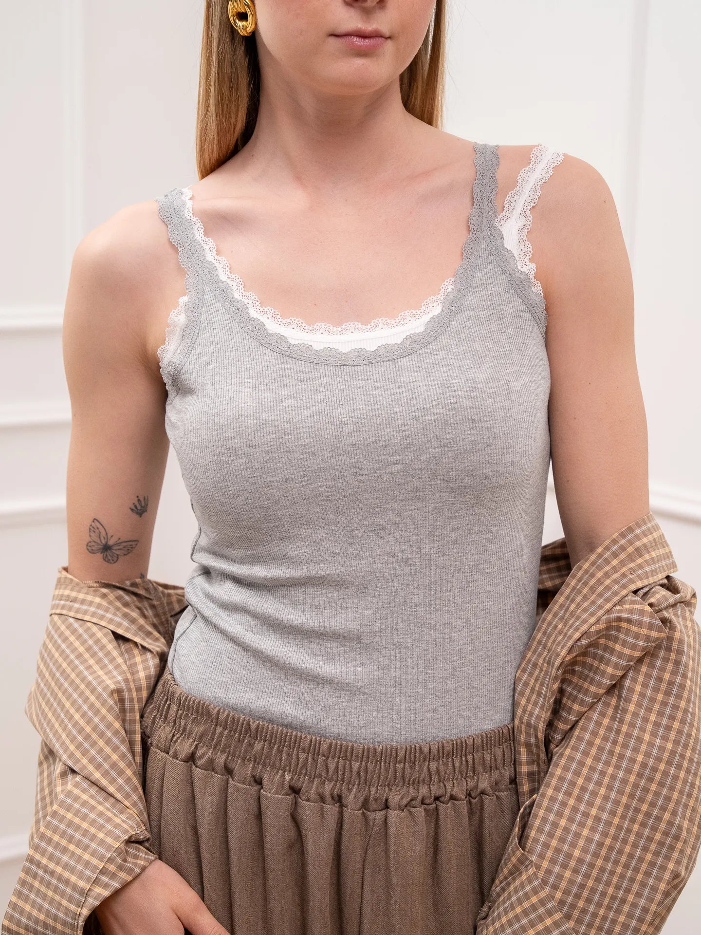 Canotta Brigitte 2in1 bianca e grigia - Crispy