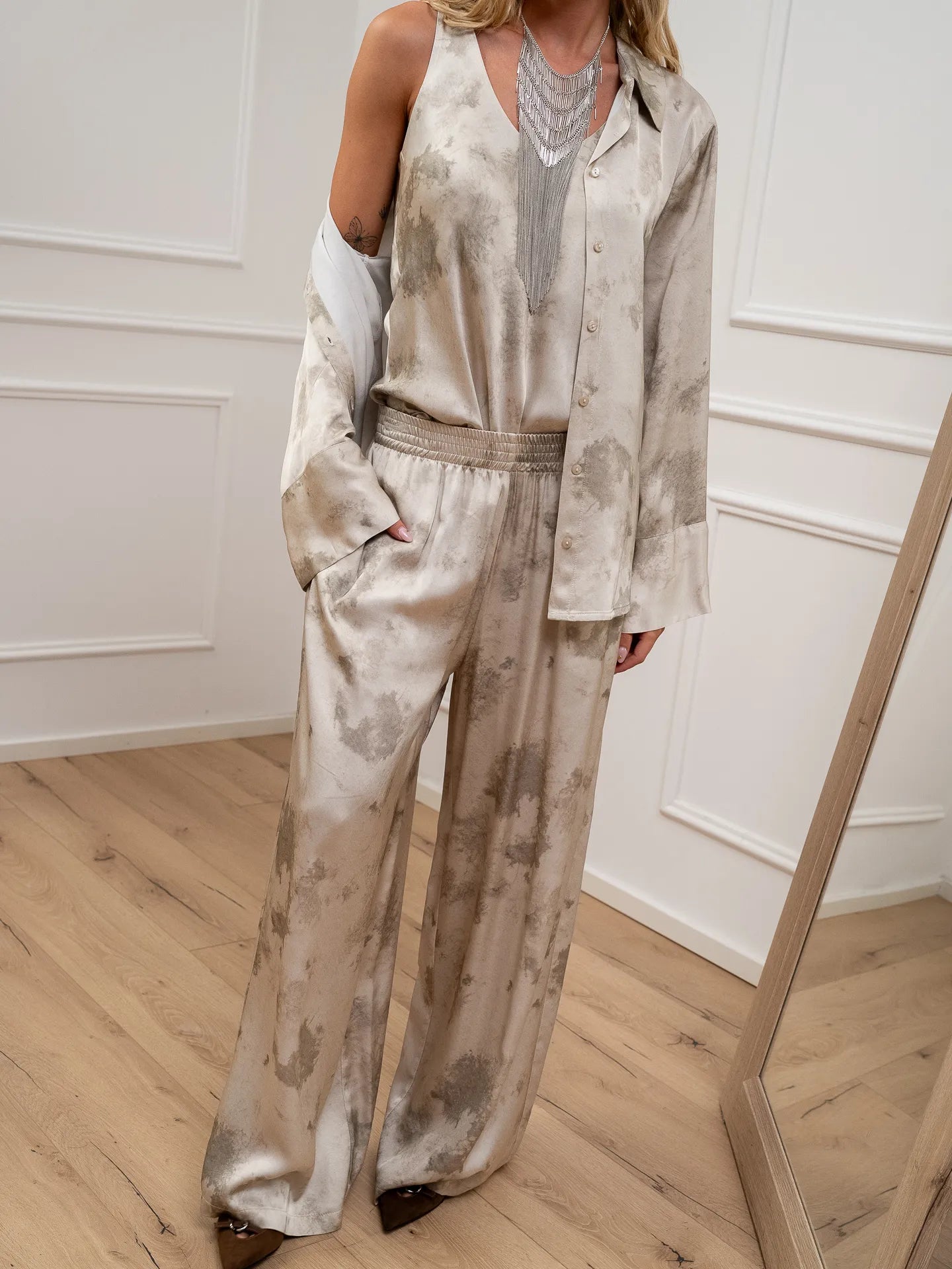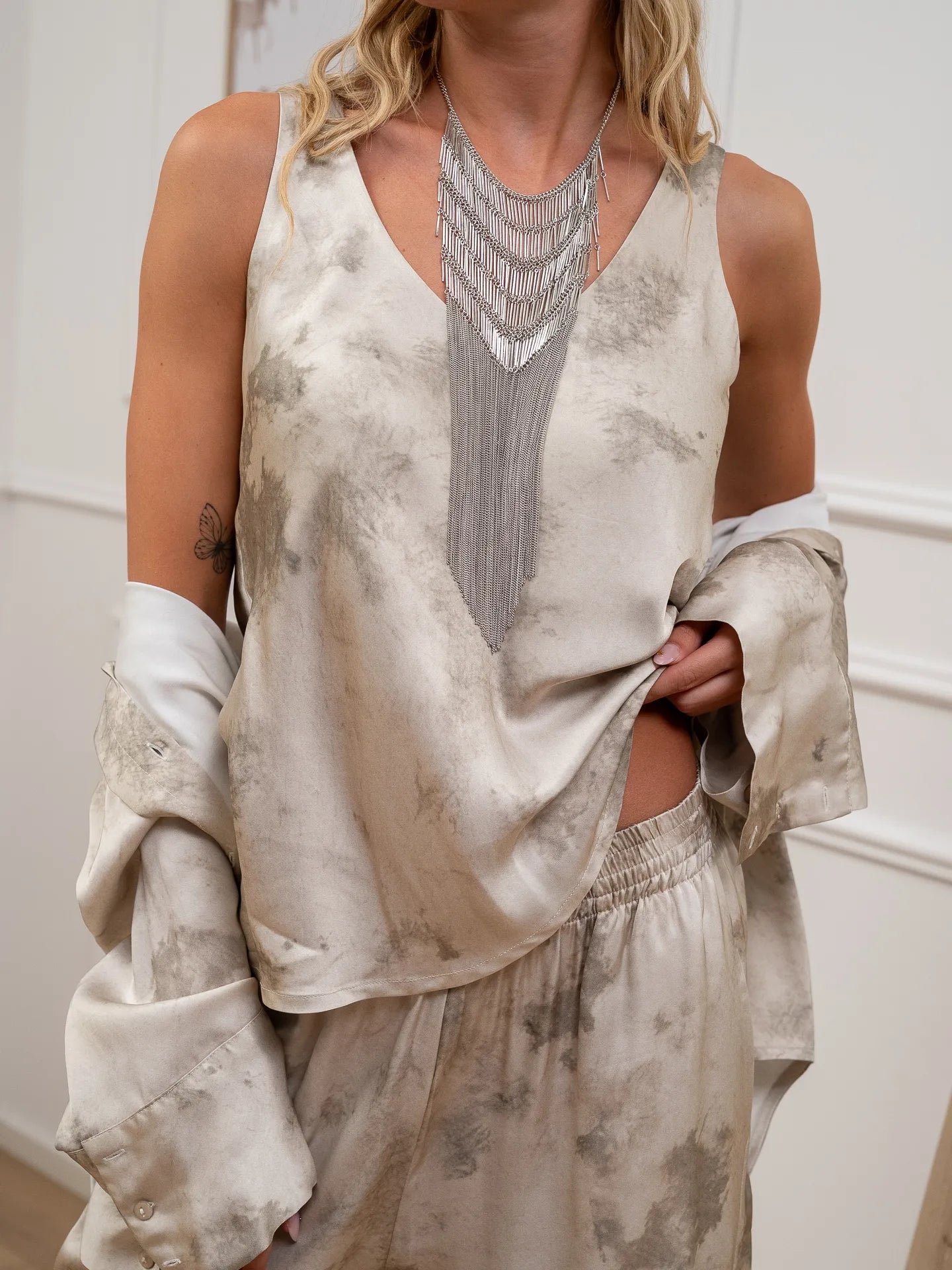 Canotta stampa effetto marmo in viscosa Vicolo. Modello fit regolare con scollo a v.