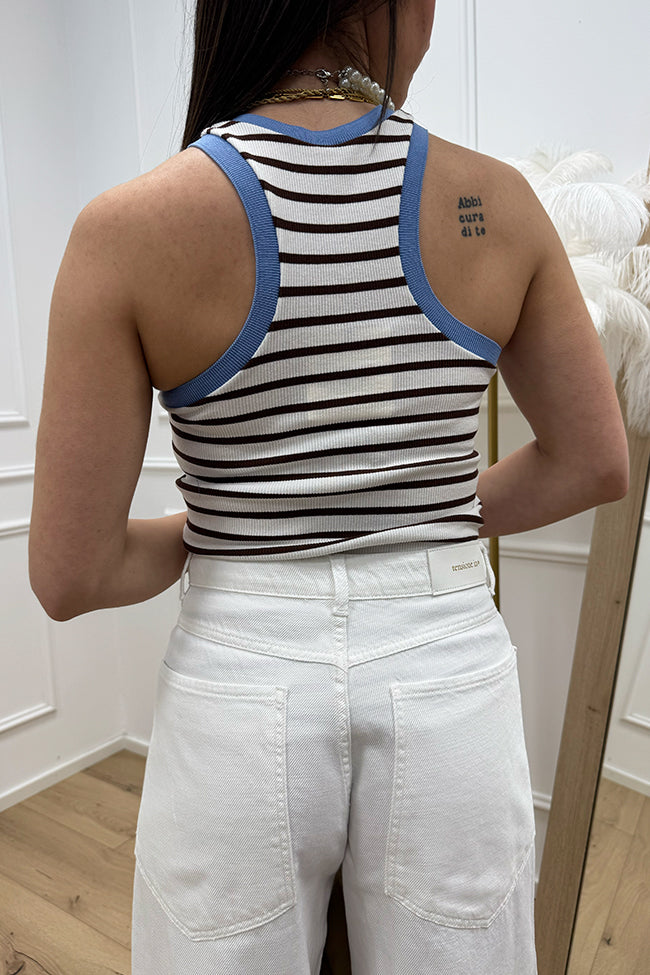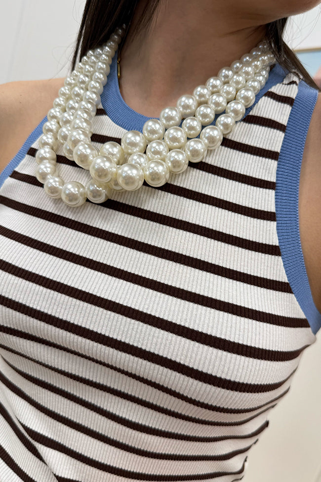 Canotta rigata moro e celeste con collana perle - Tensione In