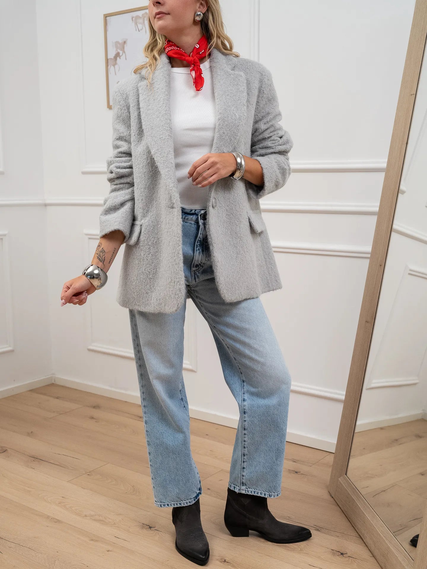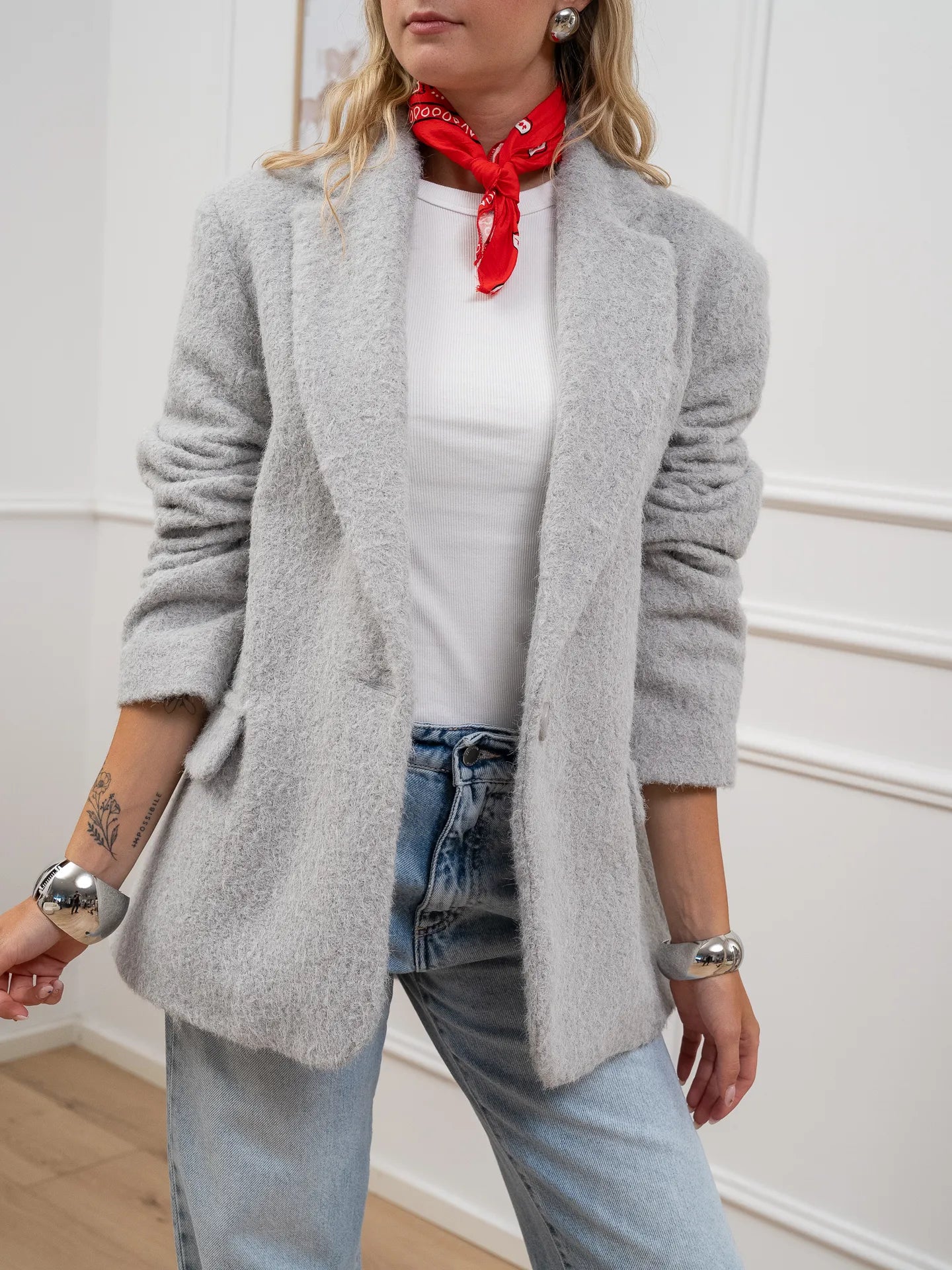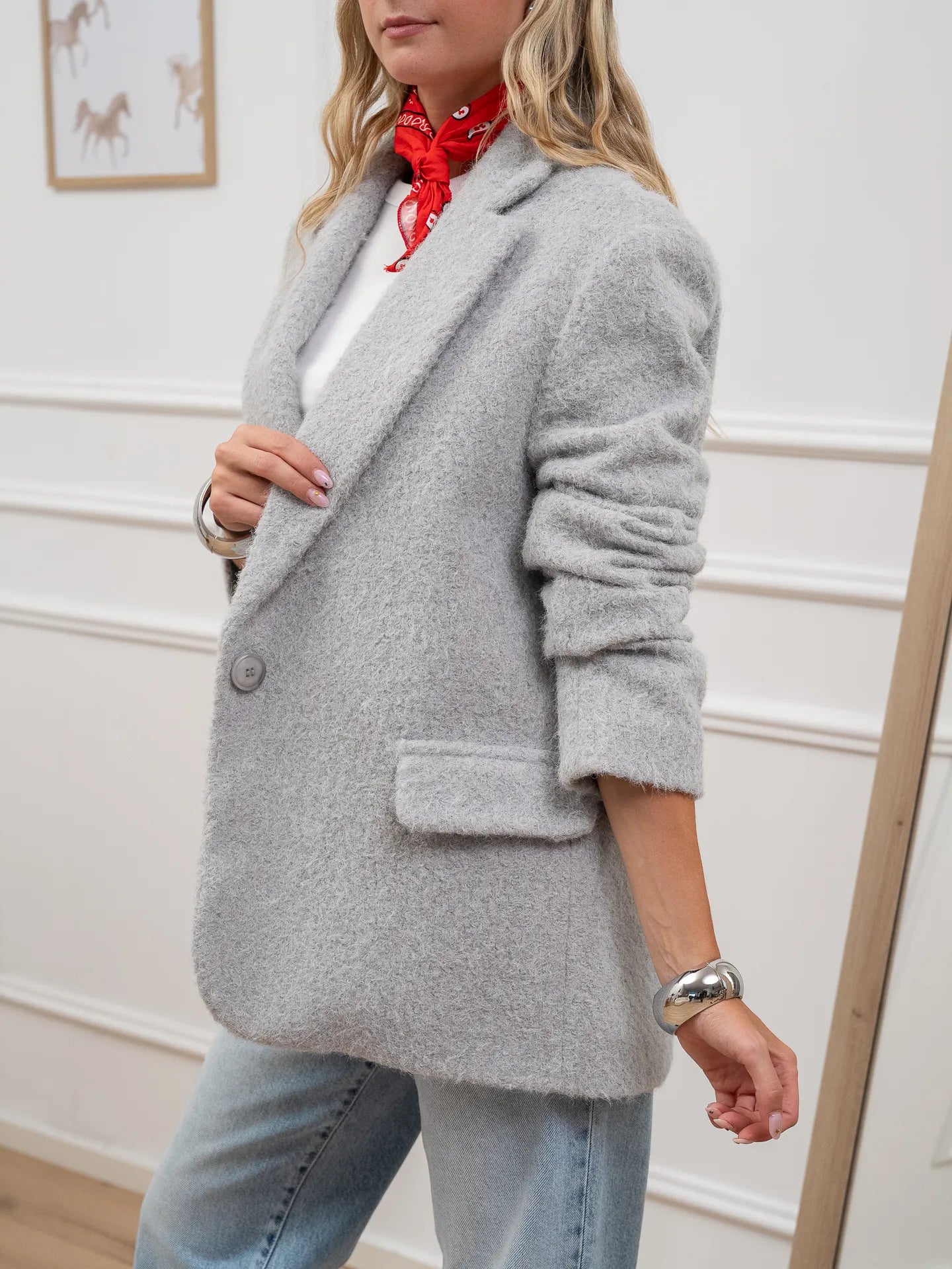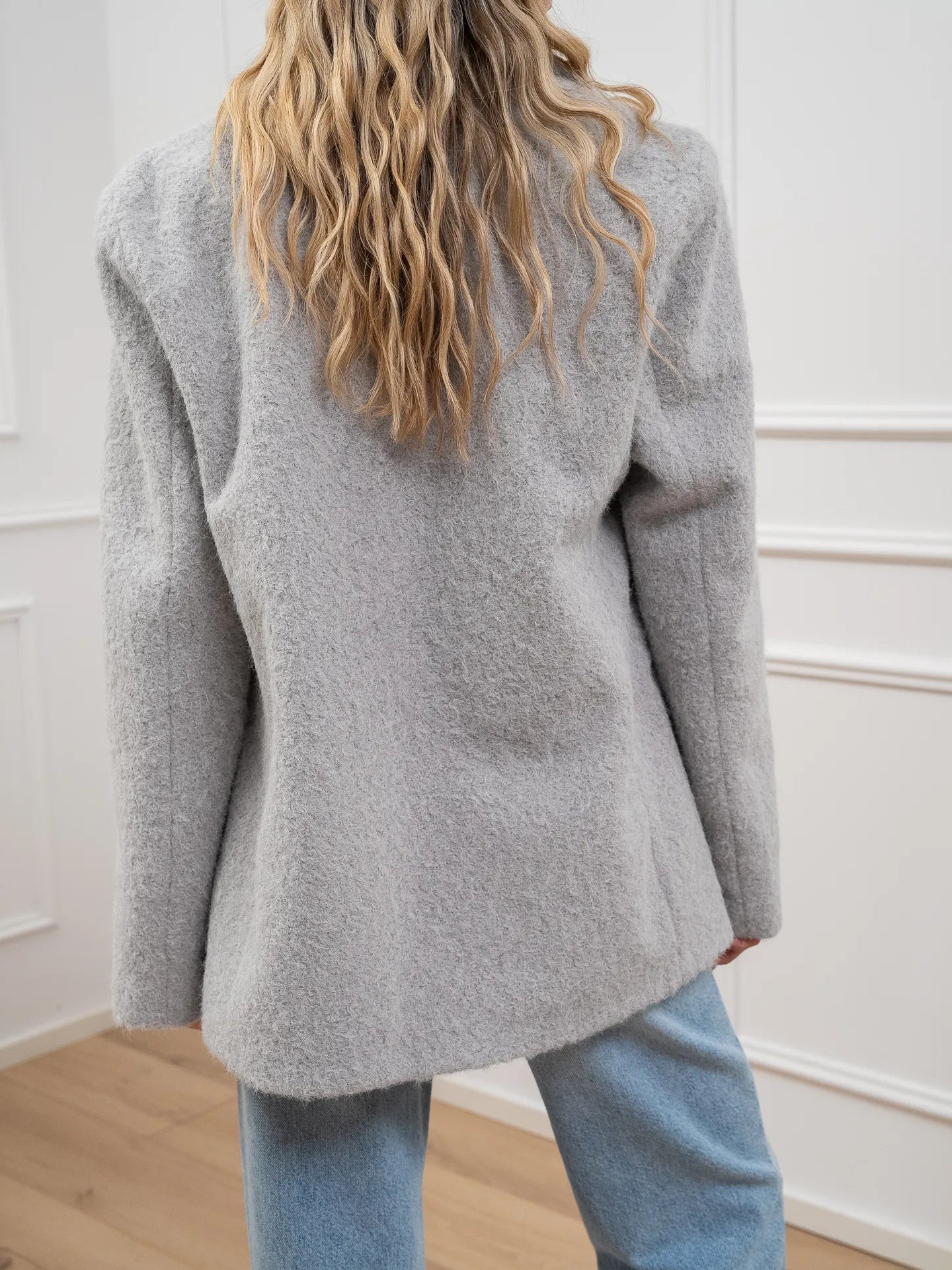 Cappotto color grigio HaveOne. Modello fit oversize con collo revers e chiusura frontale monopetto. Finte tasche con patta.