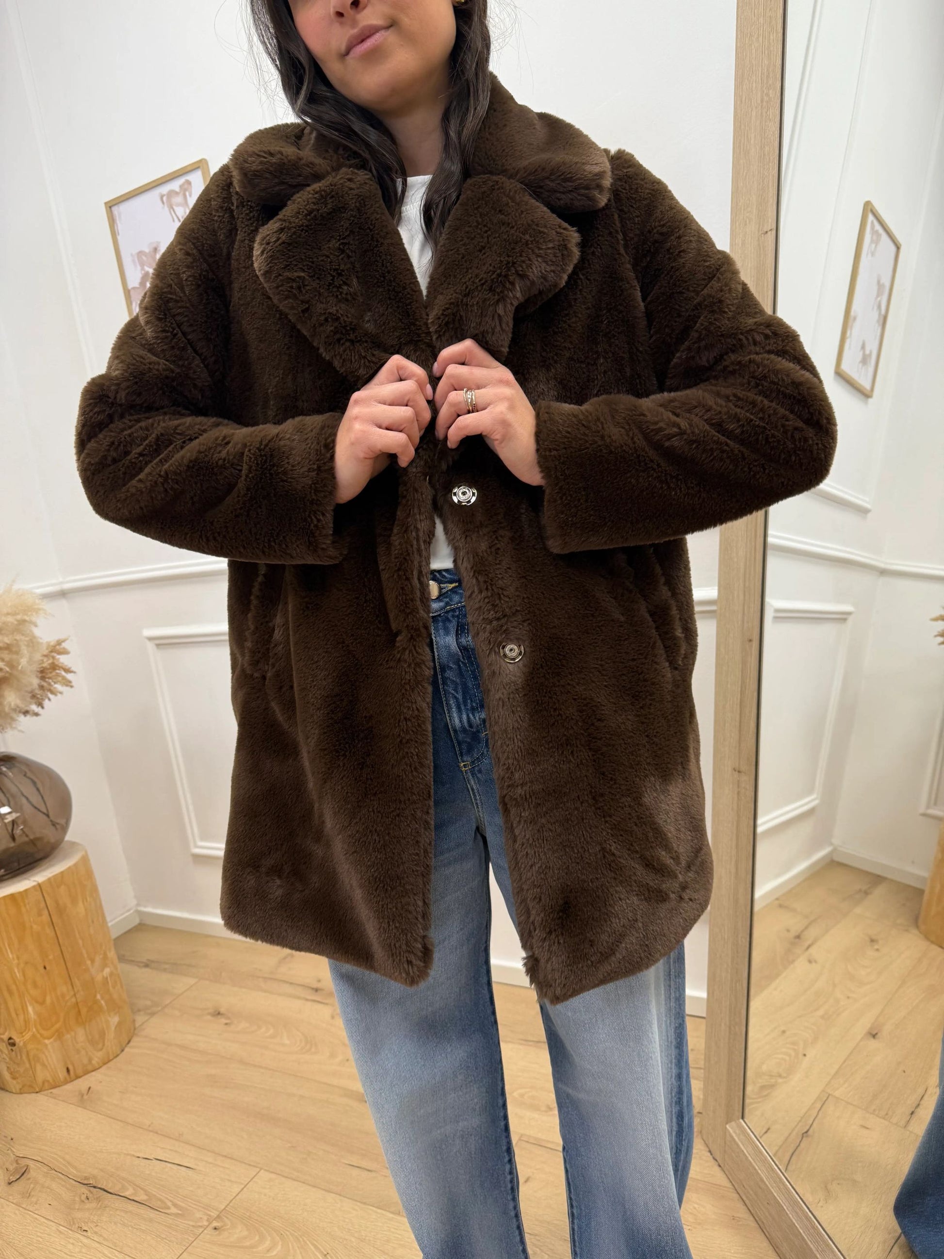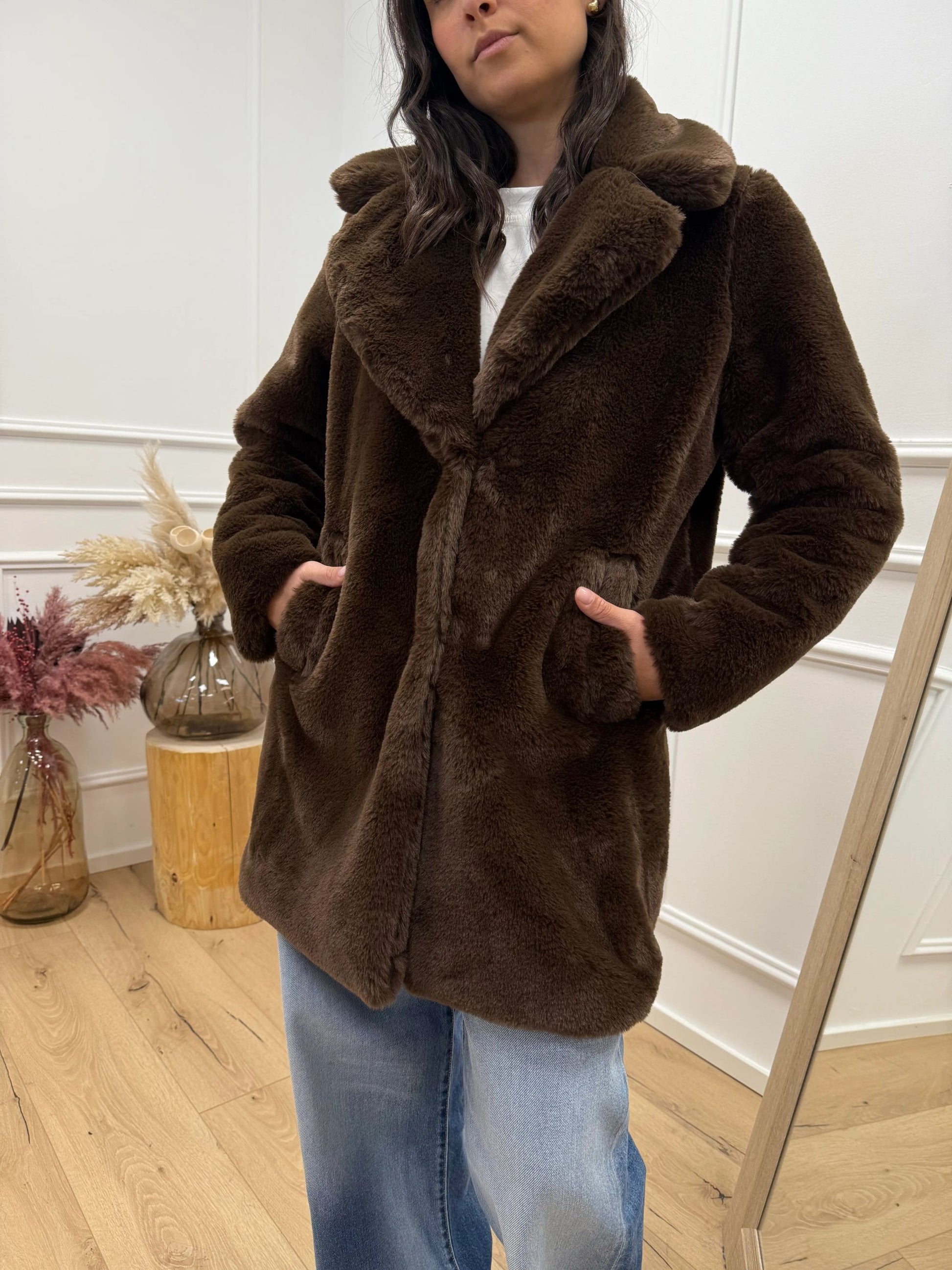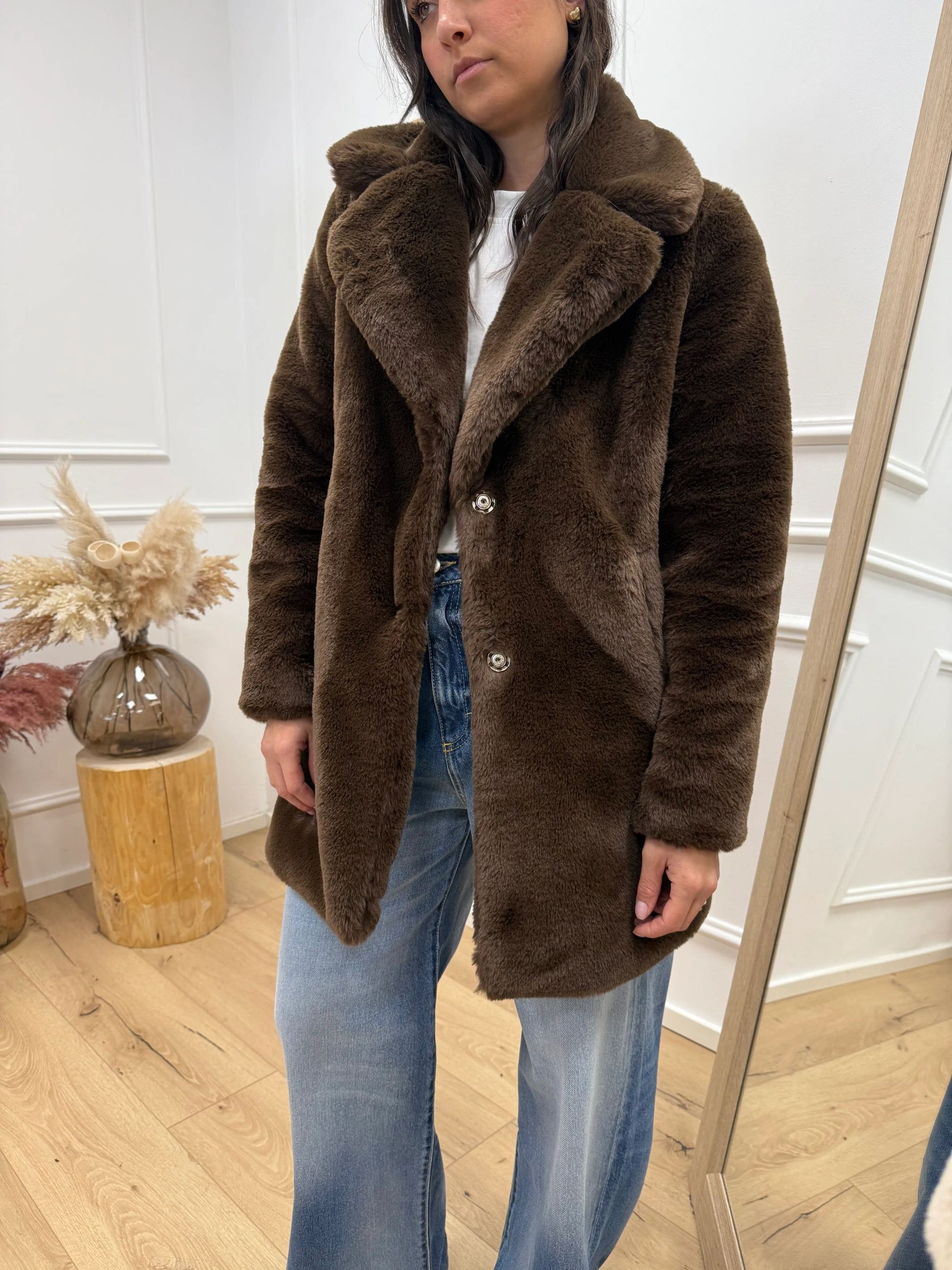 Cappotto pelliccia moro maxi collo revers - HaveOne