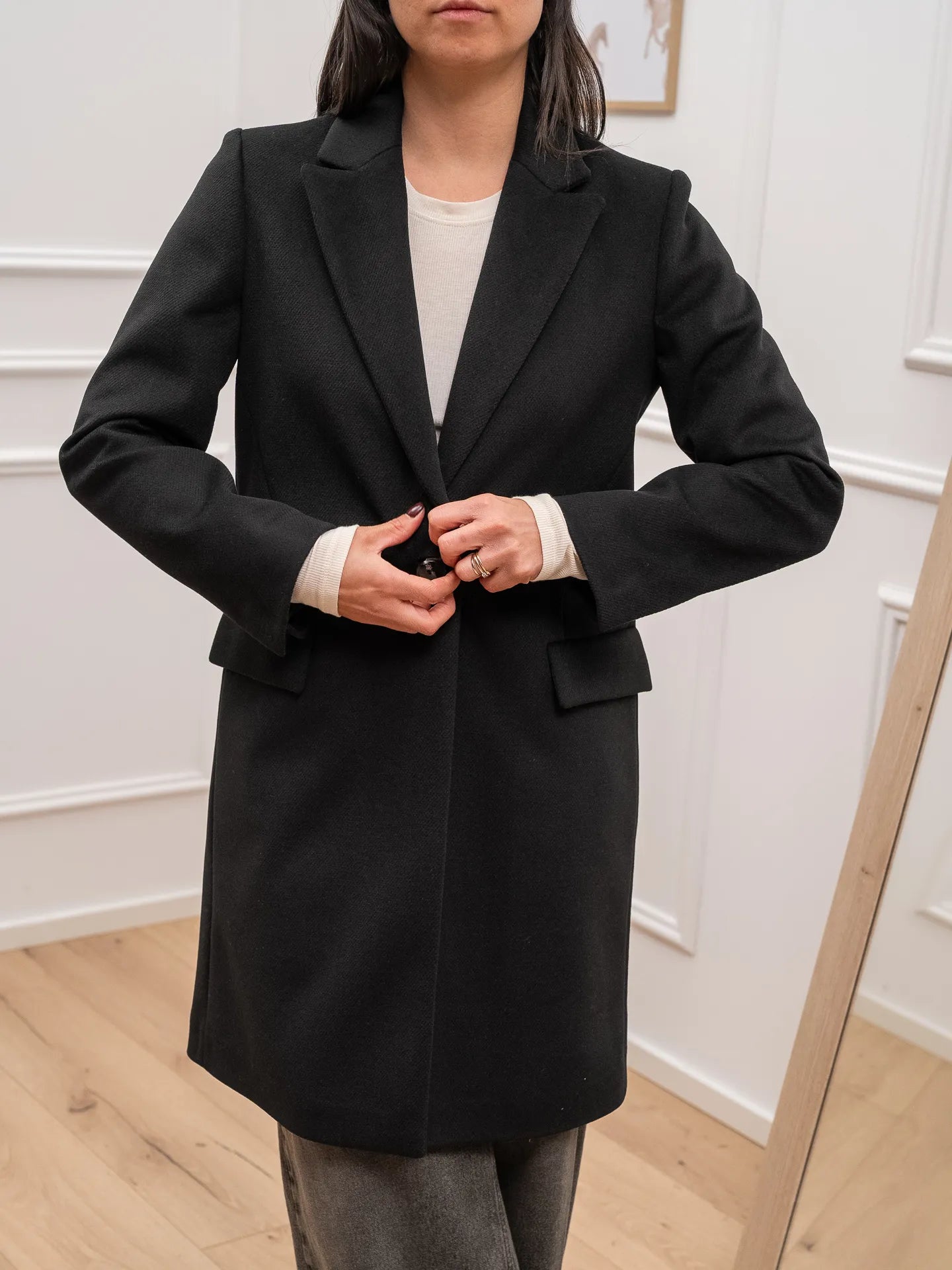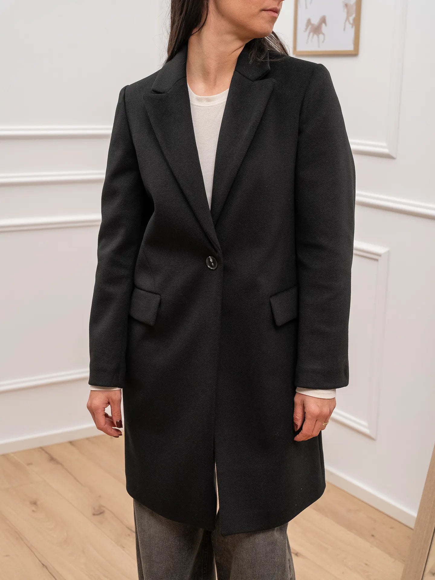 Cappotto slim fit nero ad un bottone, modello con tasche orizzontali a patta dal fit asciutto. Brand: Dixie