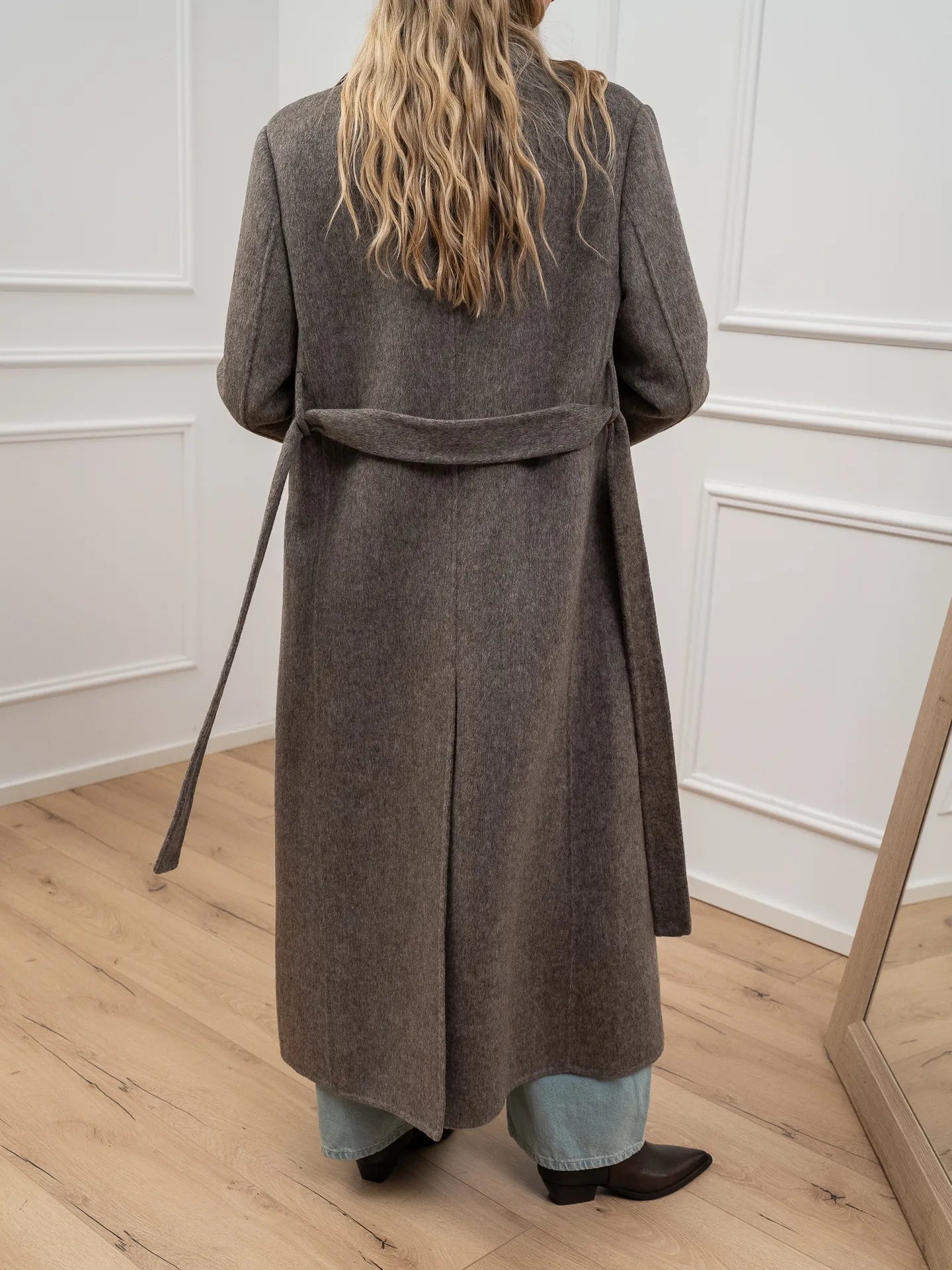 Cappotto strutturato fango mélange con cintura - HaveOne