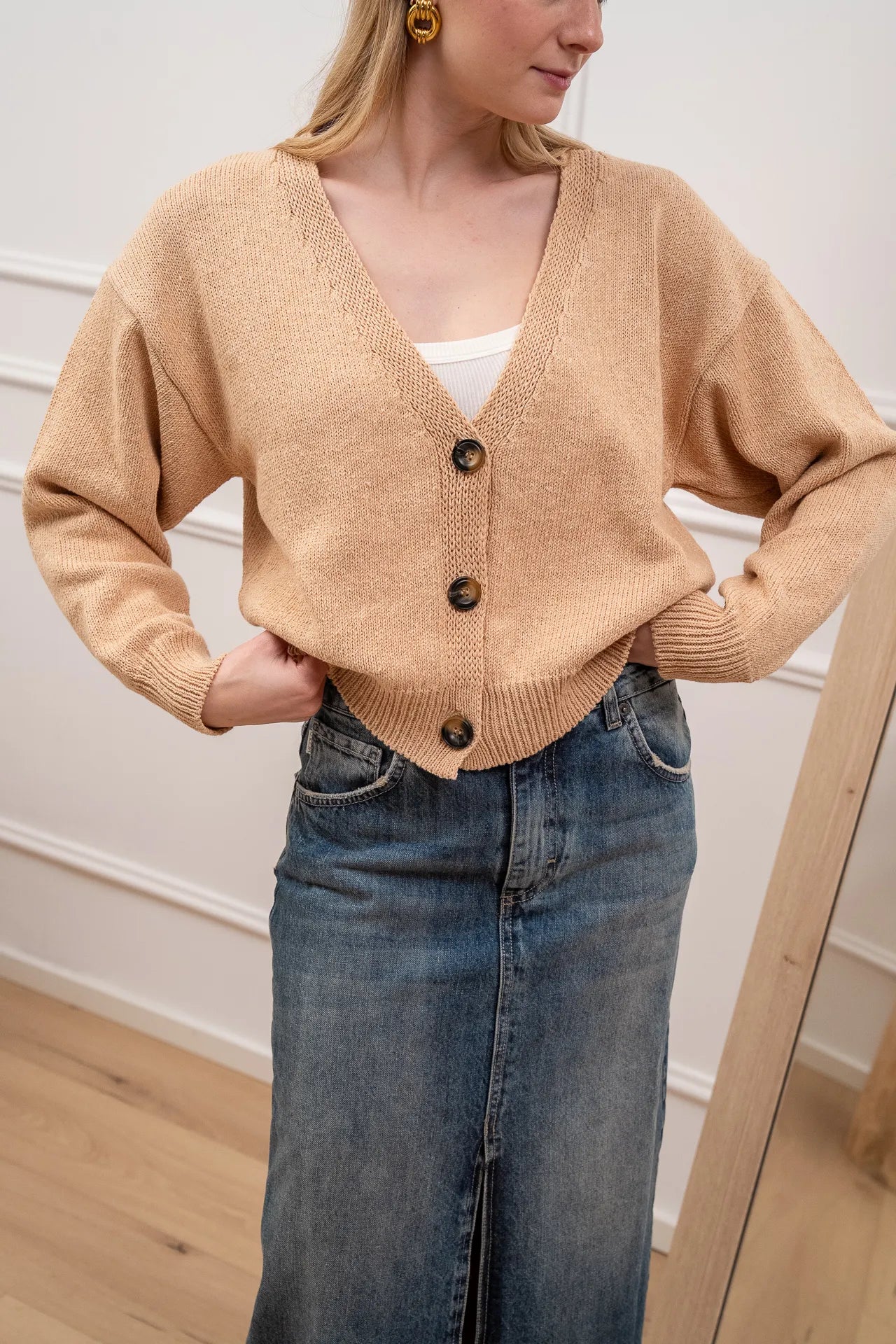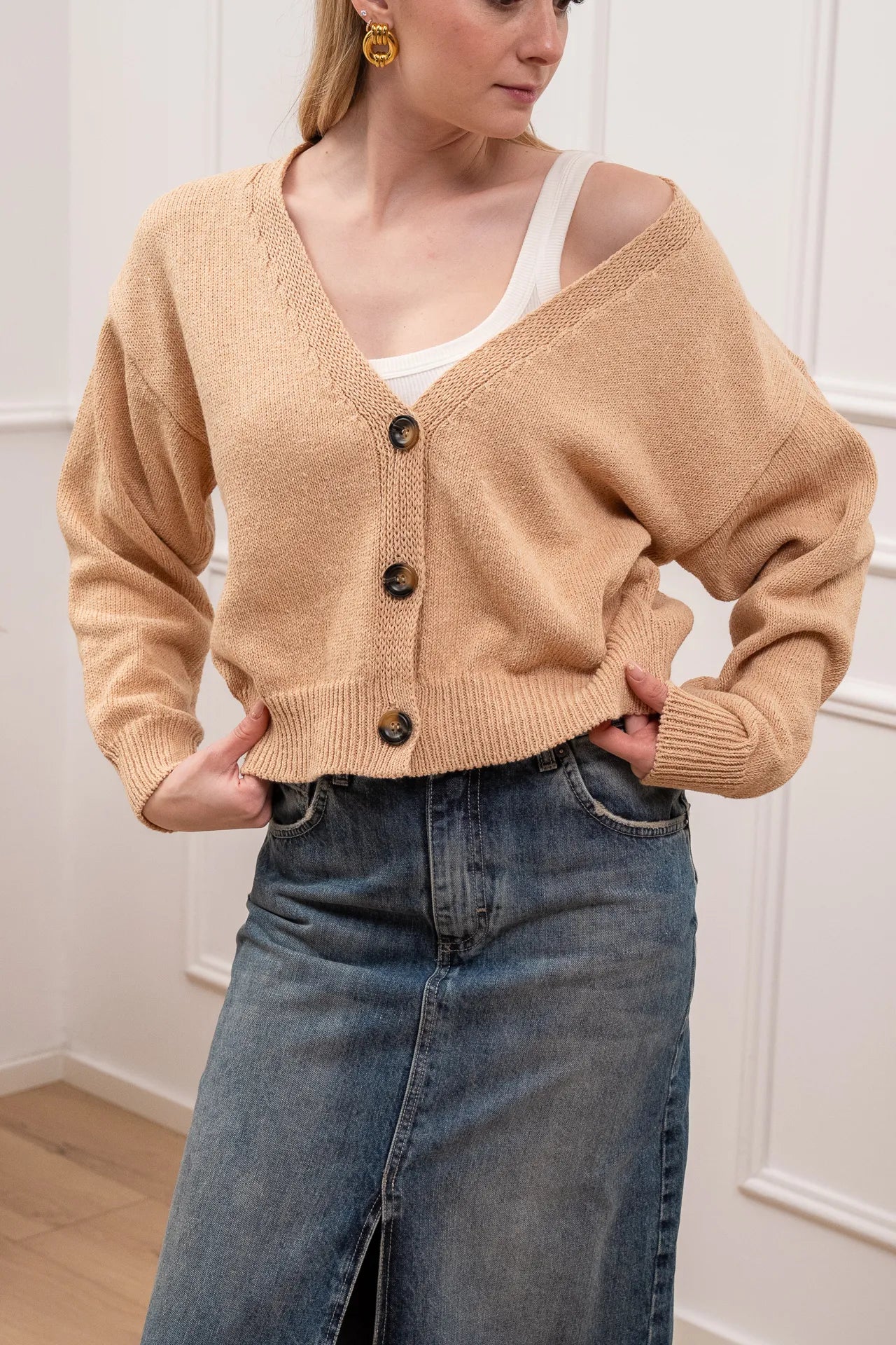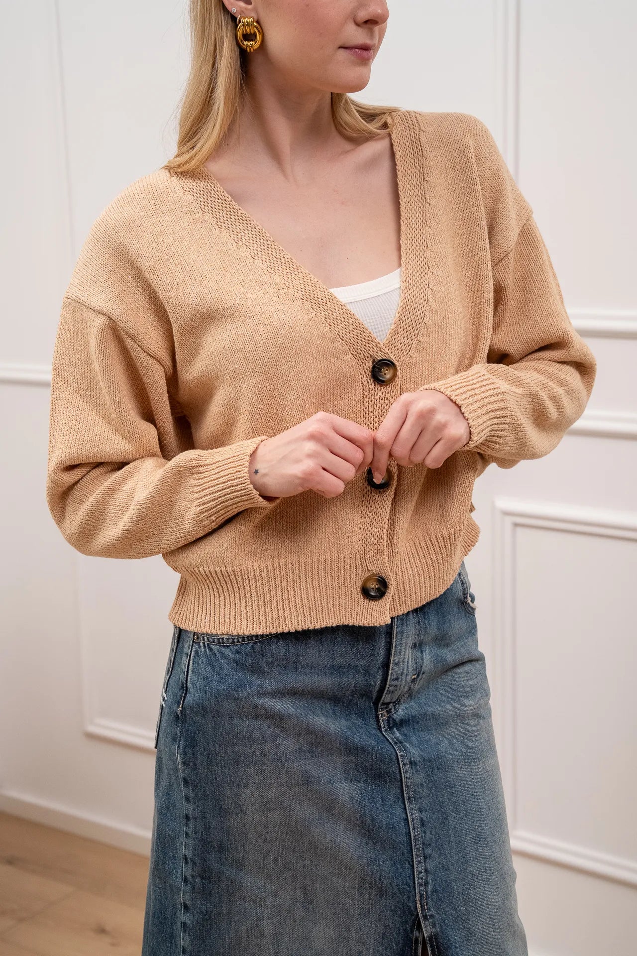 Cardigan basic beige tre bottoni - Vicolo