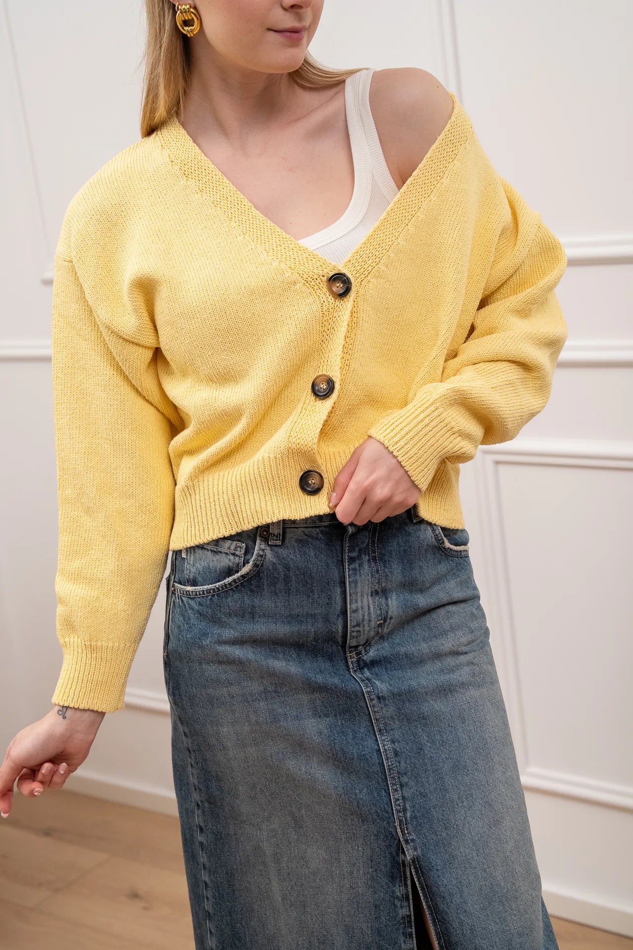 Cardigan basic giallo tre bottoni - Vicolo
