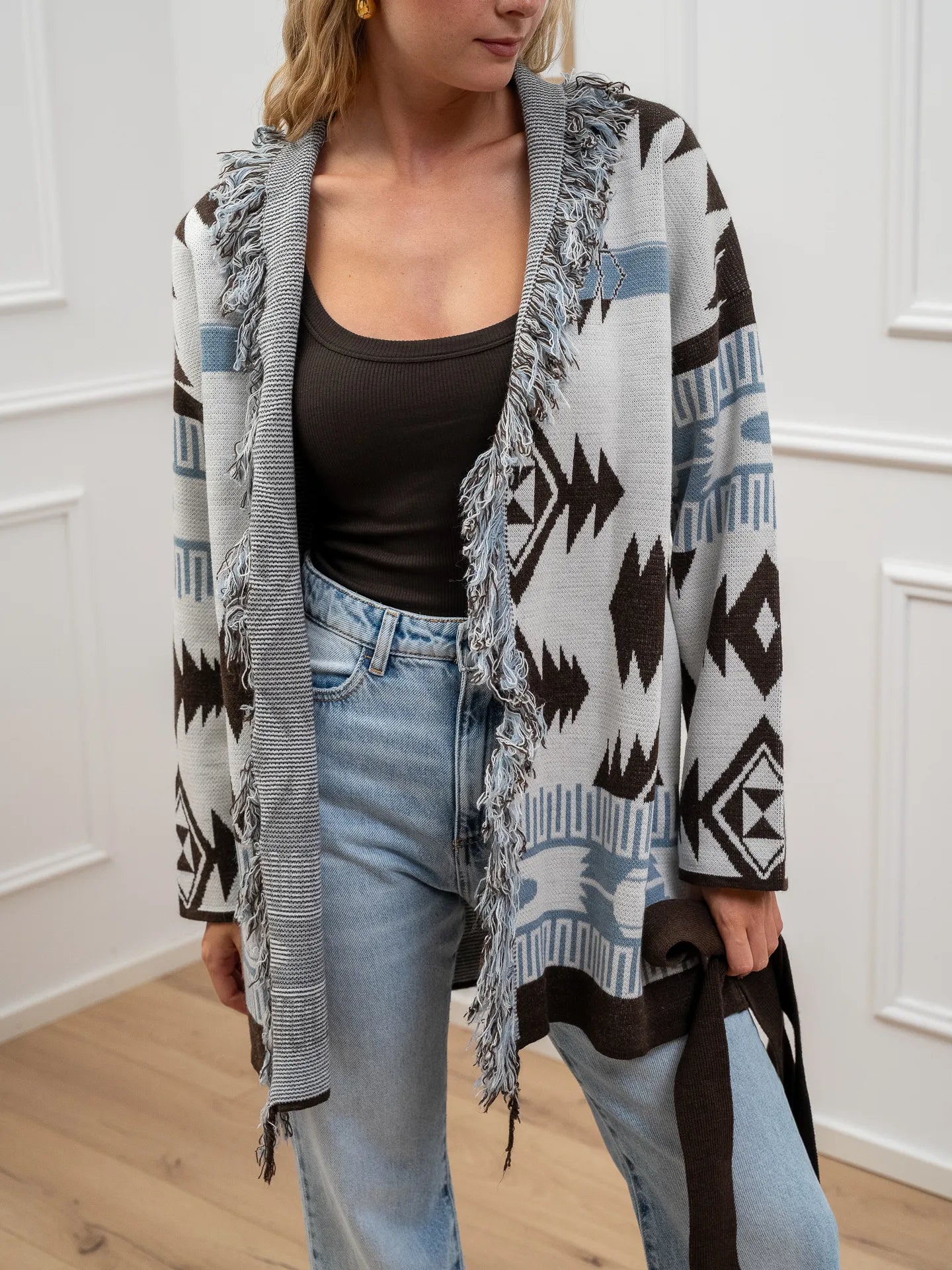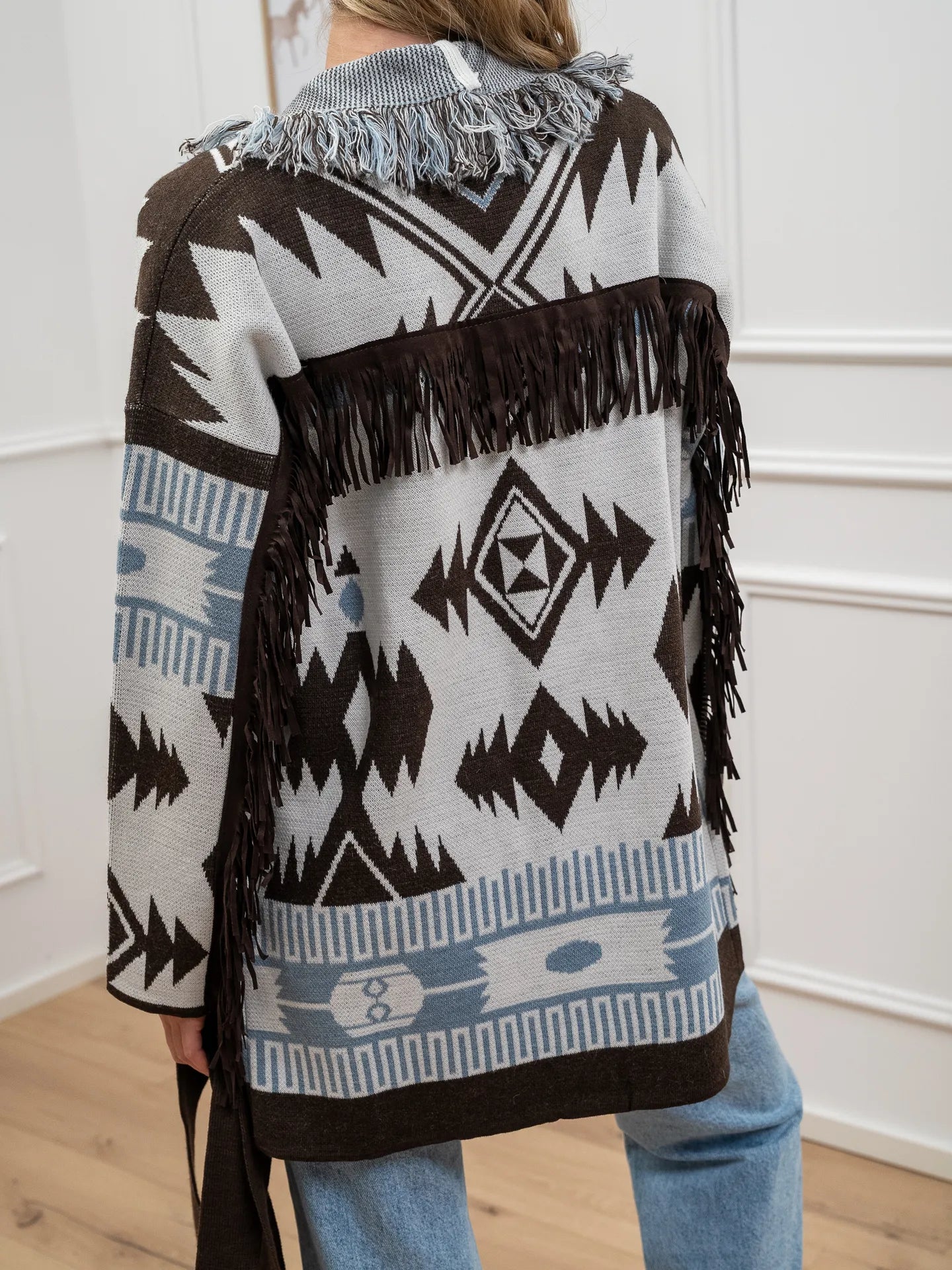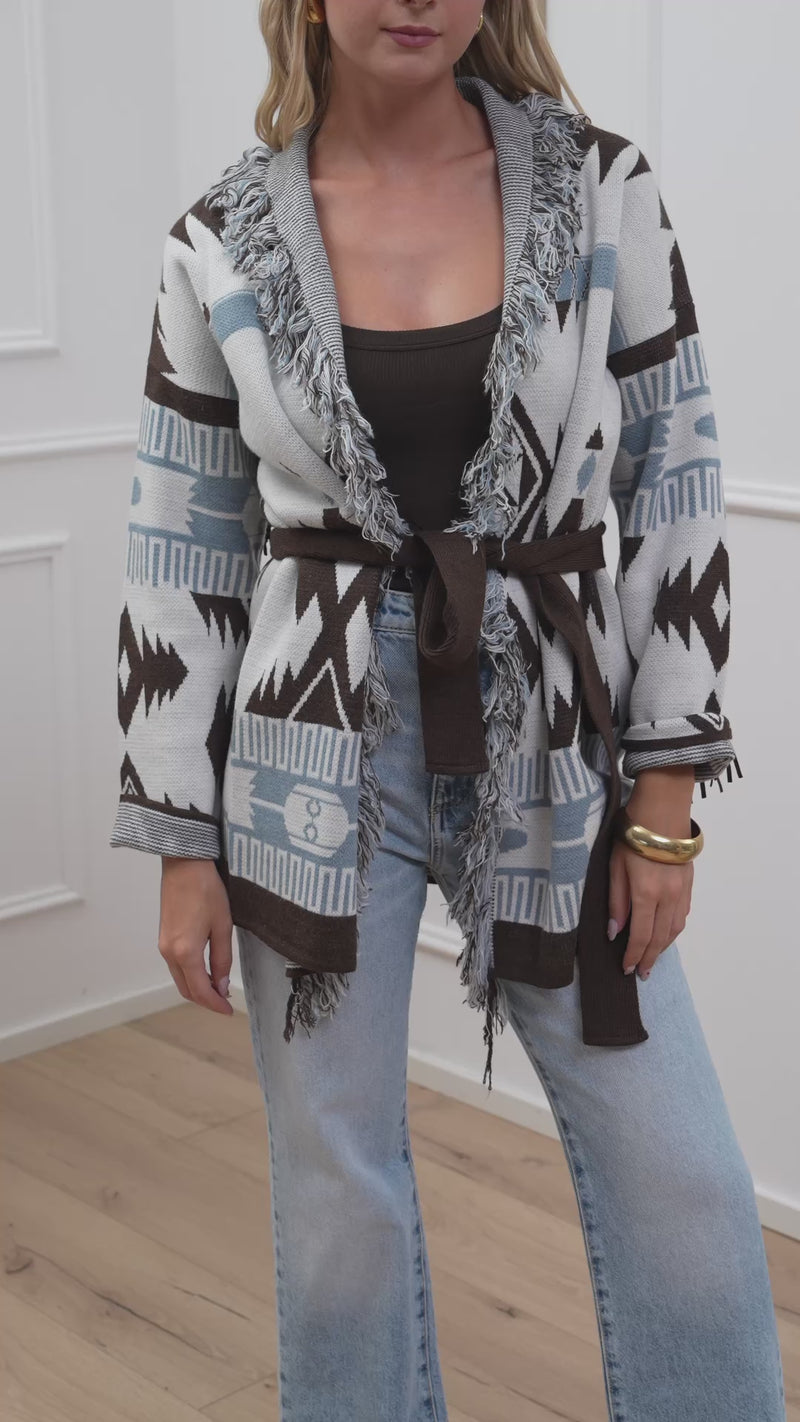 Cardigan carta zucchero e moka con frange - Vicolo