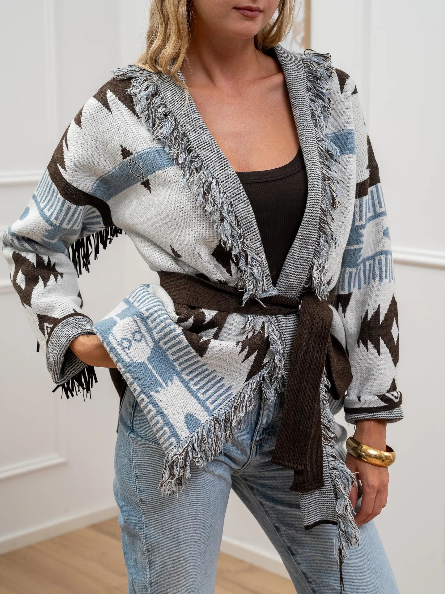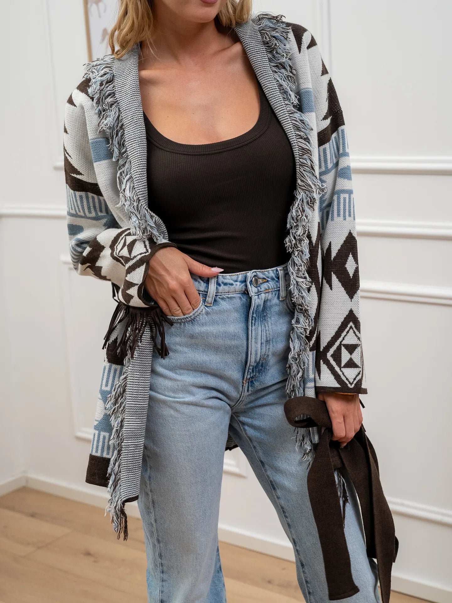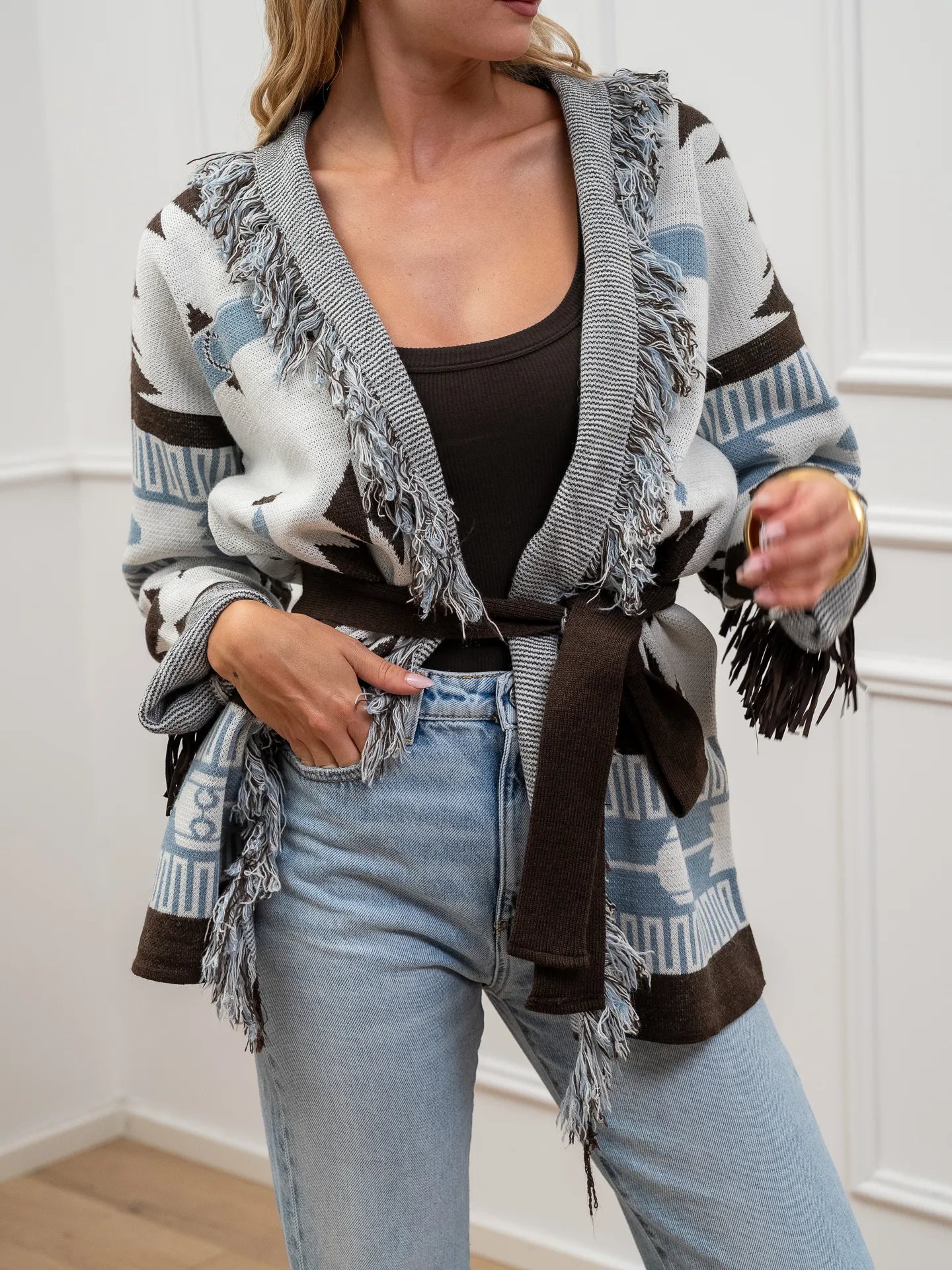 Cardigan carta zucchero e moka con frange - Vicolo