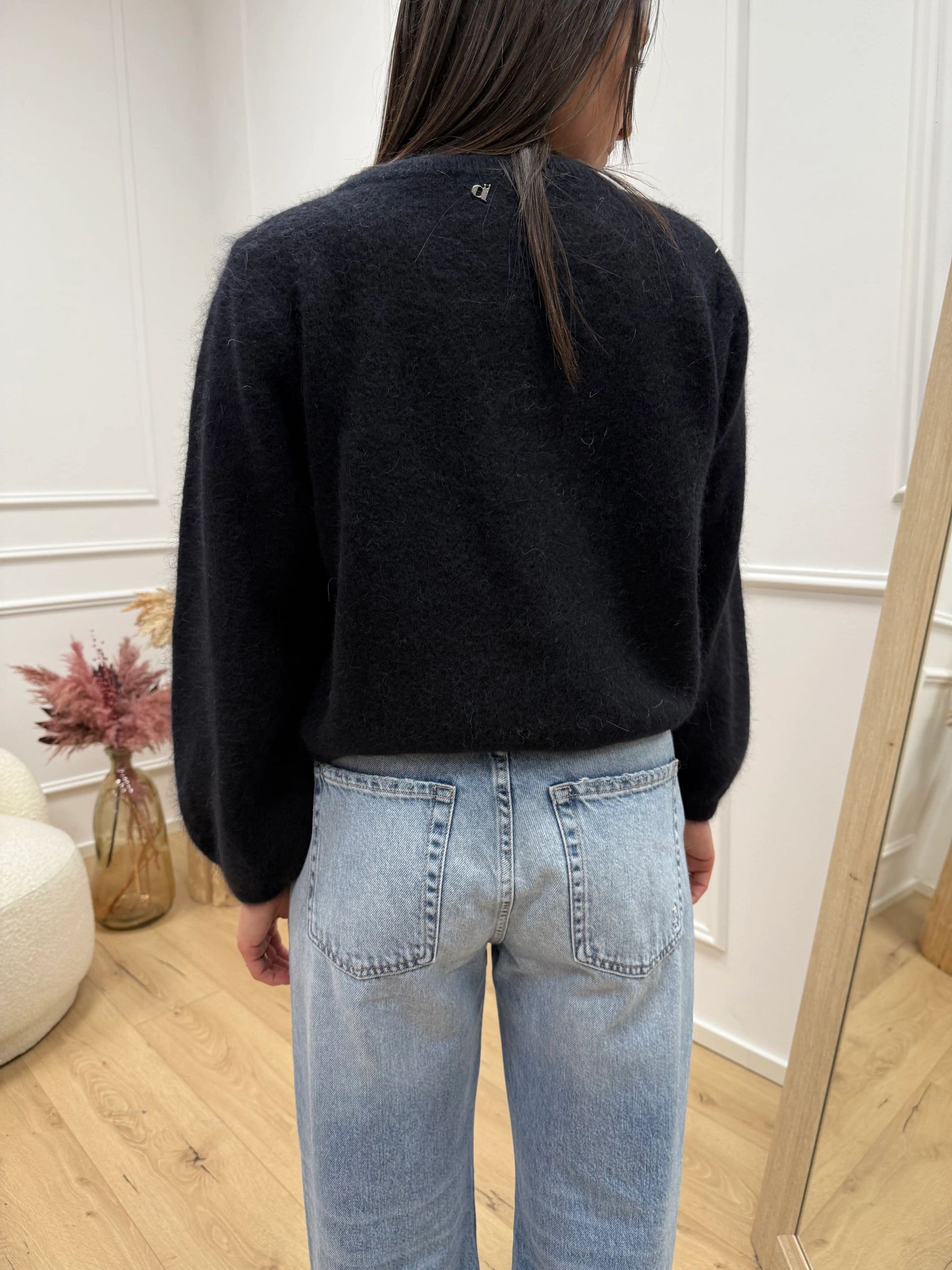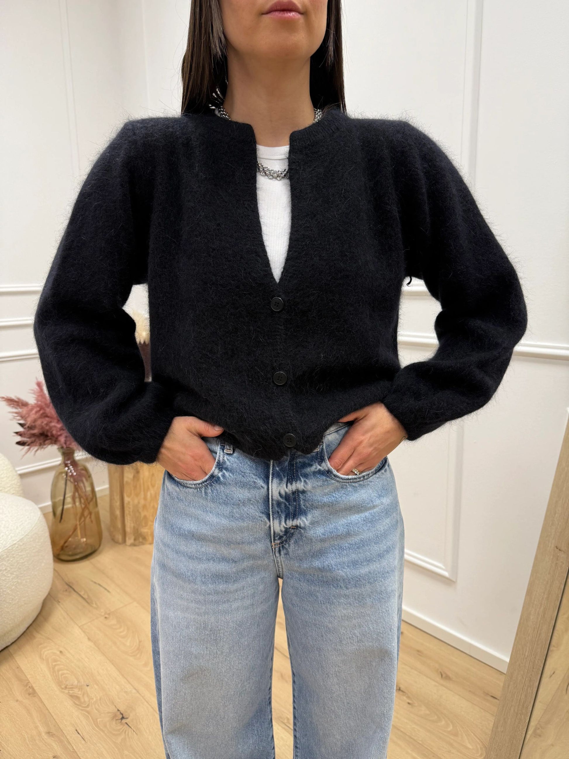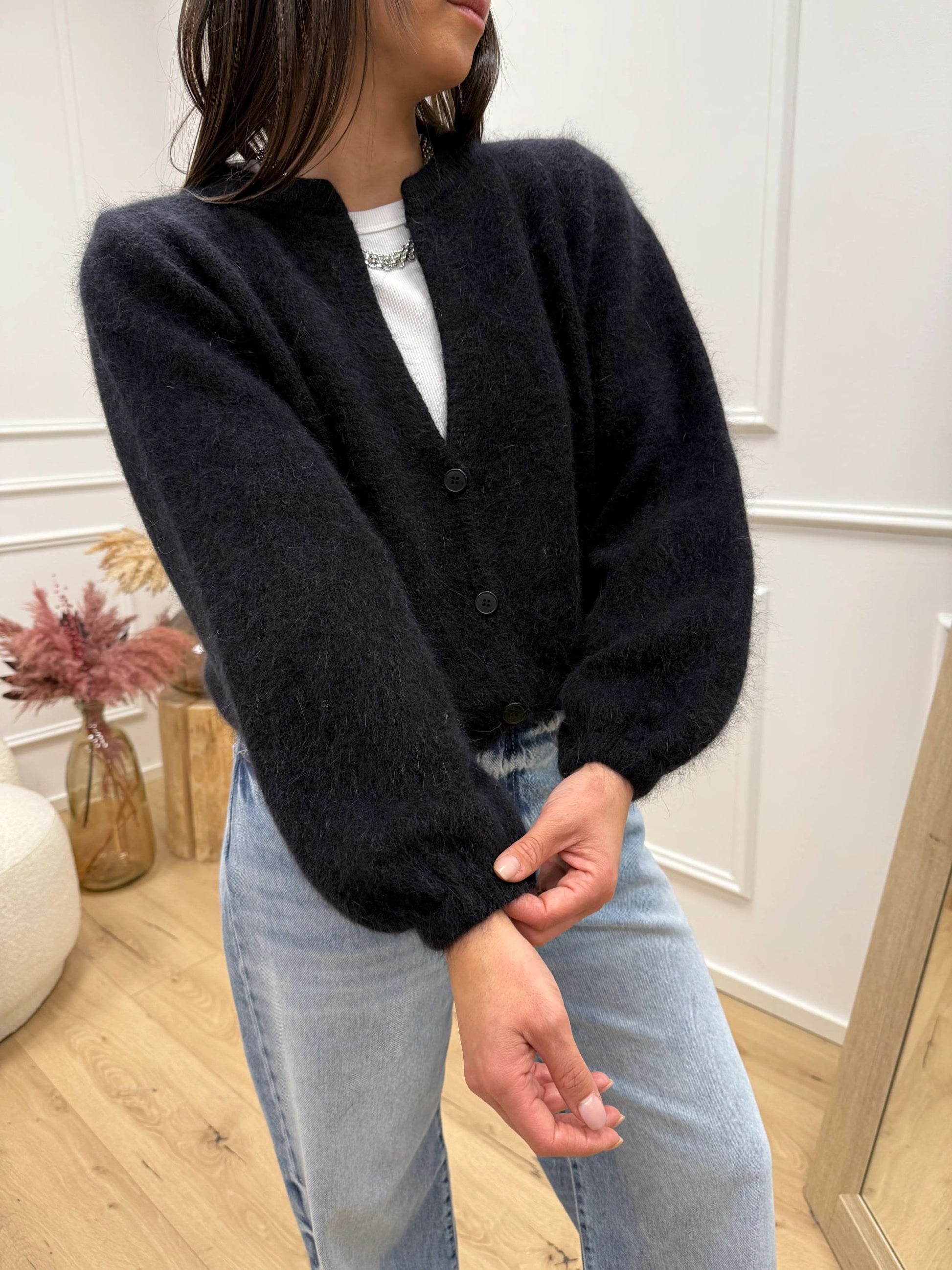 Cardigan misto angora nero con spalle imbottite - Dixie