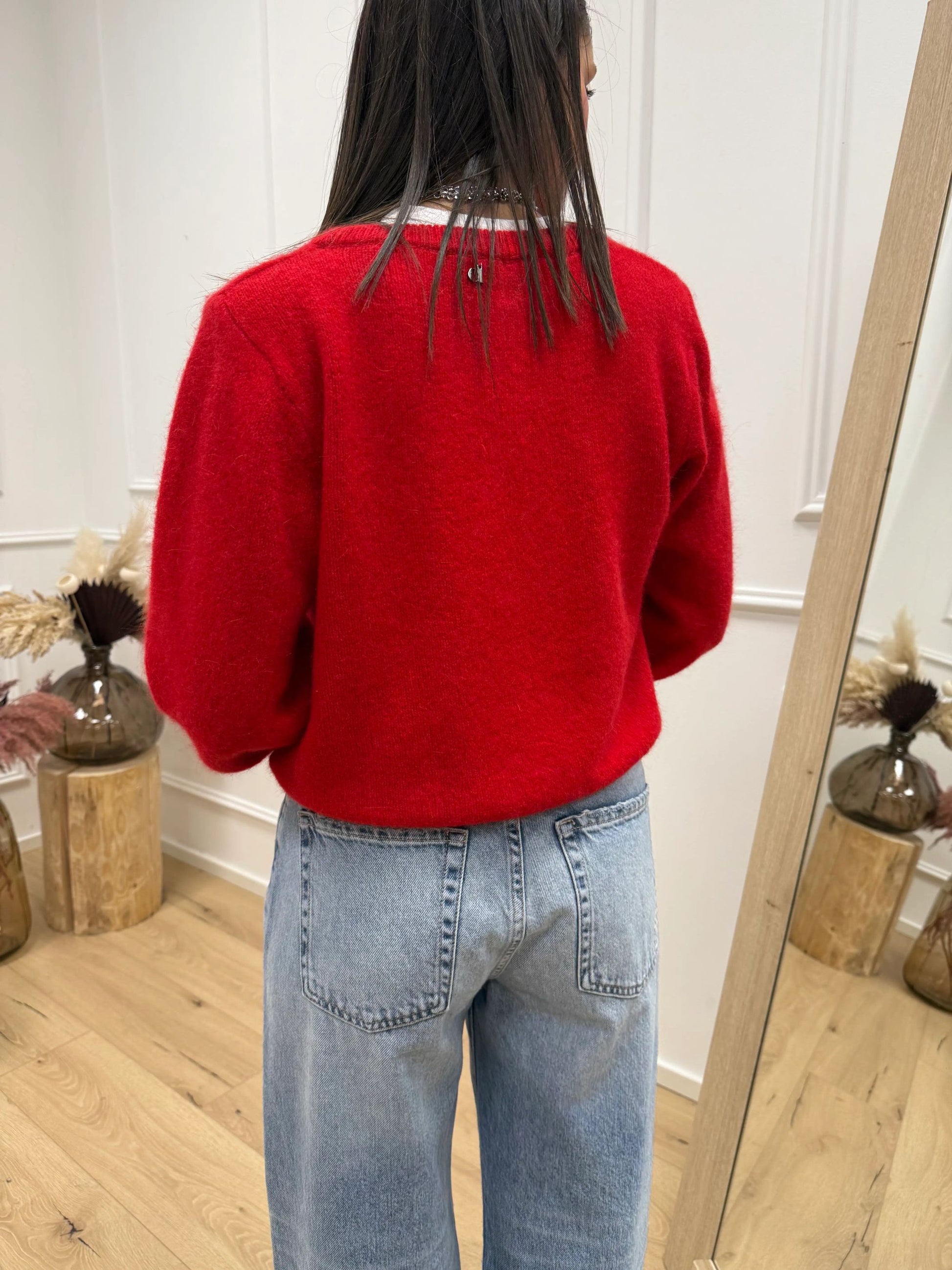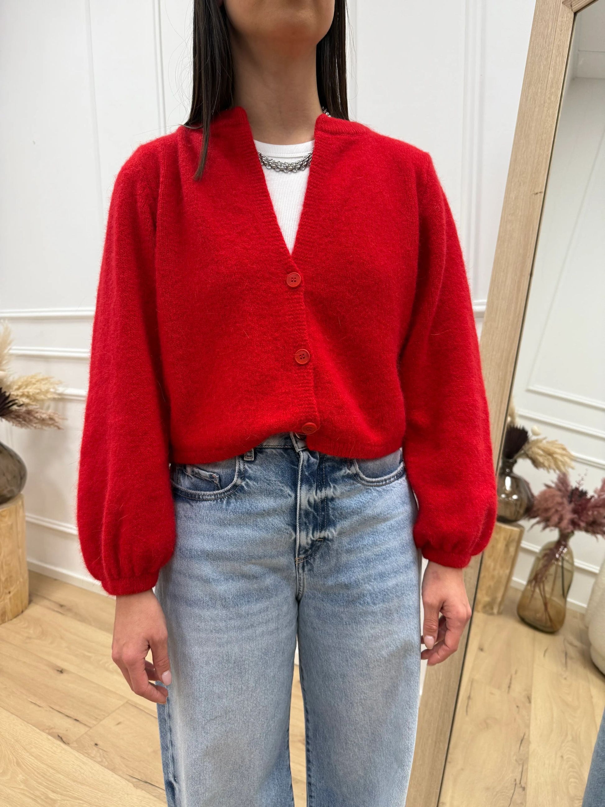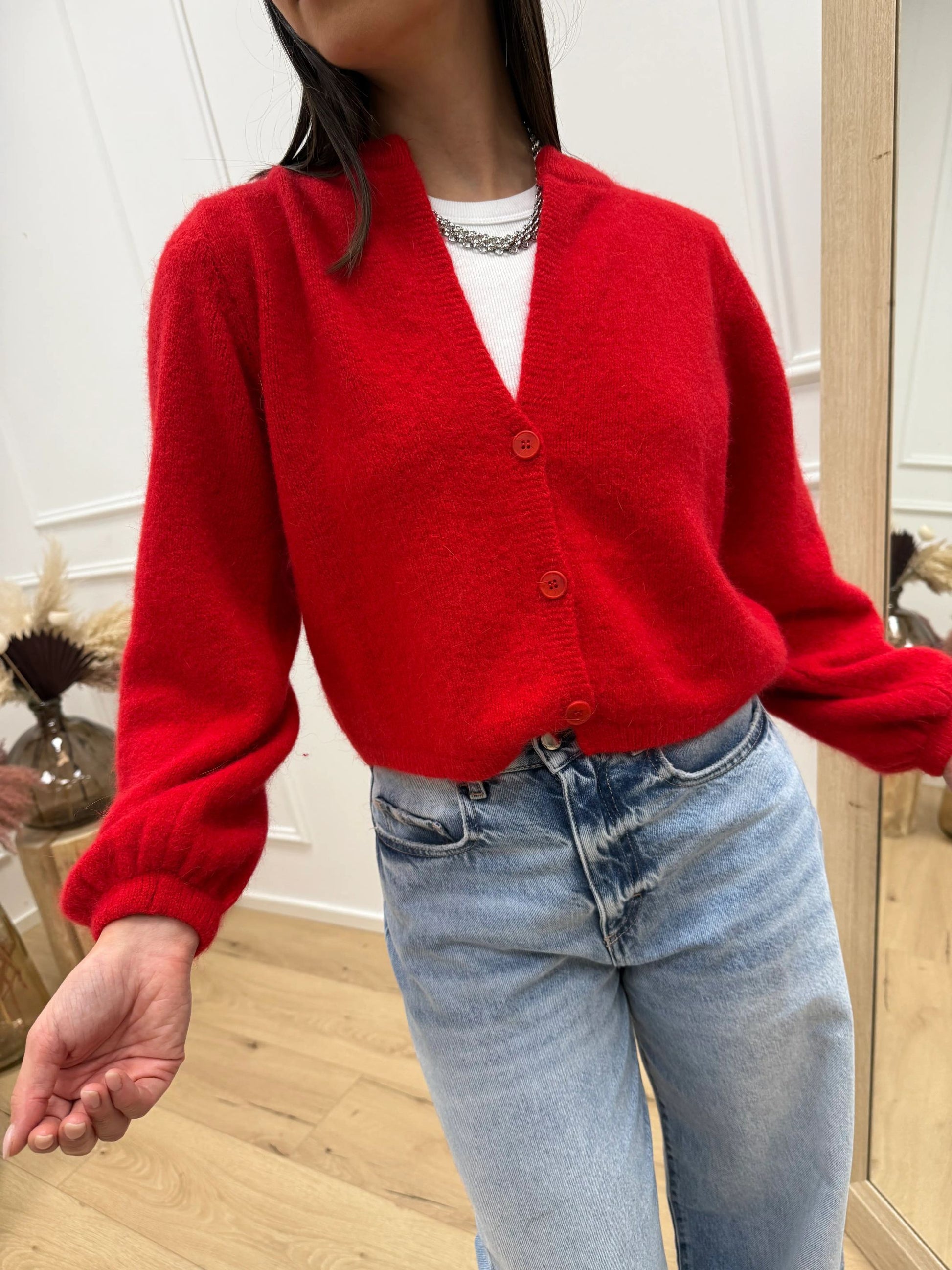 Cardigan misto angora rosso con spalle imbottite - Dixie