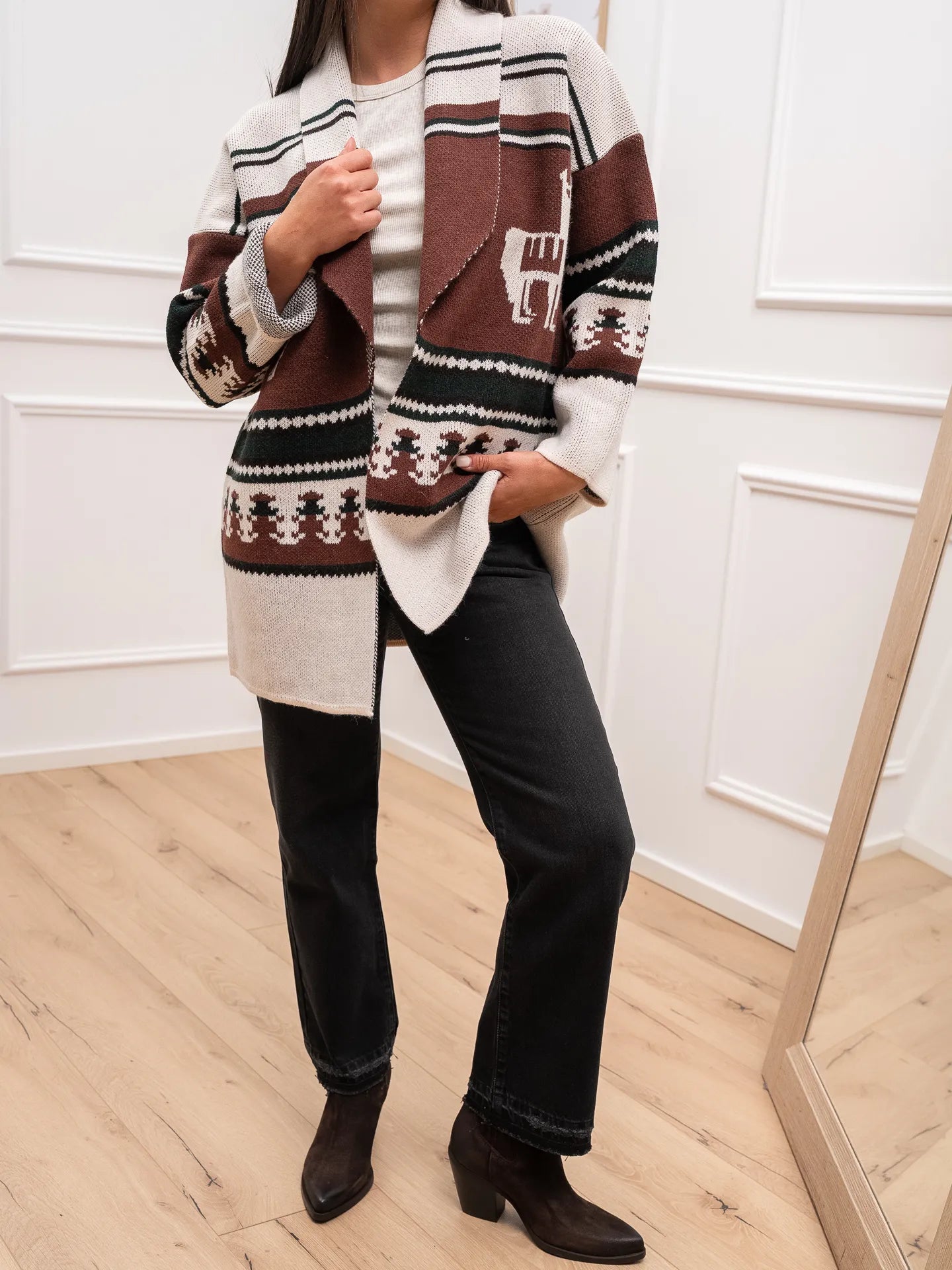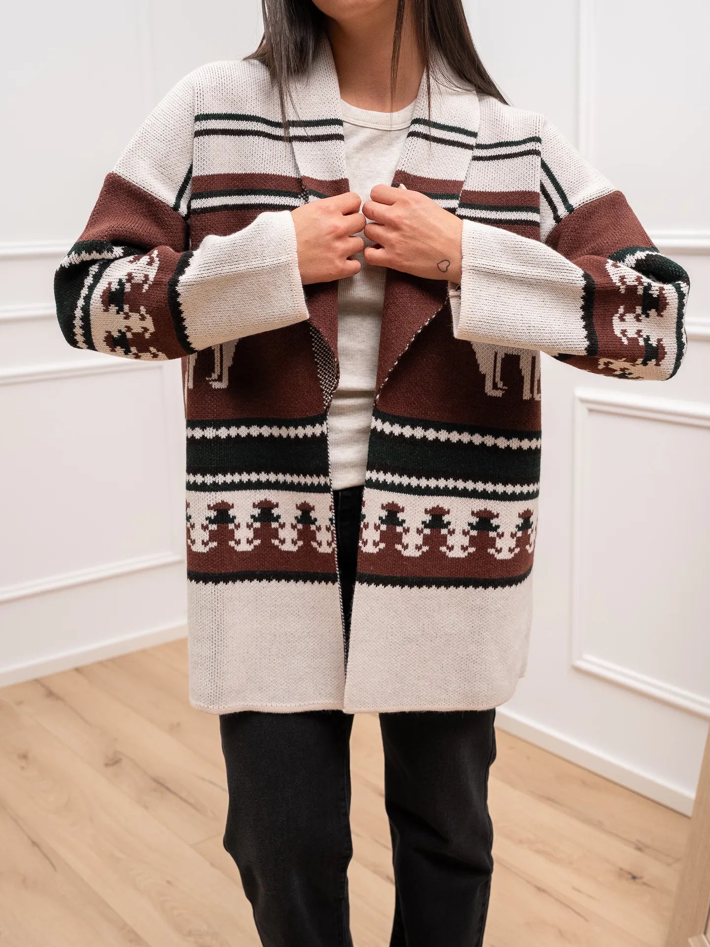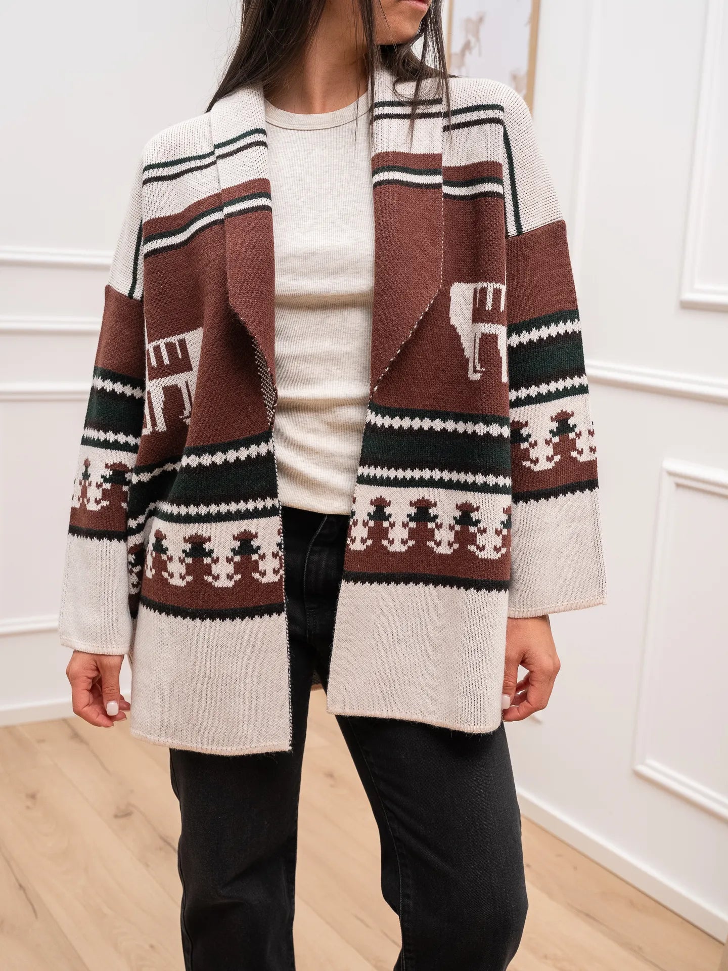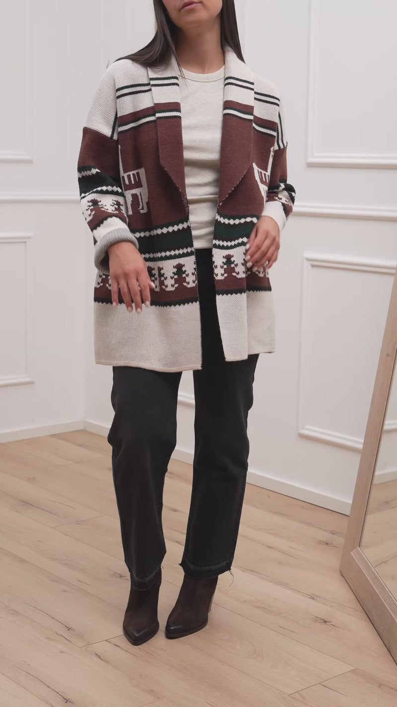 Cardigan Montana burro, bosco, gianduia - Vicolo