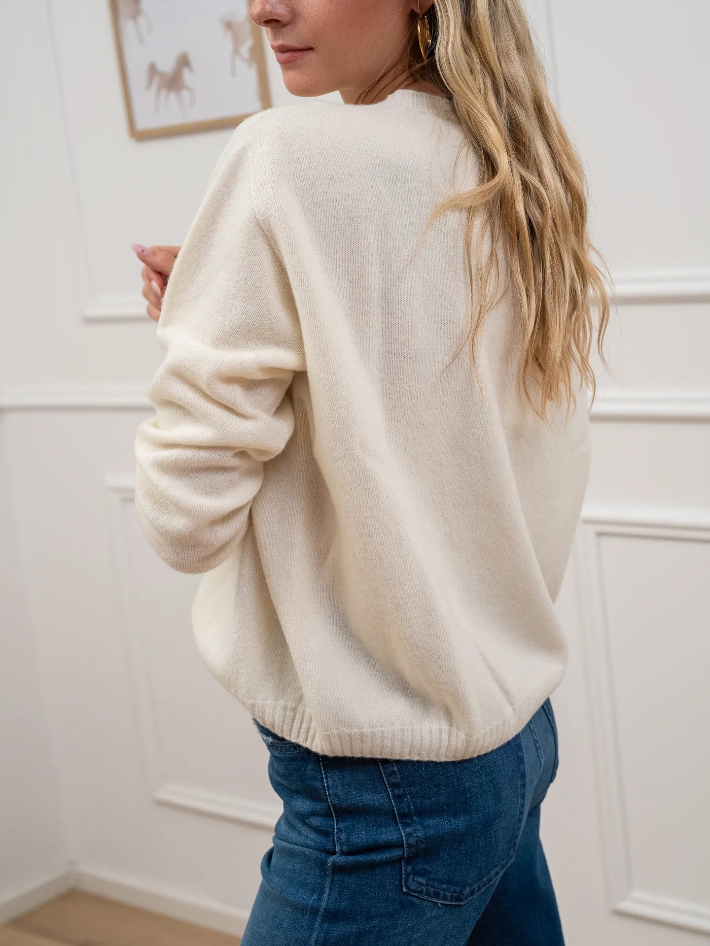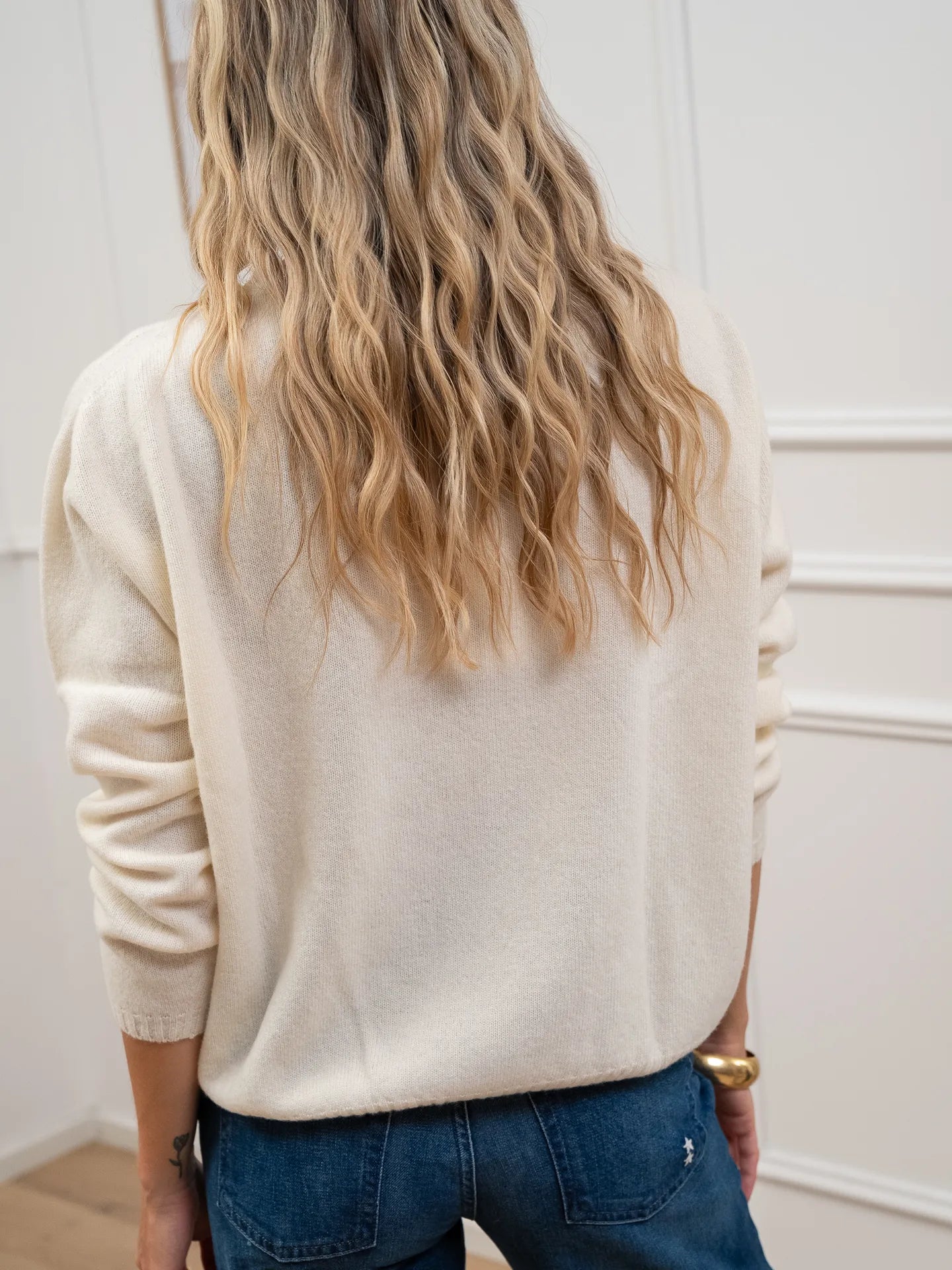 Cardigan panna scollo coreana con bottoncini - Kontatto