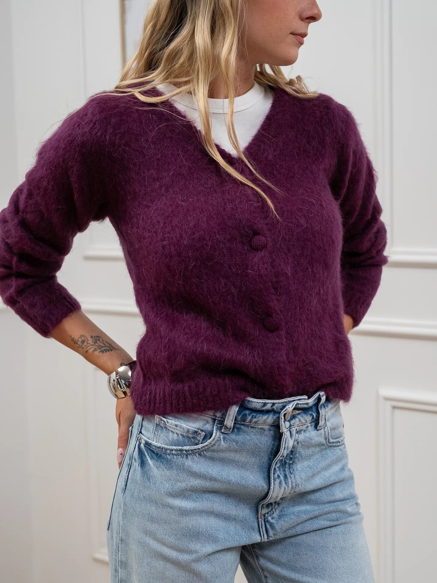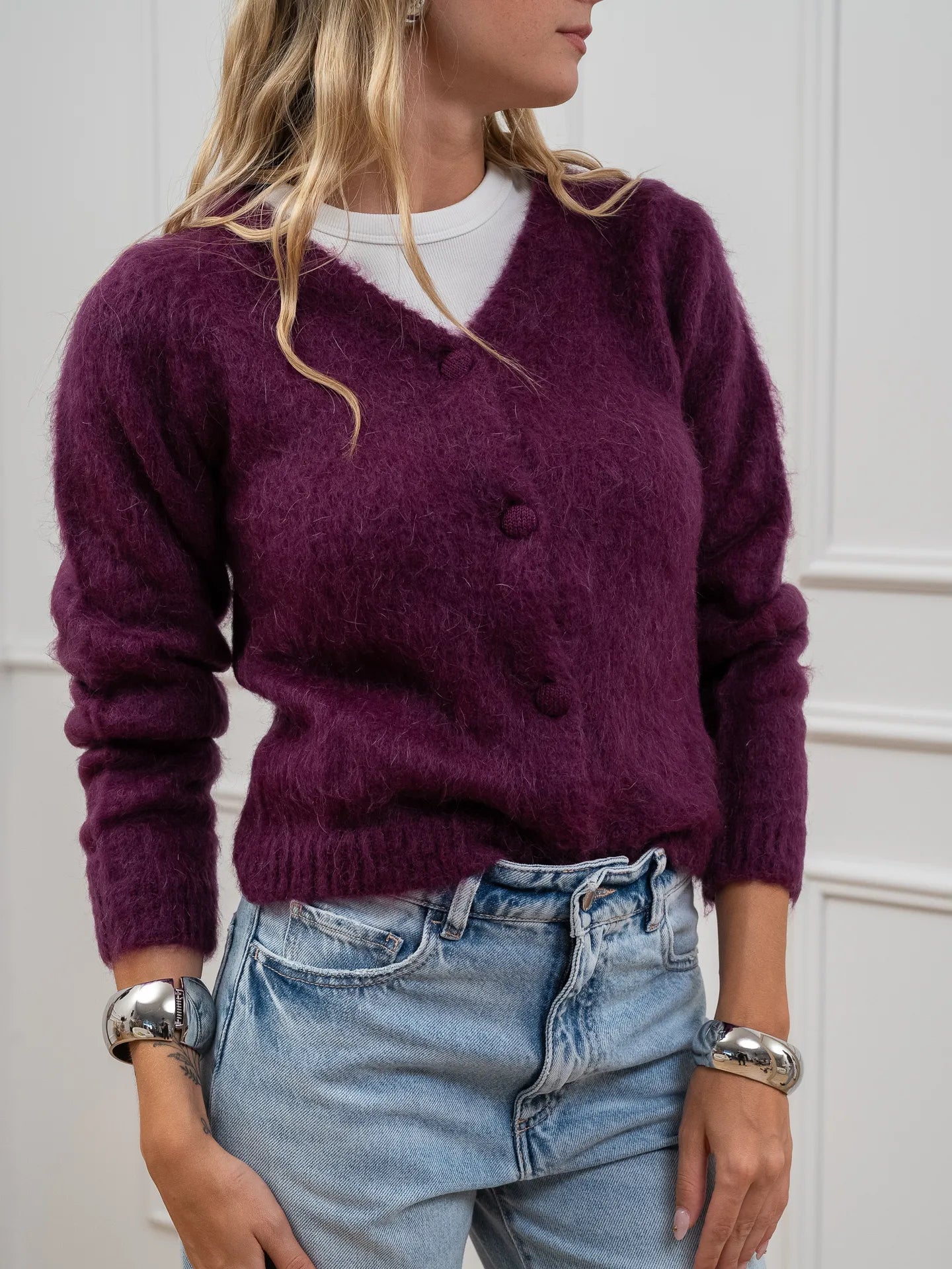 Cardigan porpora con scollo a v e bottoni - Kontatto