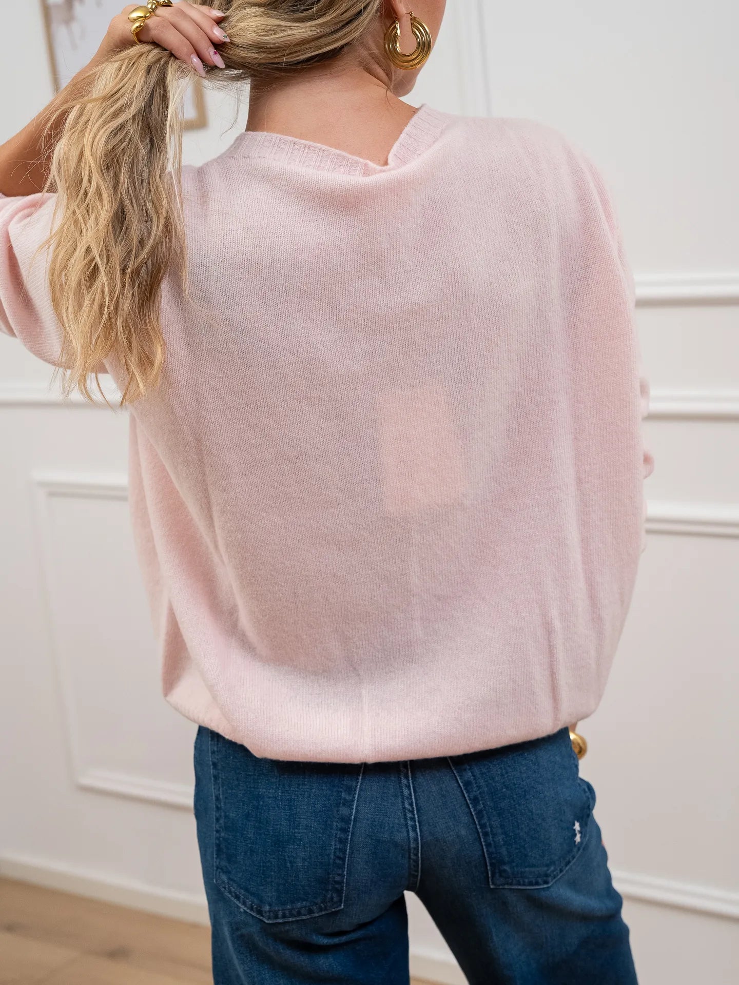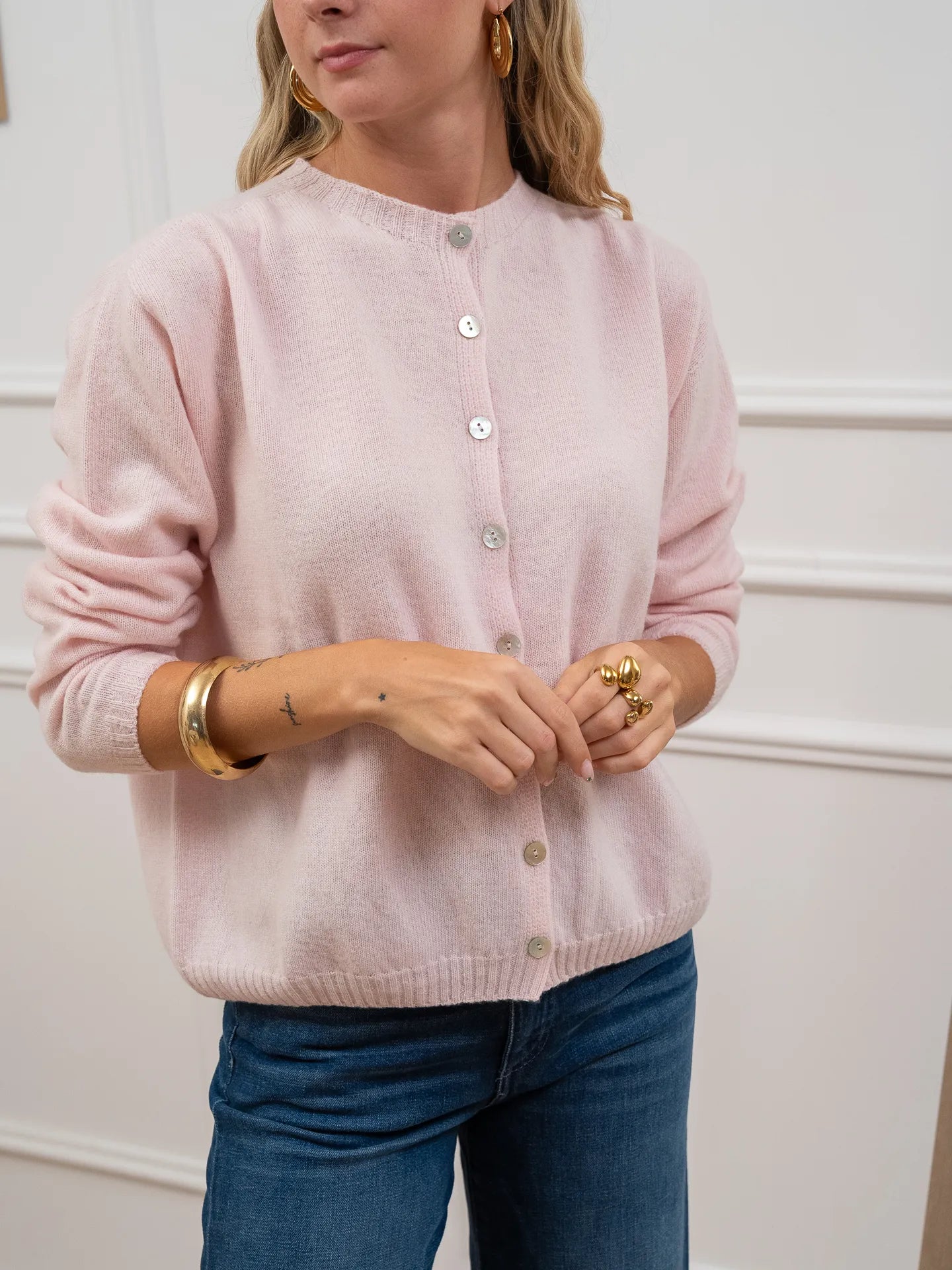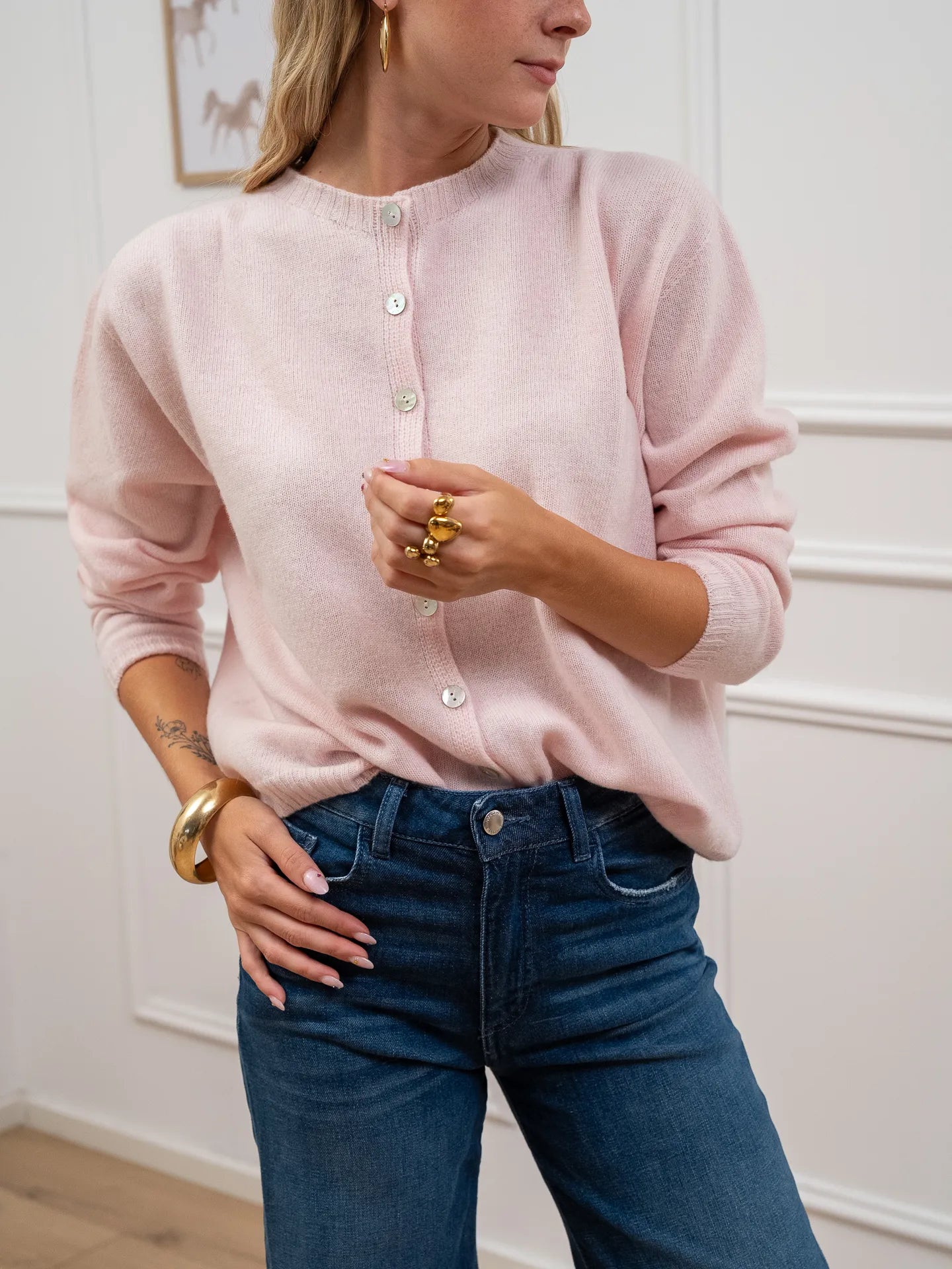 Cardigan rosa scollo coreana con bottoncini - Kontatto