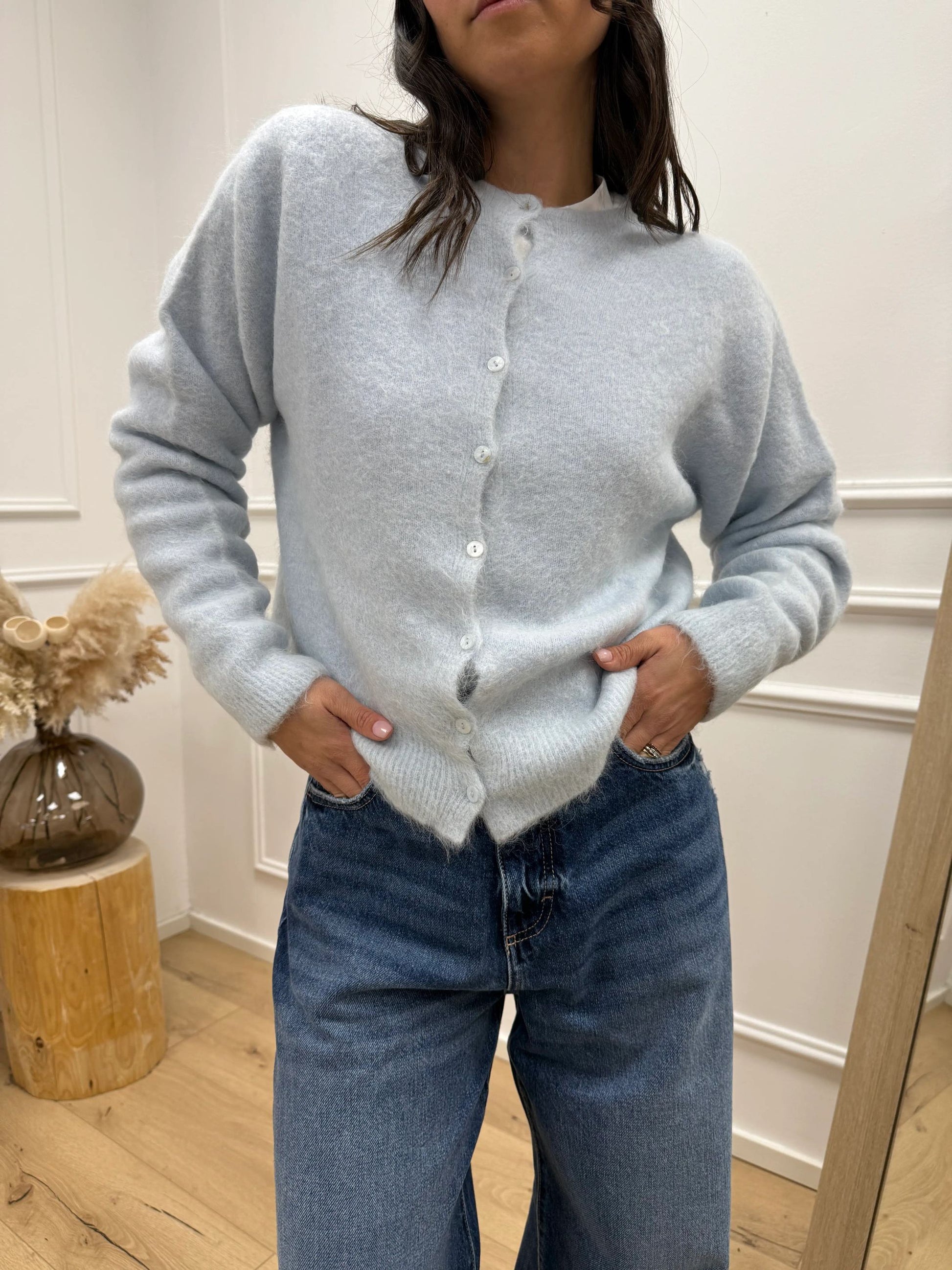 Cardigan soffice cielo in alpaca - Kontatto