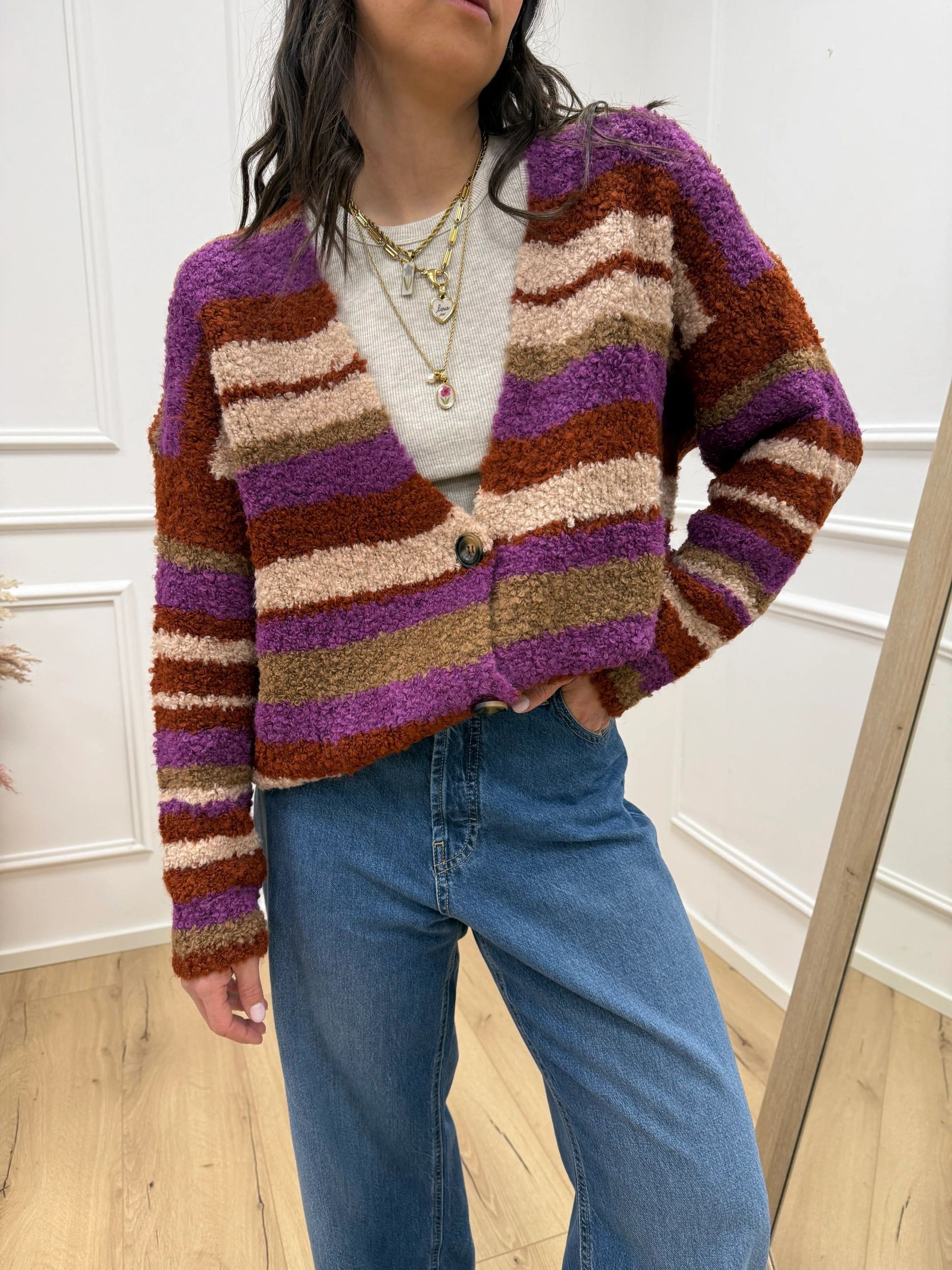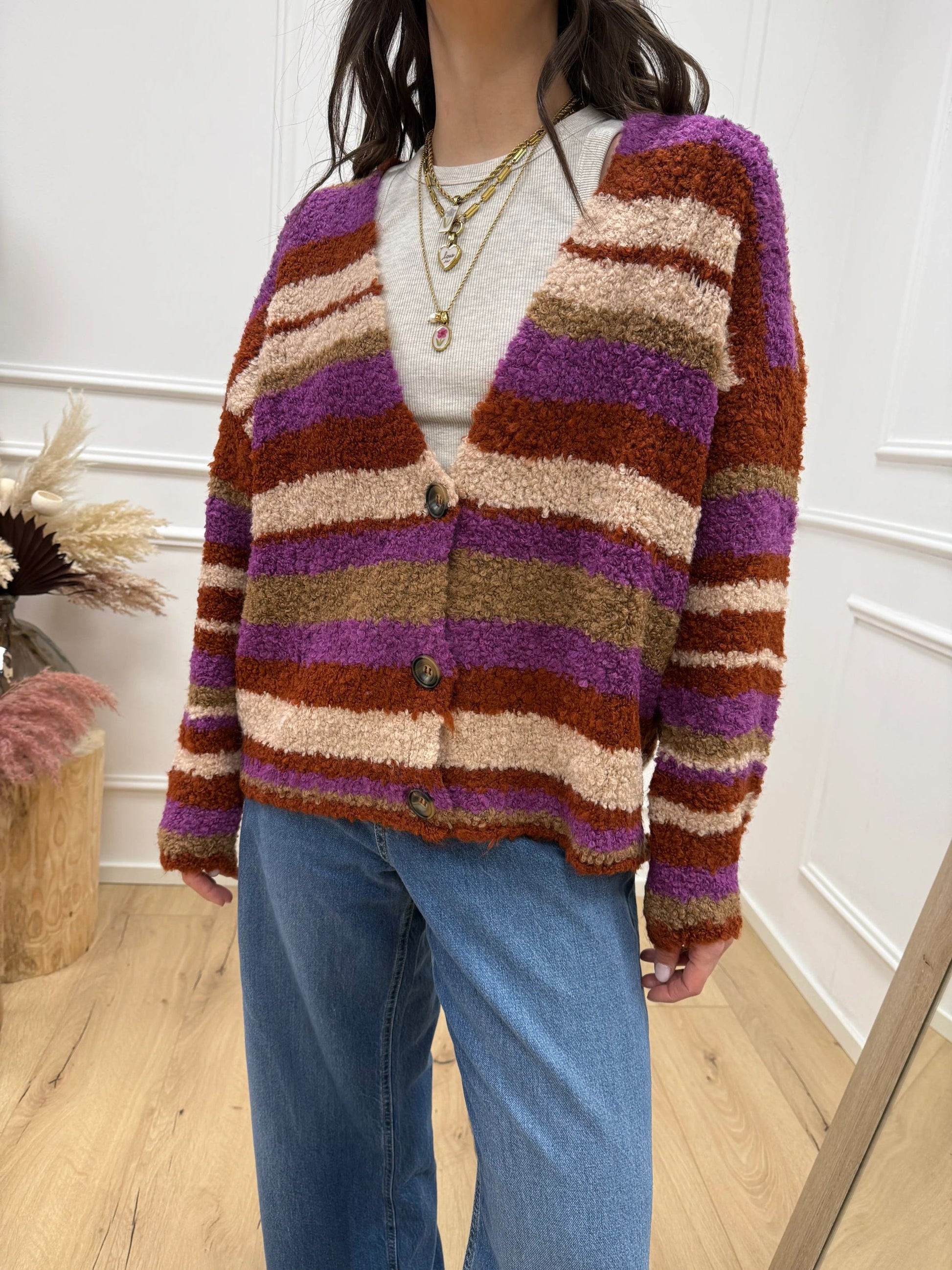 Cardigan tre bottoni rigato ruggine - HaveOne