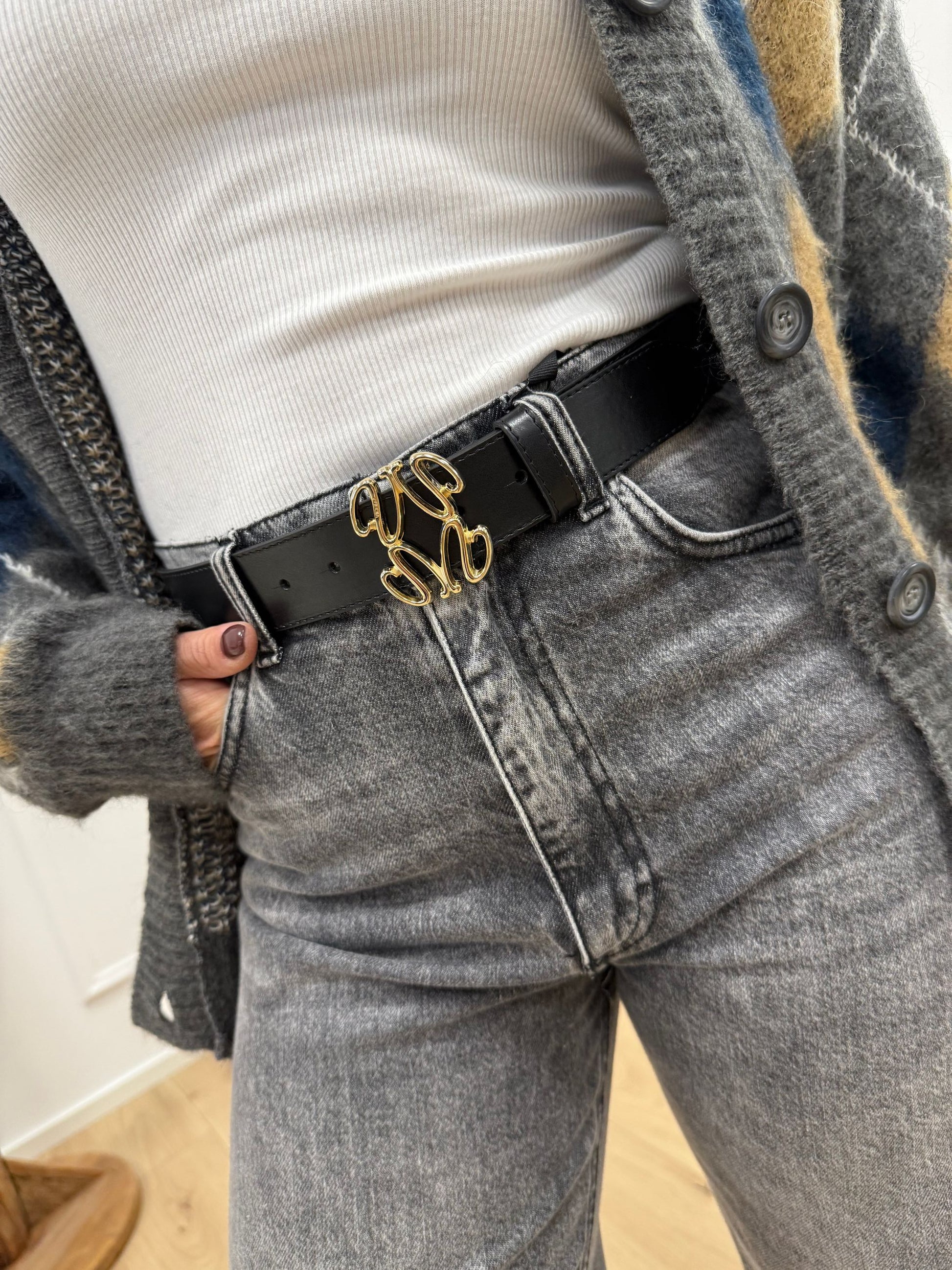 Cintura color nero Vicolo. Modello con fibbia logo forma quadrata oro regolabile.