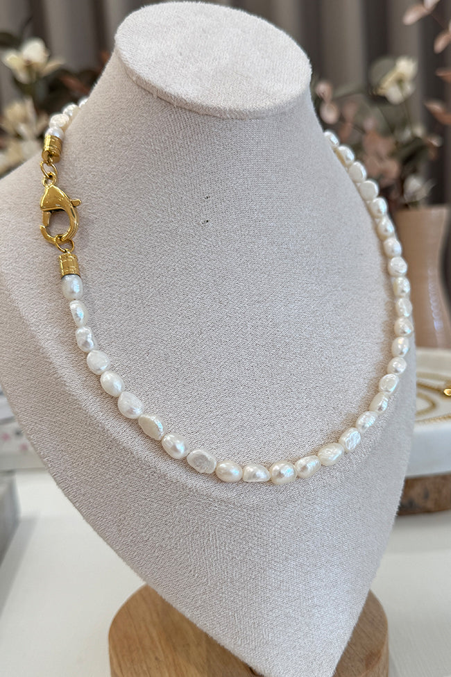 Materiali: Realizzato con perle irregolari di fiume e acciaio inossidabile bagnato in oro 18k.