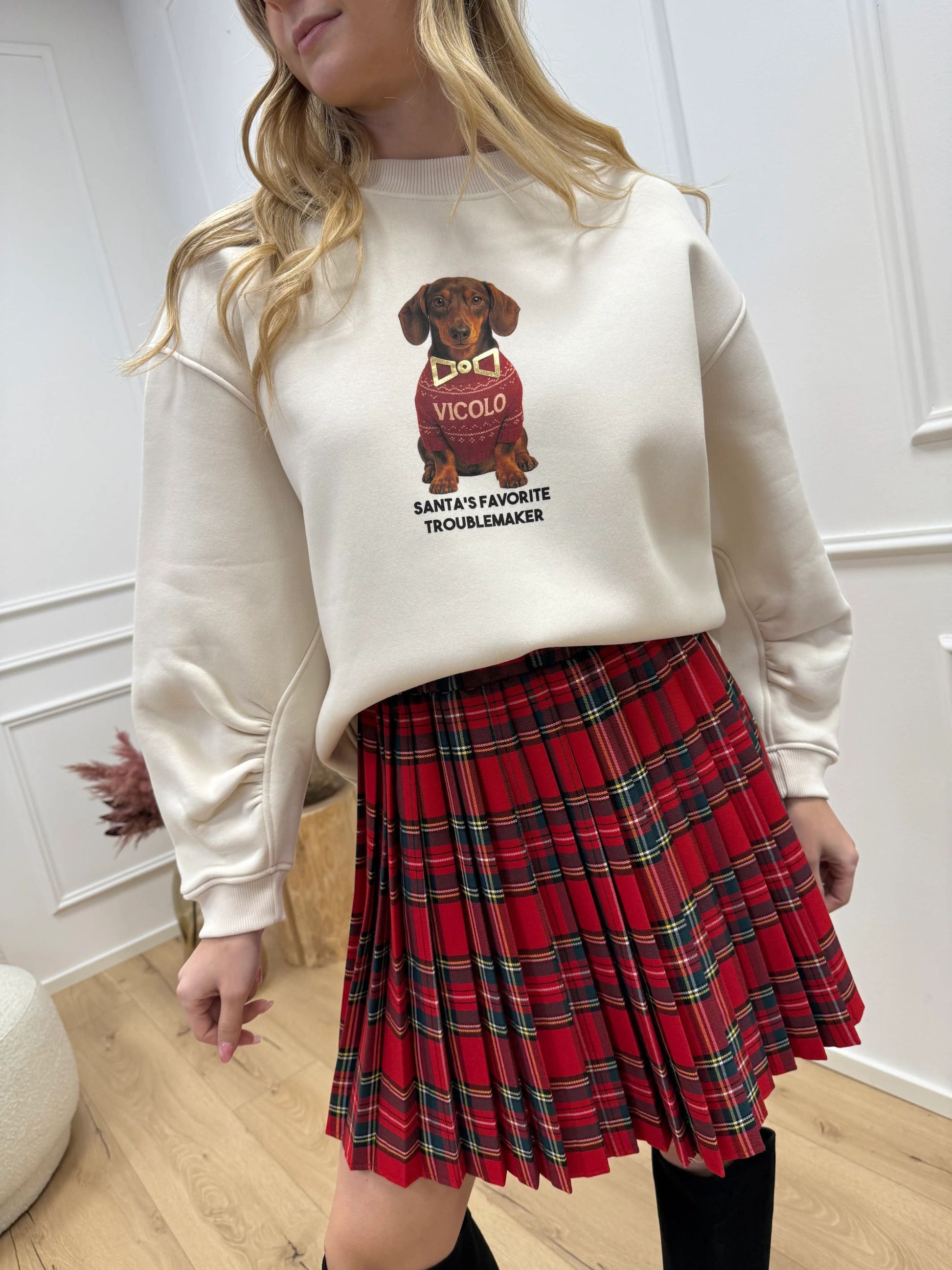 Felpa color burro felpata Vicolo. Modello basic fit over girocollo a manica lunga. Leggermente più lunga sul retro e con arriccio sul retro del gomito. Finiture a costine. Dettaglio di "Santa's Favorite".