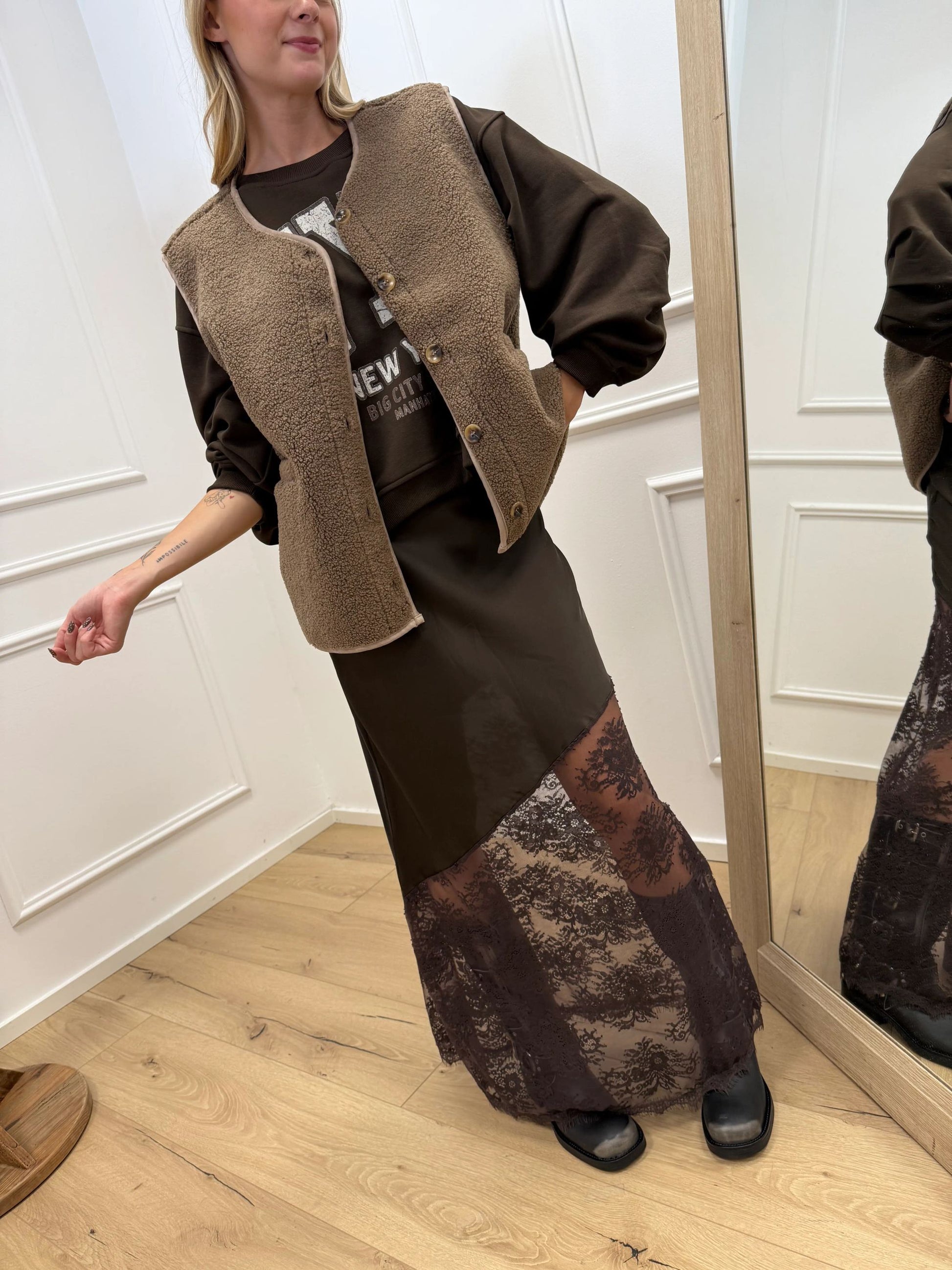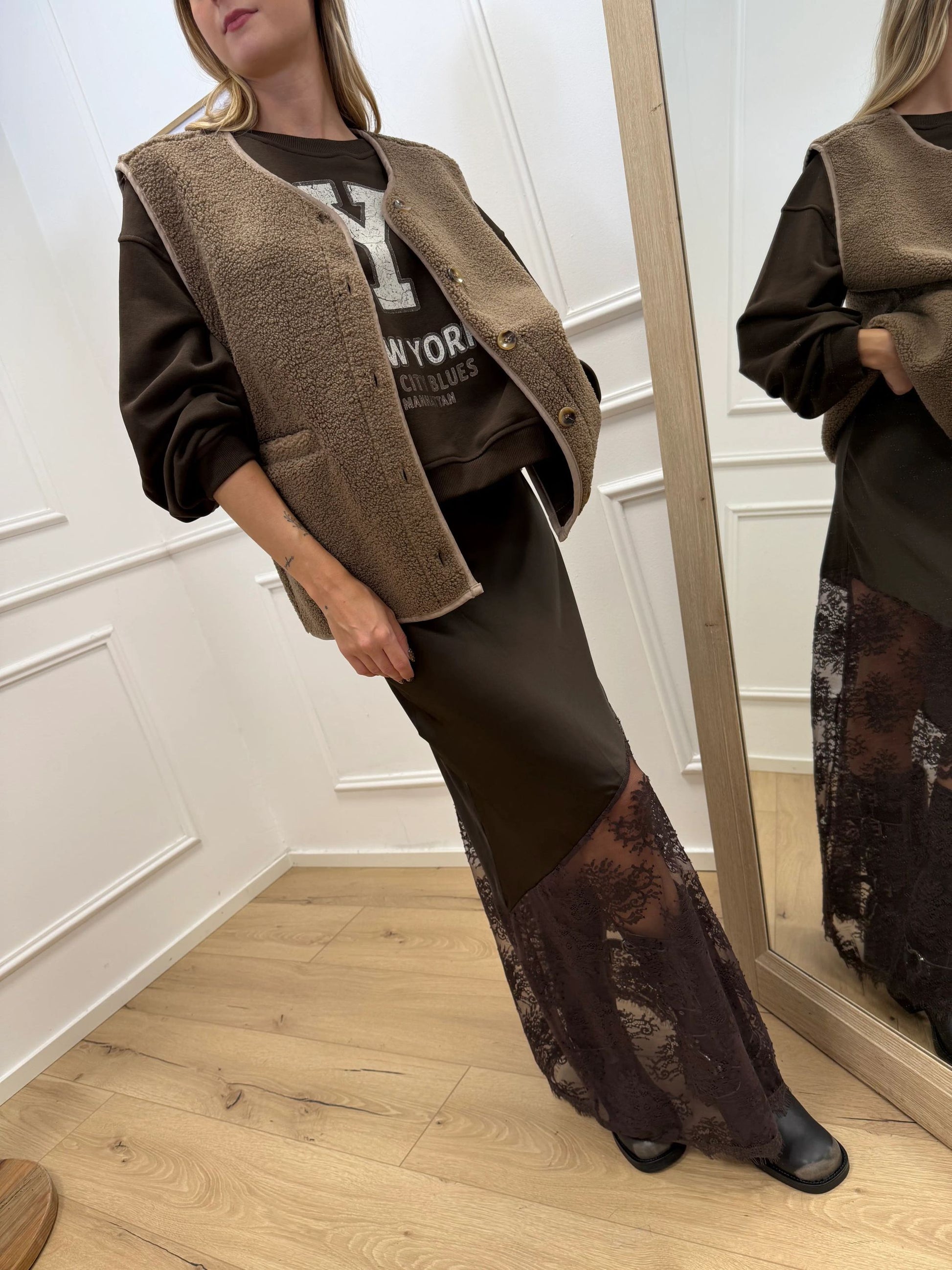 La modella è alta 165 cm e indossa tg u.