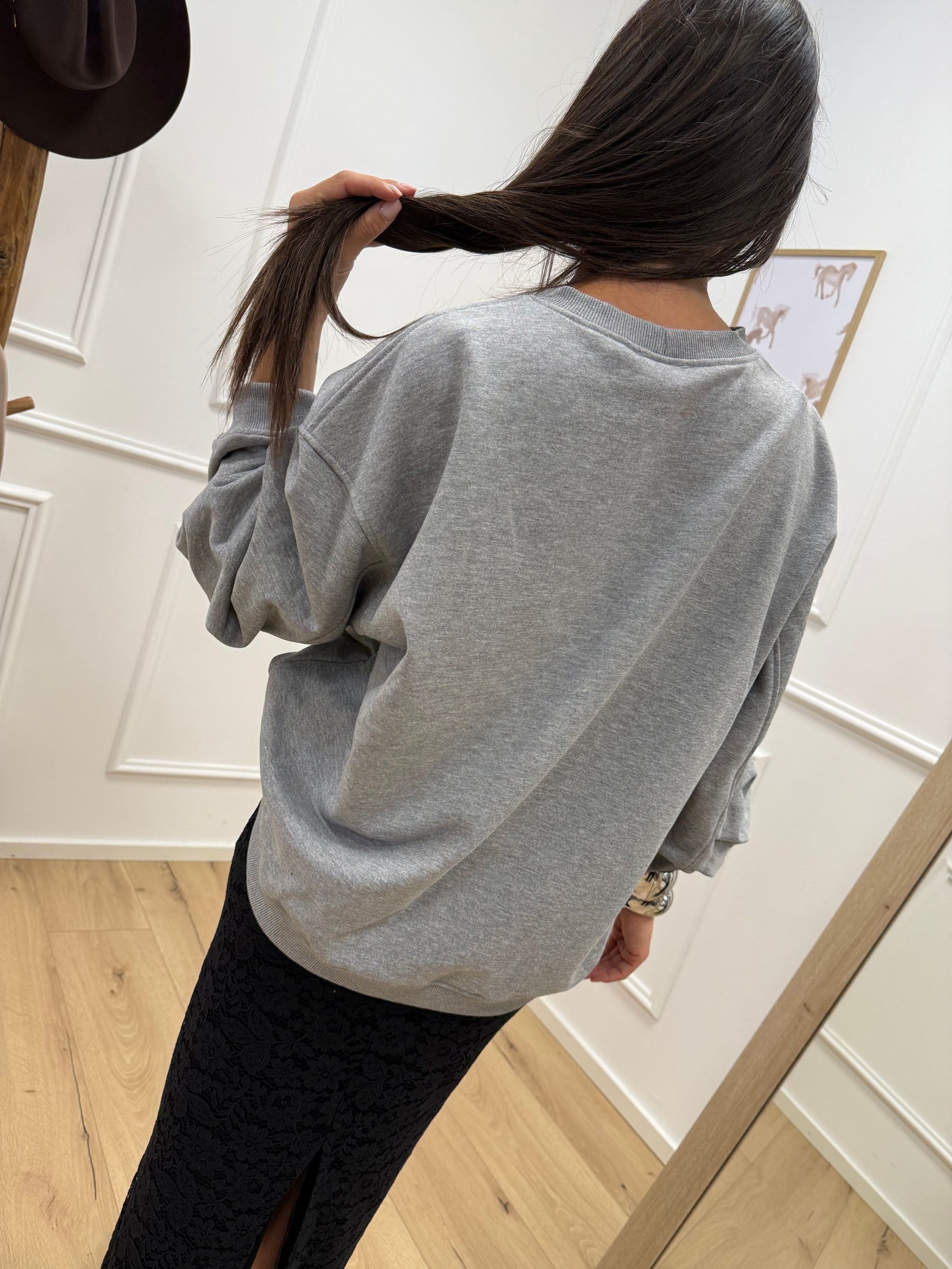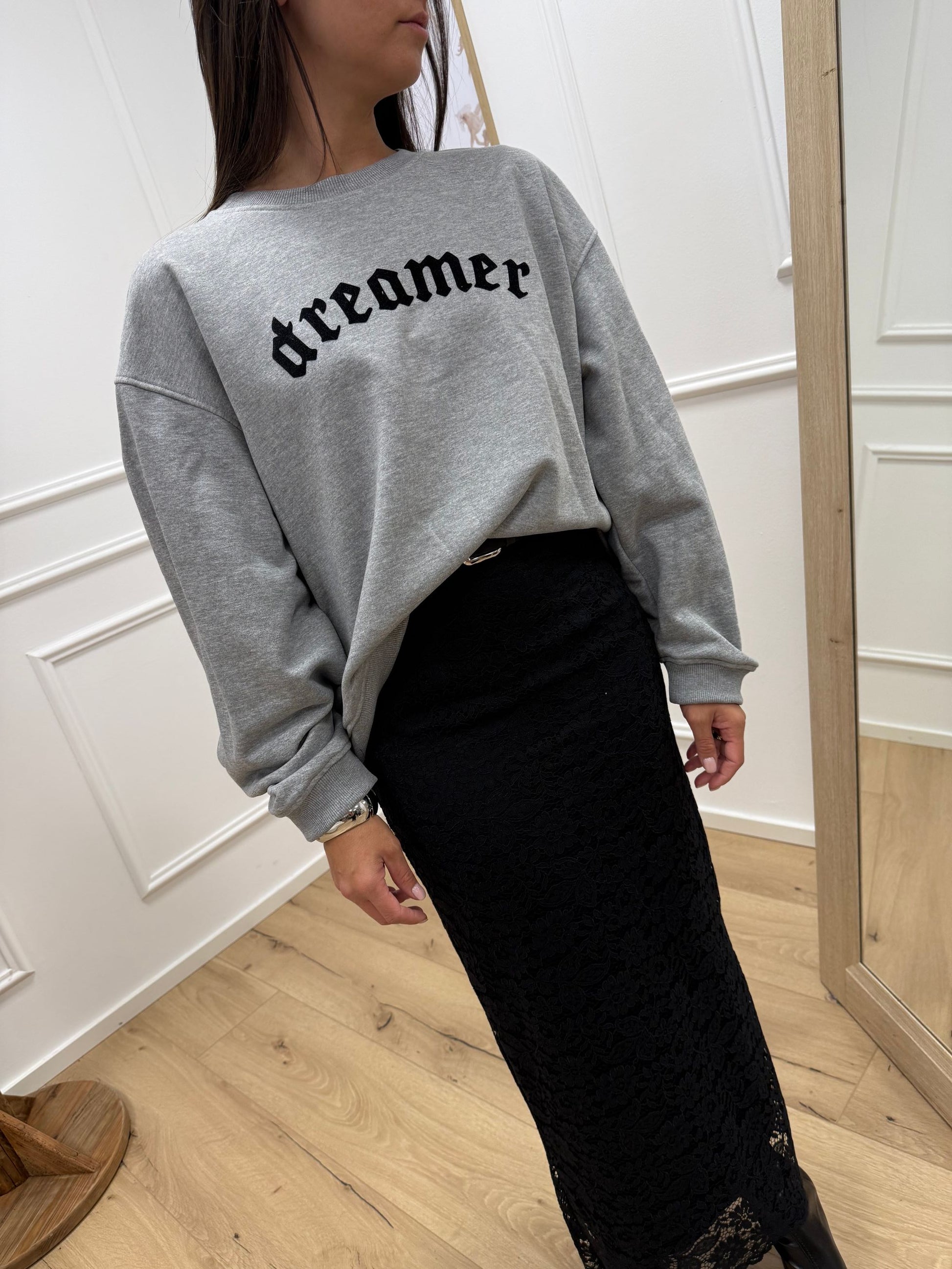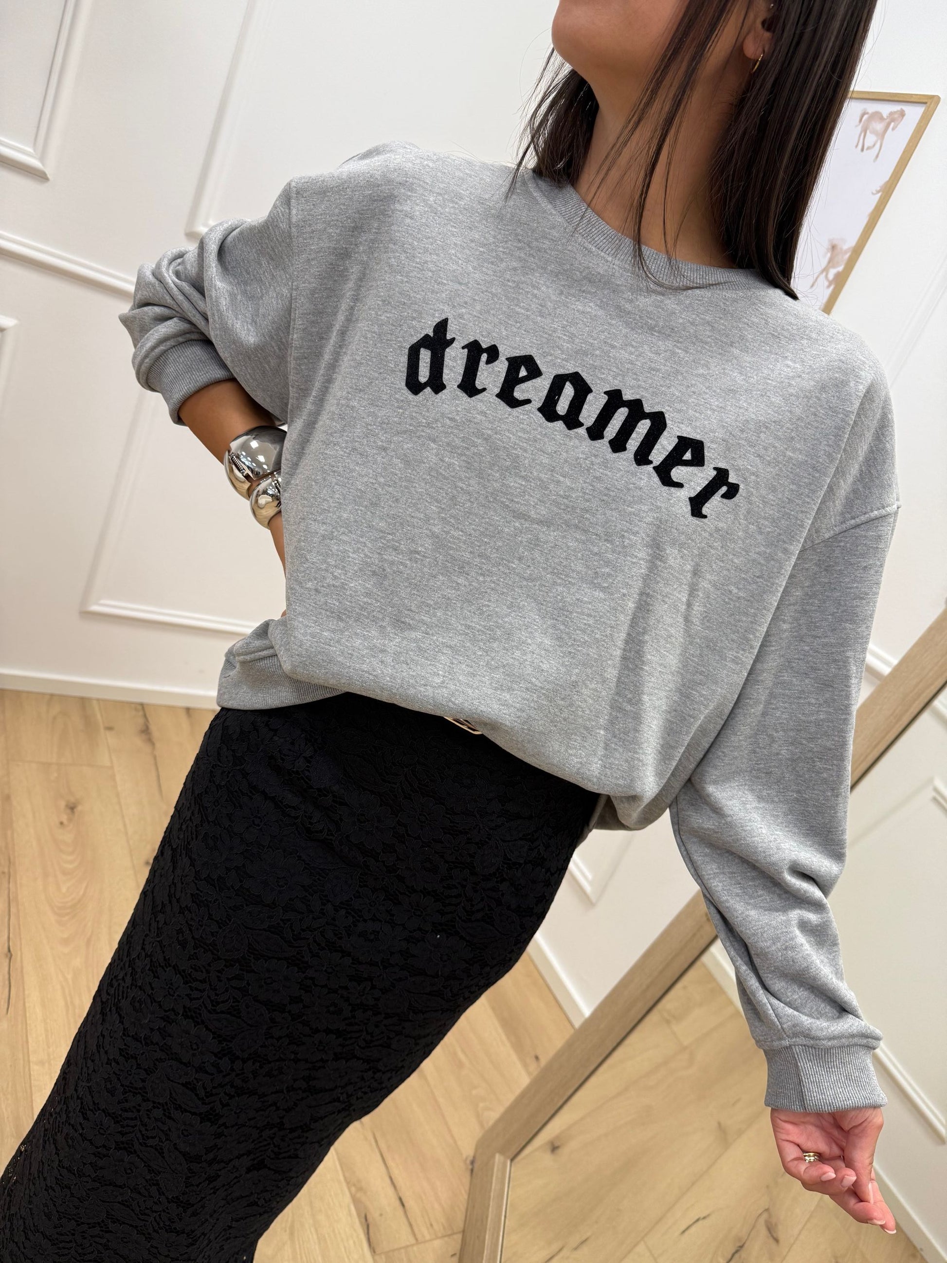 Felpa color grigio chiaro Vicolo. Modello garzato fit oversize, manica lunga con arriccio sul retro. Dettaglio di stampa Dreamer a contrasto. Finiture a costine.