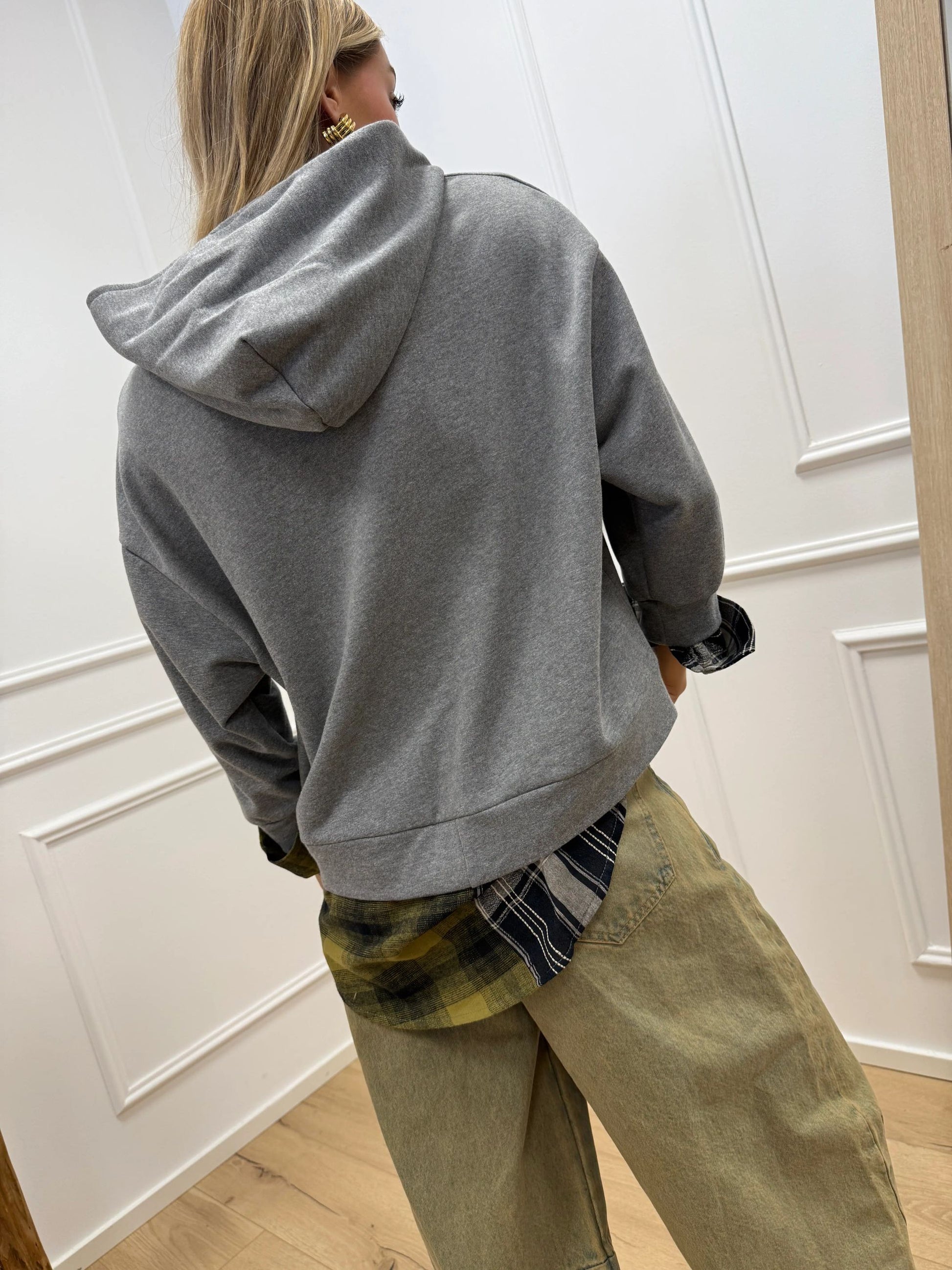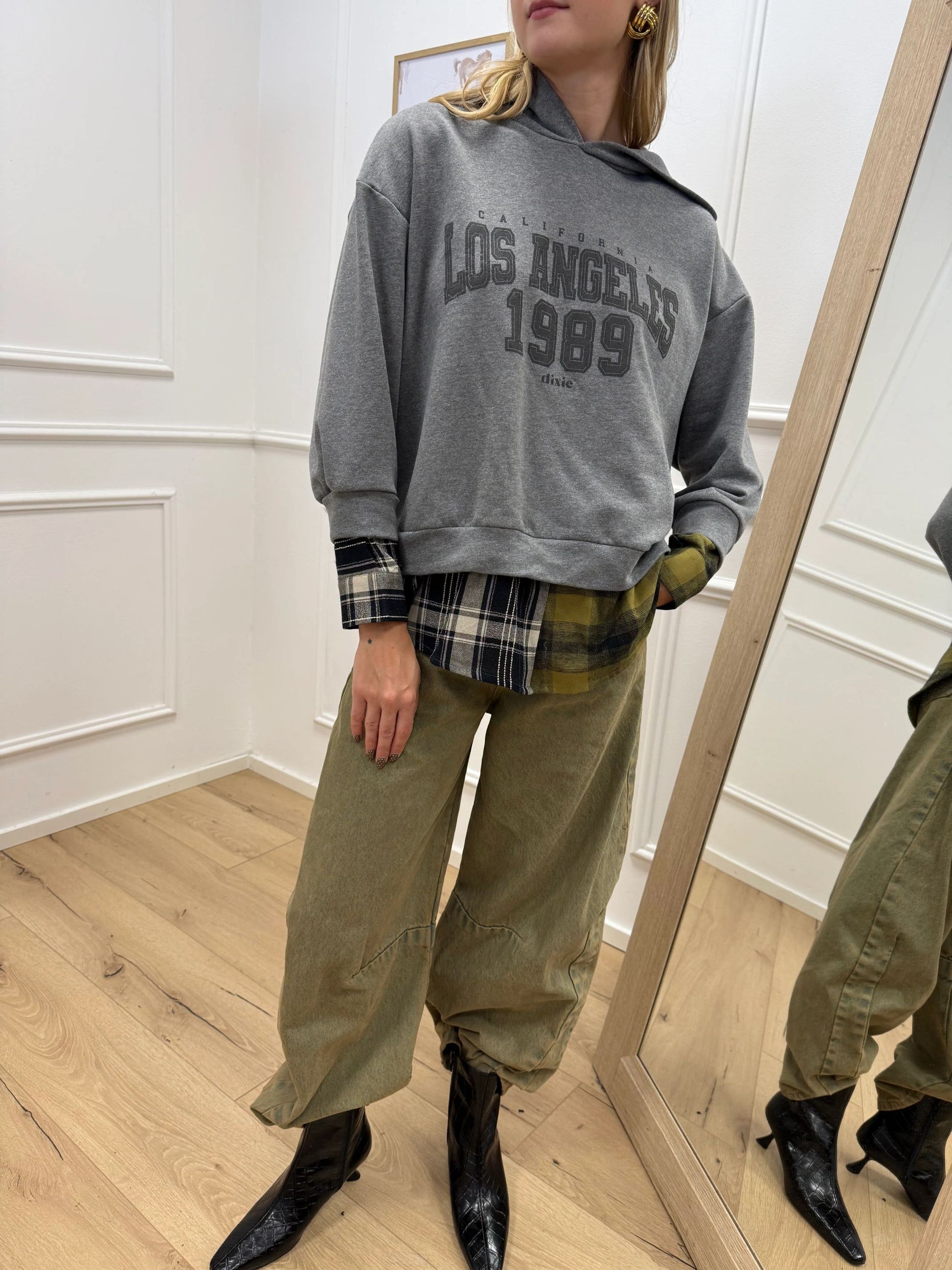Felpa Los Angeles grigia fondo camicia check - Dixie